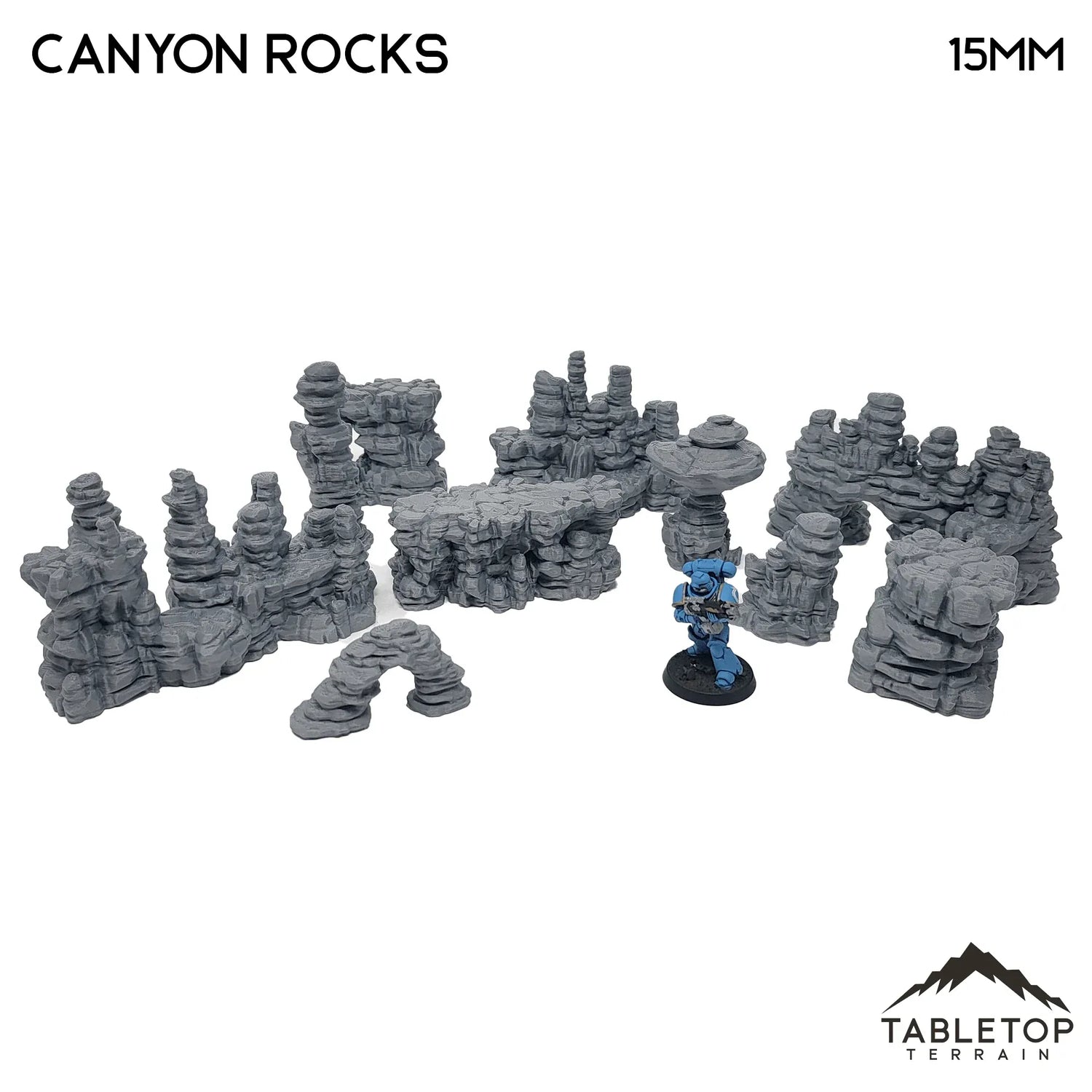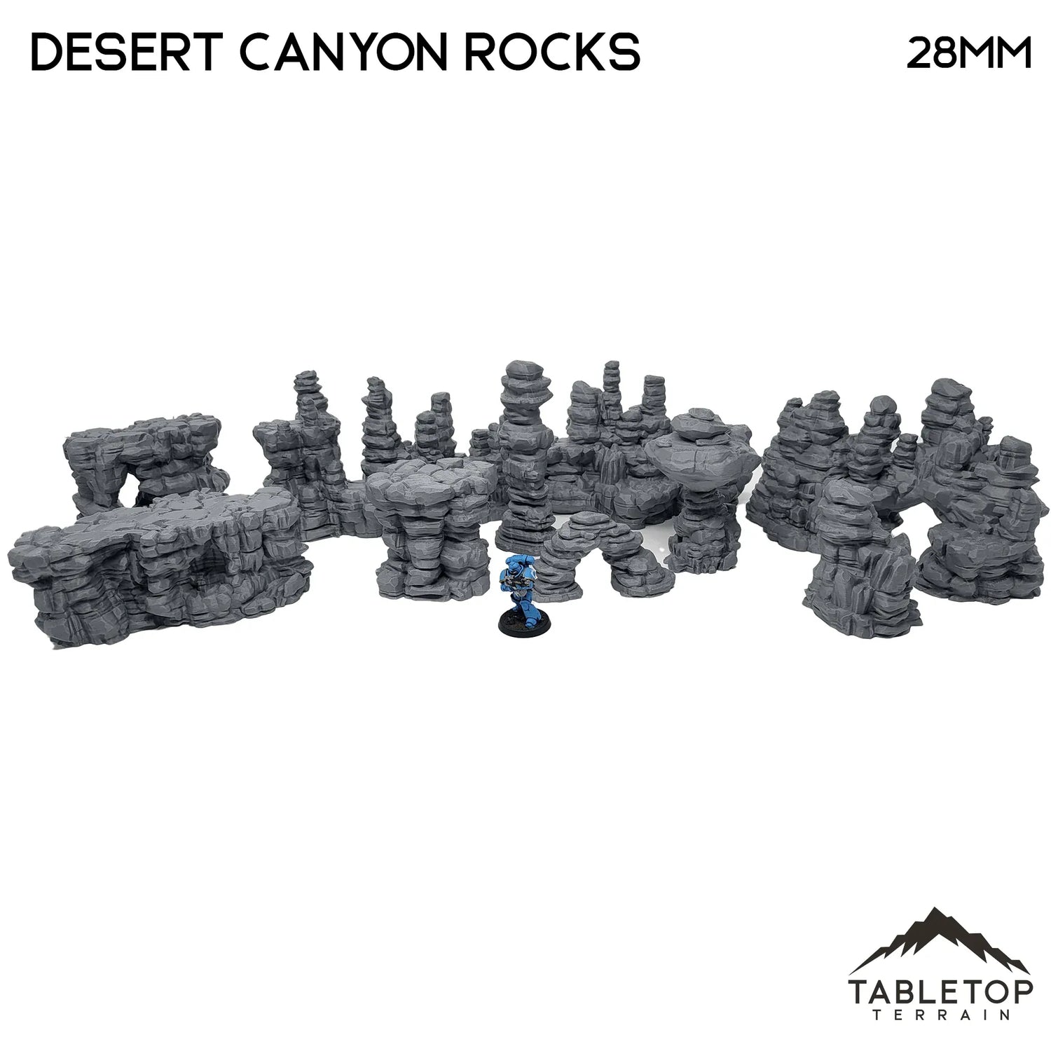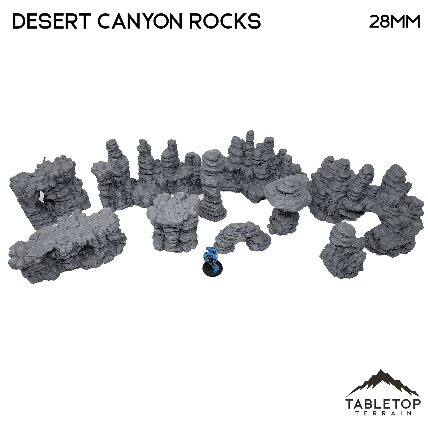The Desert Canyon Rocks is a highly versatile set of rocks. They are stackable and adaptable to many different game-types. They would fit in on a desert sci-fi or fantasy table.