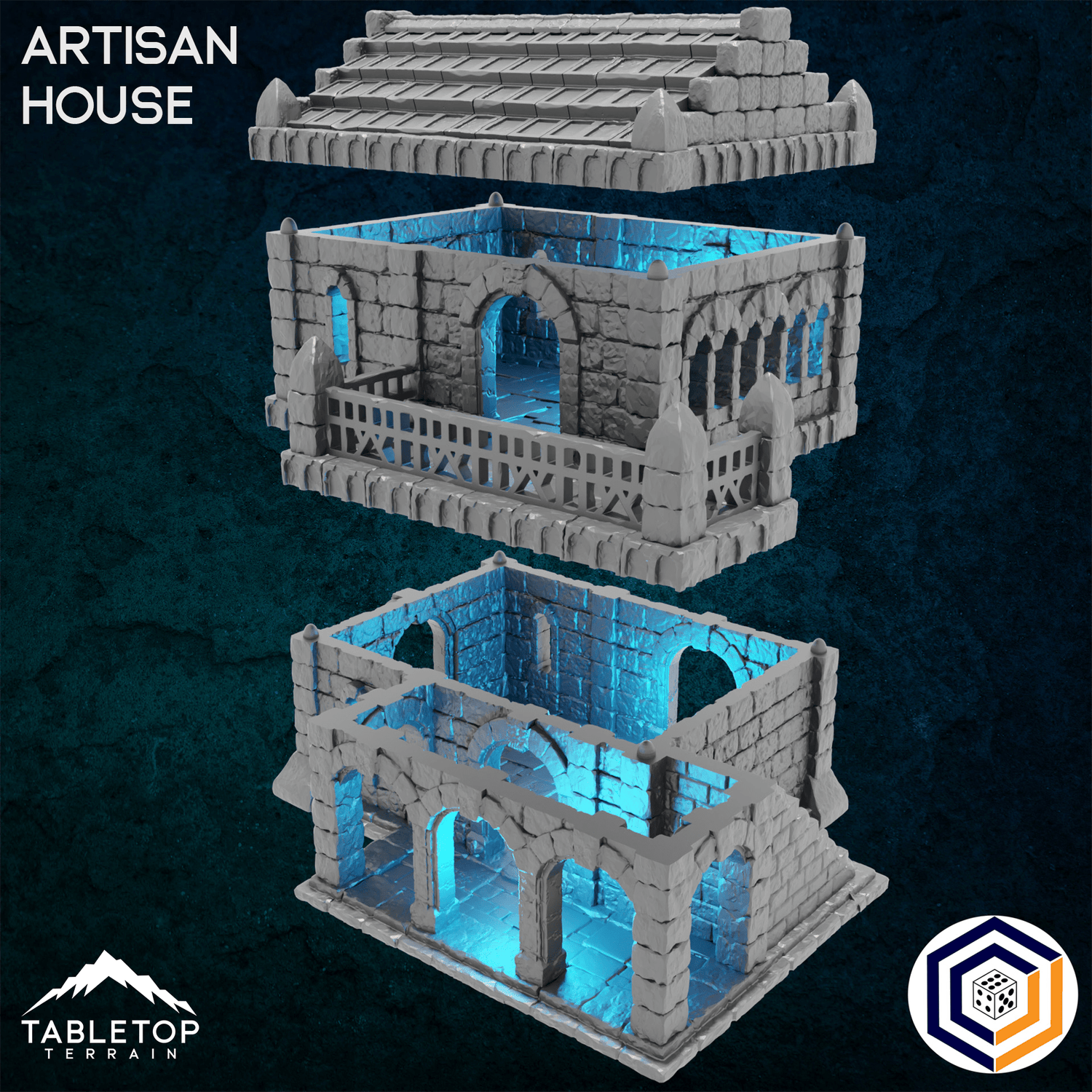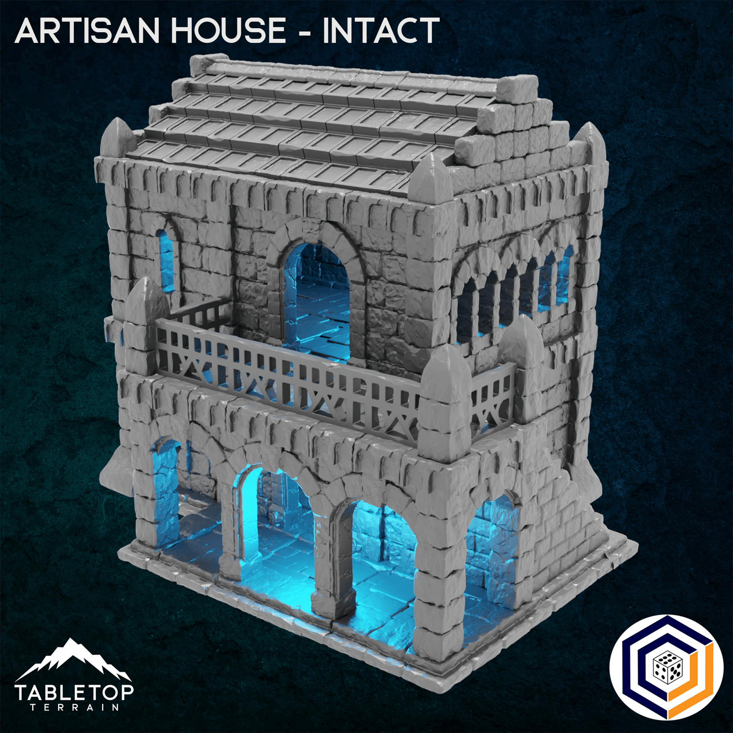 The Artisan House is a 2-story building for a merchant or craftsman. The craftsmen of Tor Ithilas are renowned throughout the land, and travelers come from across the entire continent for what they sell. As with all sets from the Tor Ithilas collection, this set comes in either a "Ruined" version or an "Intact" version to be used as the battle progresses. The interior is highly detailed, with removable levels for placing minis inside.