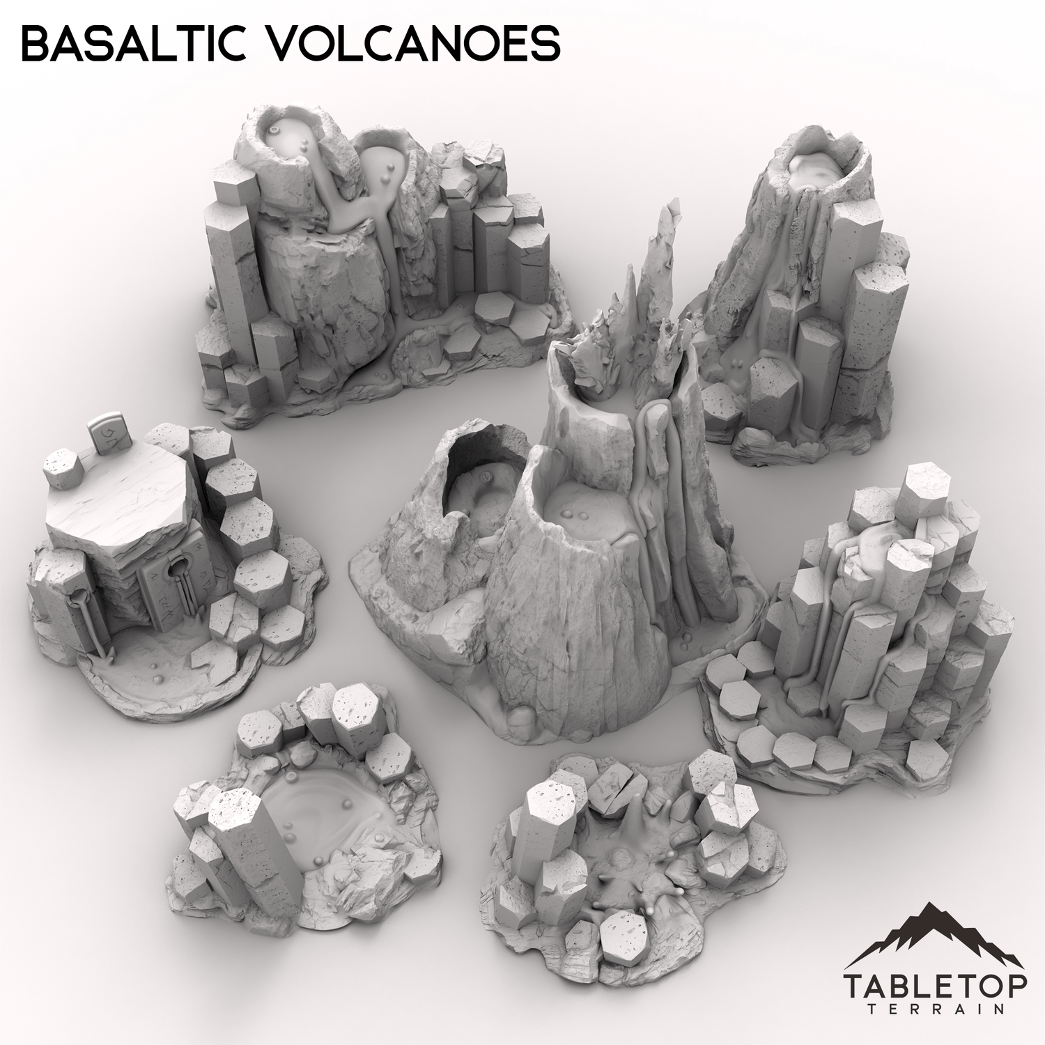 These basaltic volcanoes offer a dramatic landscape, ranging from towering basalt pillars to erupting volcanoes spewing molten lava. Their rugged, dark slopes and ancient lava flows create a treacherous environment, perfect for epic tabletop adventures. You can buy each piece individually or the whole set at a discount.