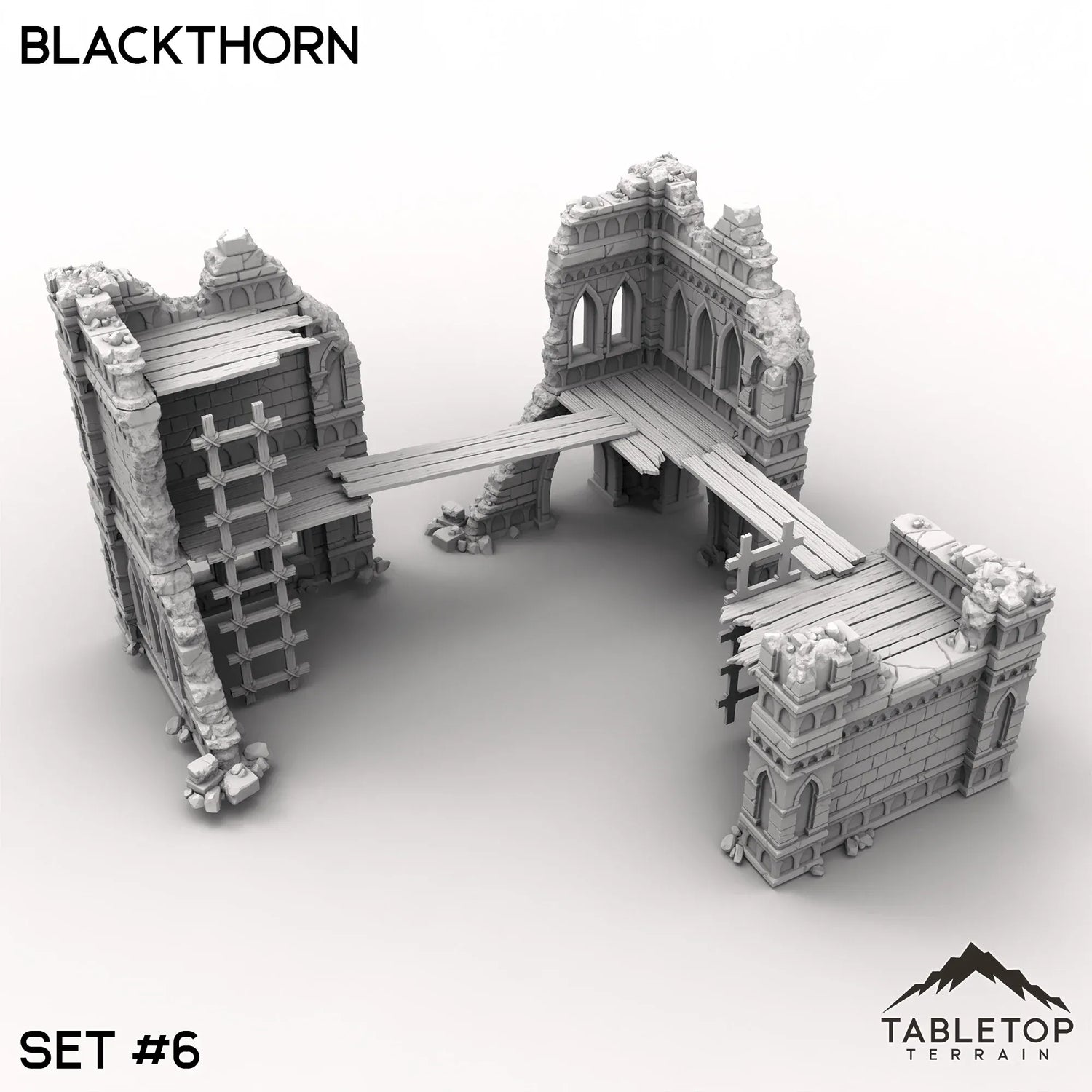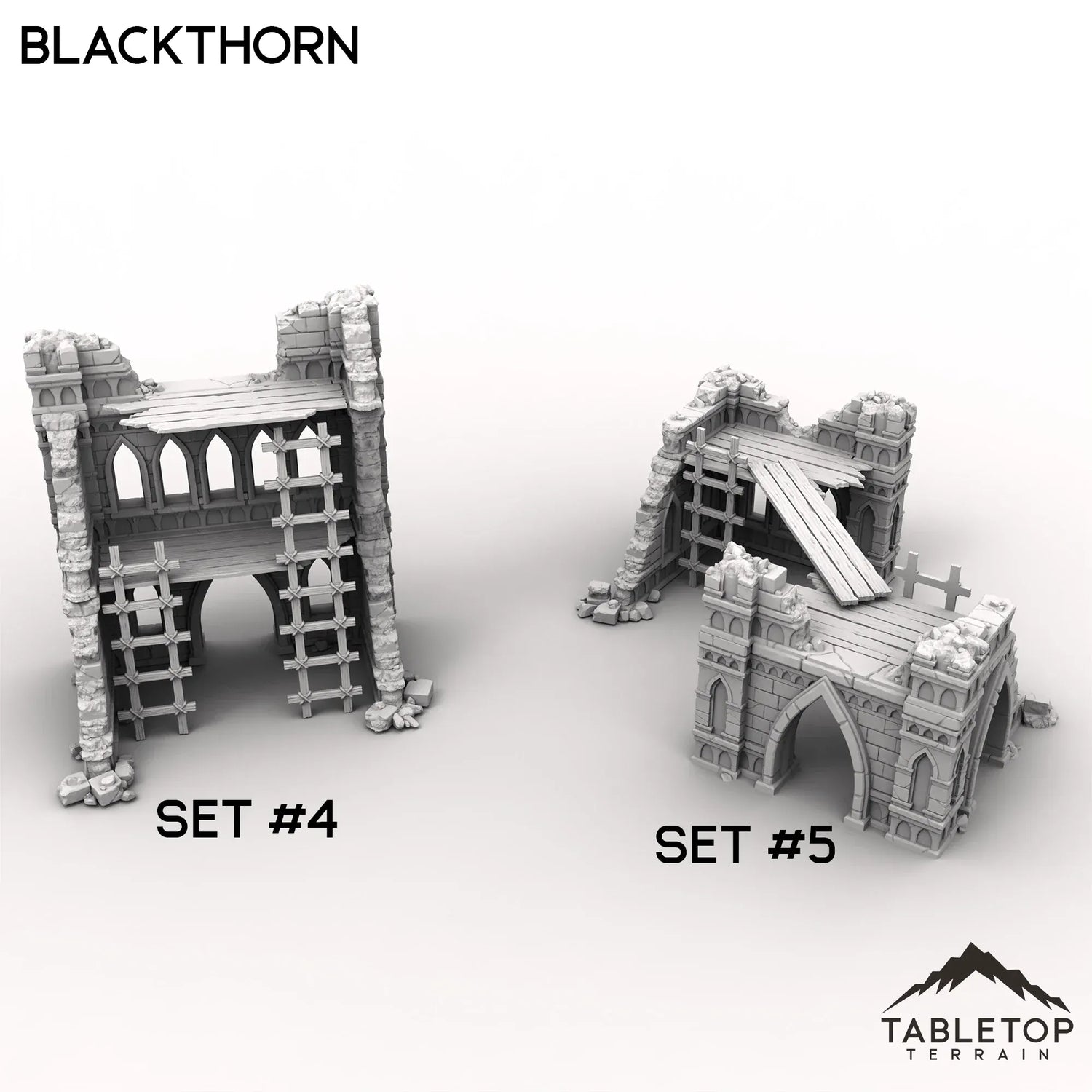 The Blackthorn collection is made up of crumbling gothic buildings feature arched windows and doorways. With much of the buildings having collapsed, jagged edges and scattered debris are all that remain. The once-majestic stone walls are weathered and cracked, giving an eerie sense of decay. The various shapes and sizes make for a wide variety of uses across different types of tabletop games, allowing for easy mix-and-match between different sessions. Get each set individually, or the whole package at a discount.