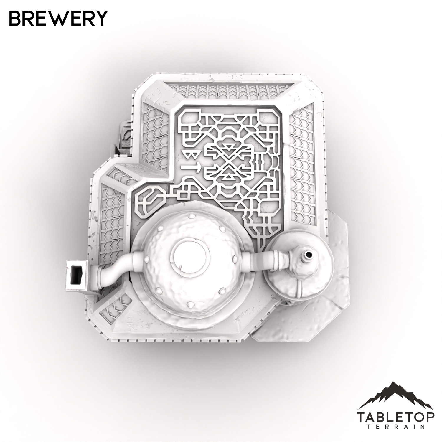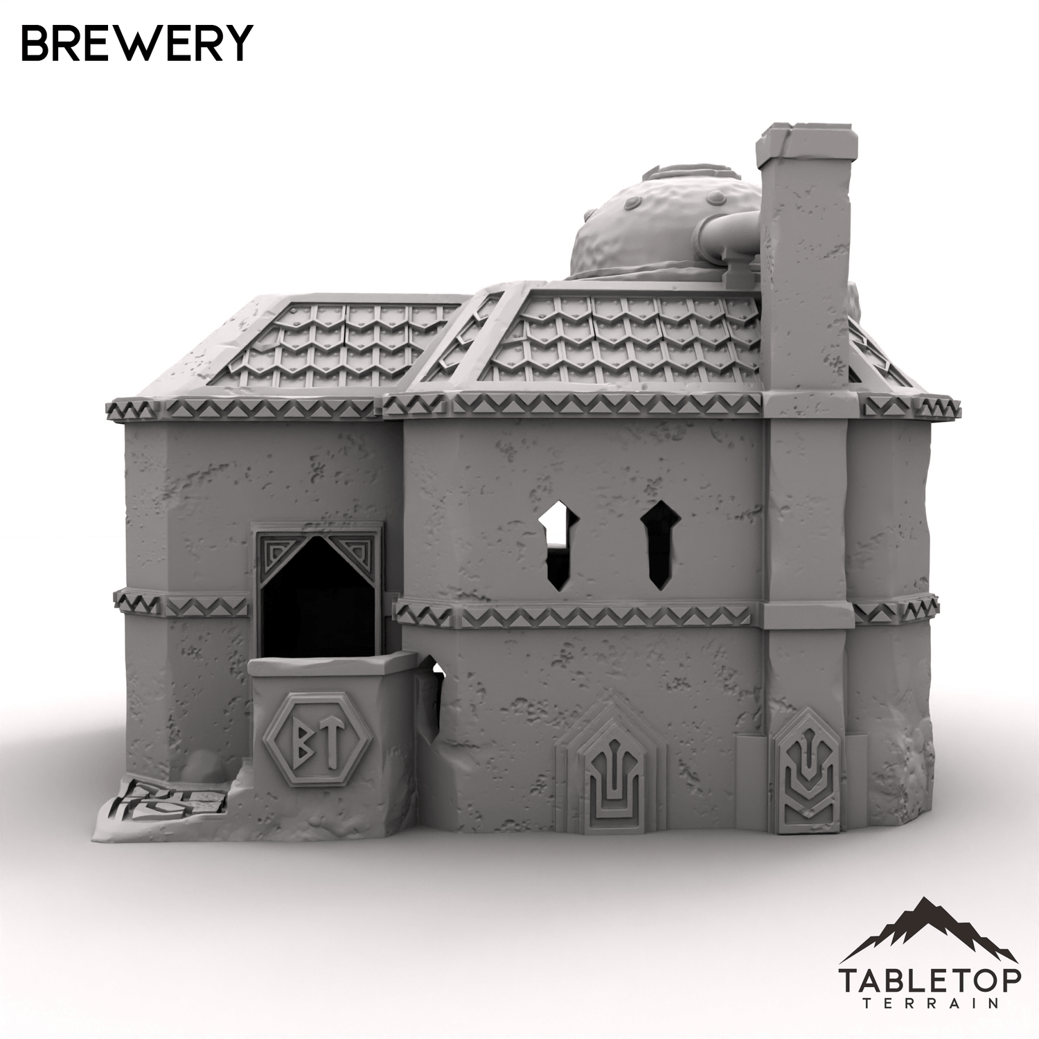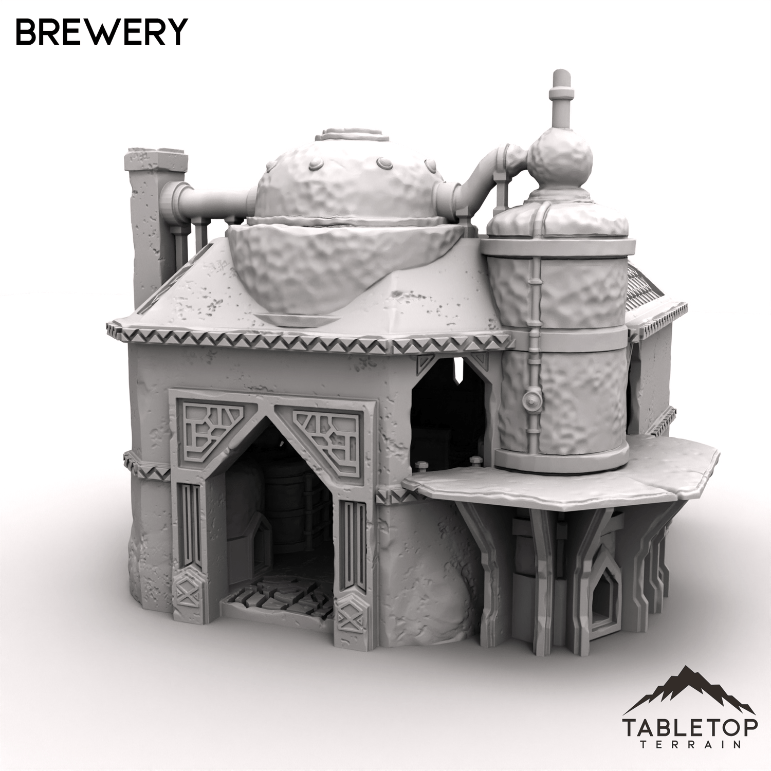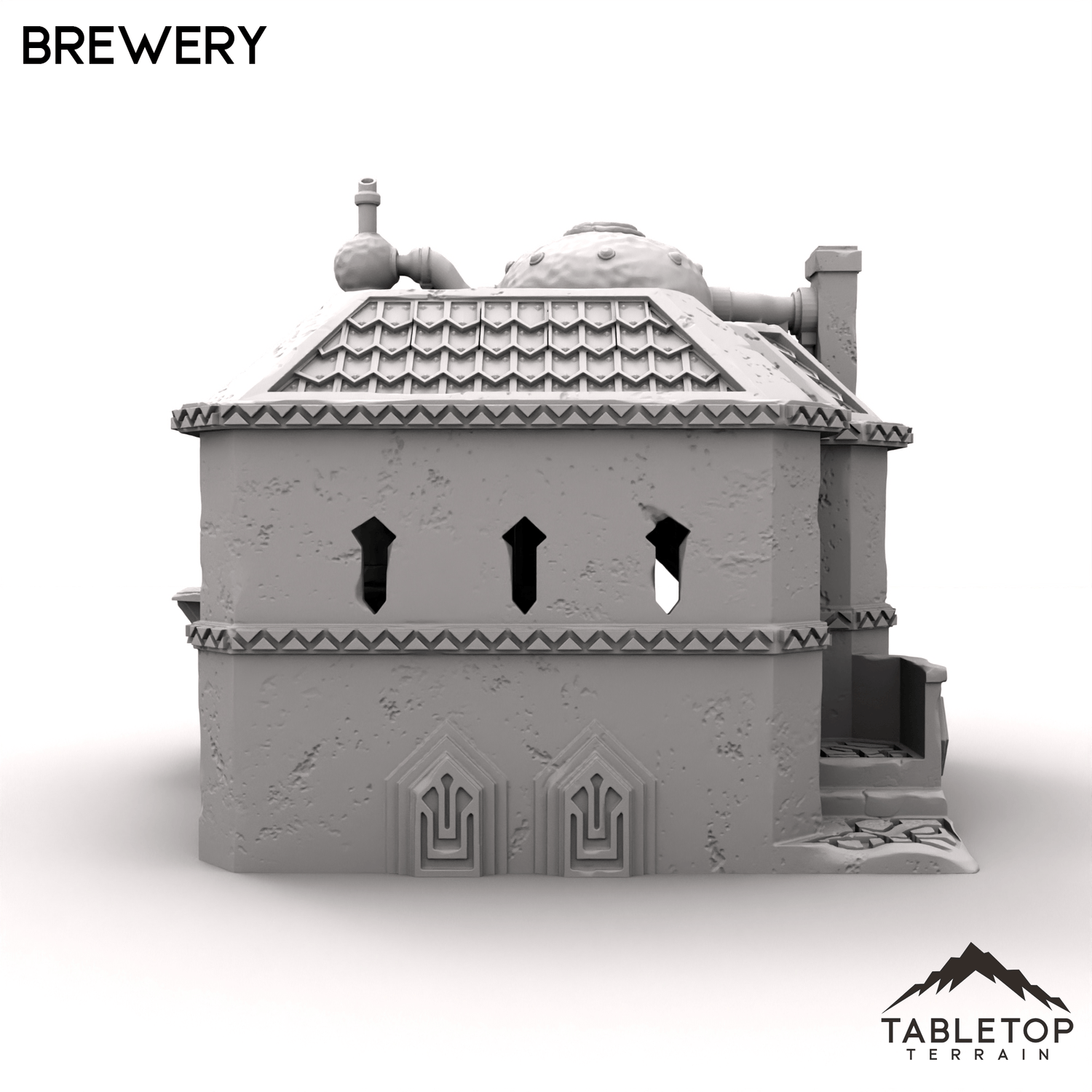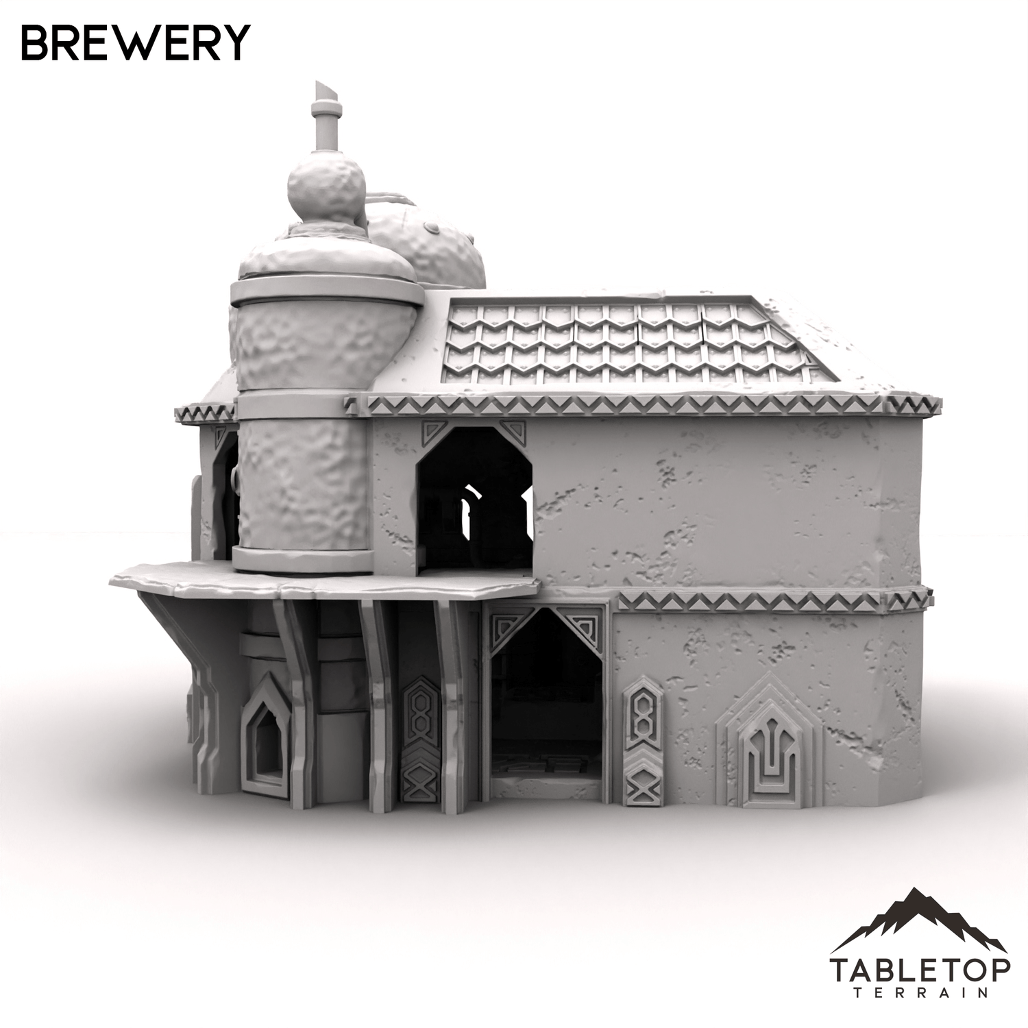 In 28mm scale, the brewery measures 193x196x172mm / 7.6x7.7x6.8 inches
