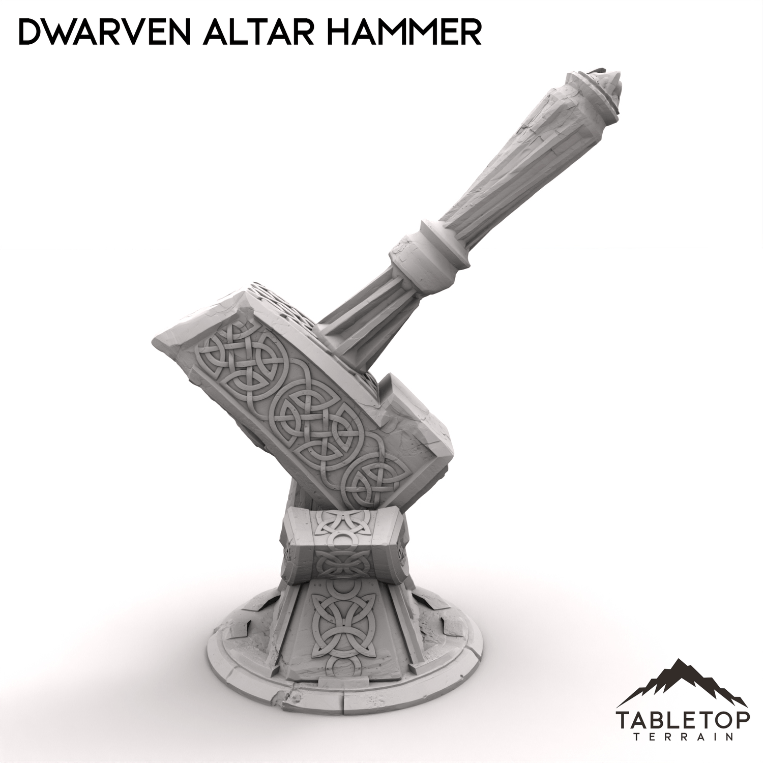 This hammer is a large-scale artifact, standing over the heads of most humanoids. It acts as an altar for the Dwarves, an important centerpiece to their shrine.