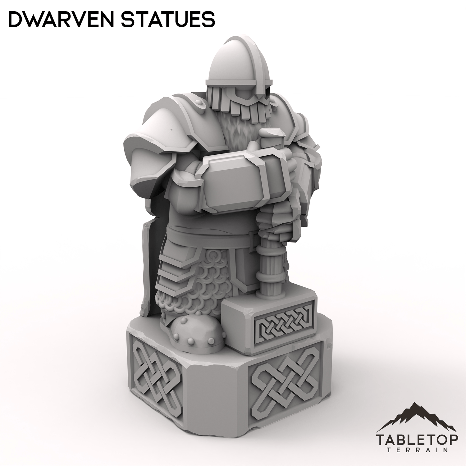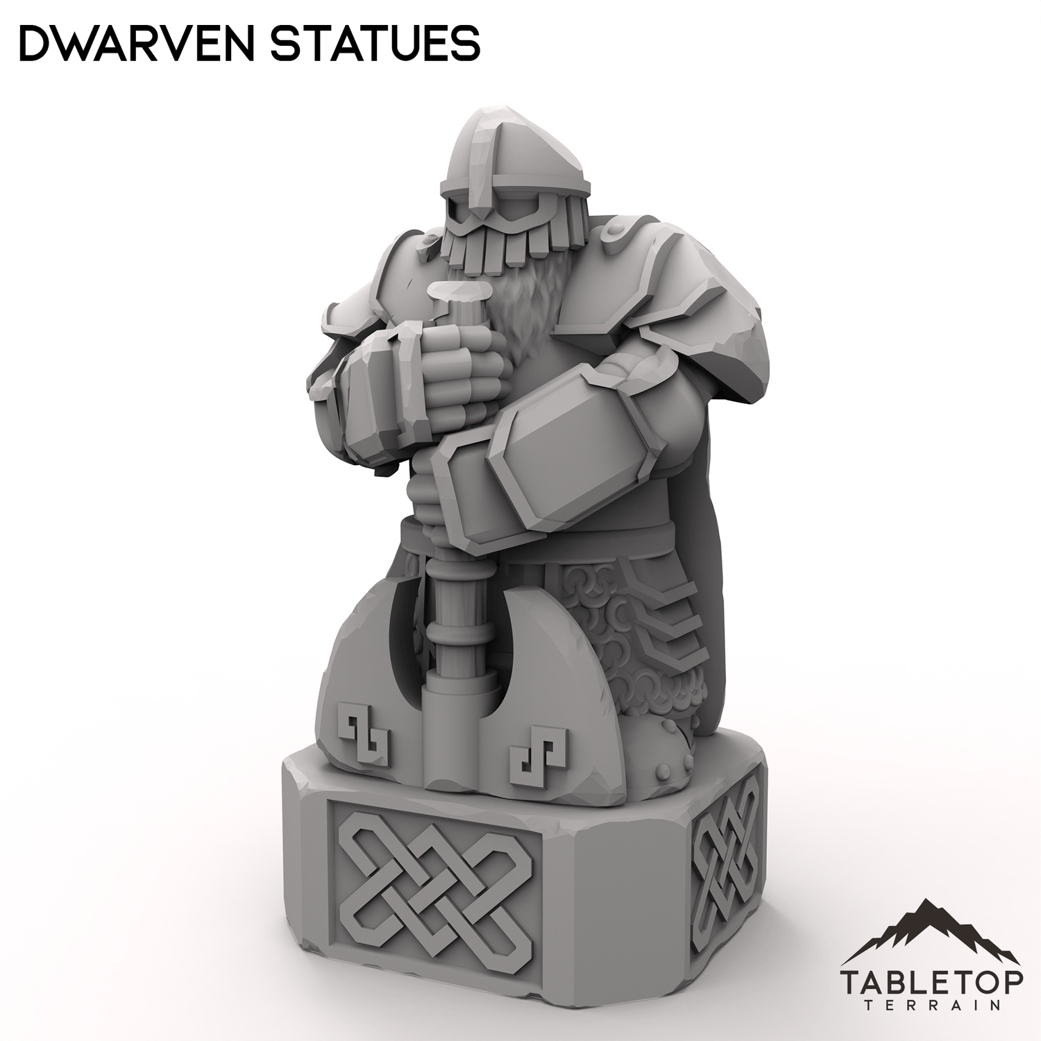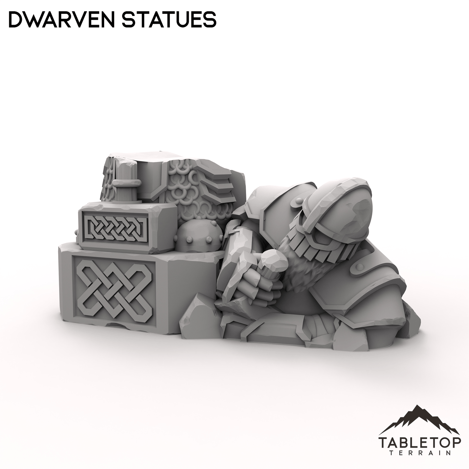 Four Dwarven statues to decorate your battlefields or RPGs. Two intact statues are accompanied by two destroyed versions.