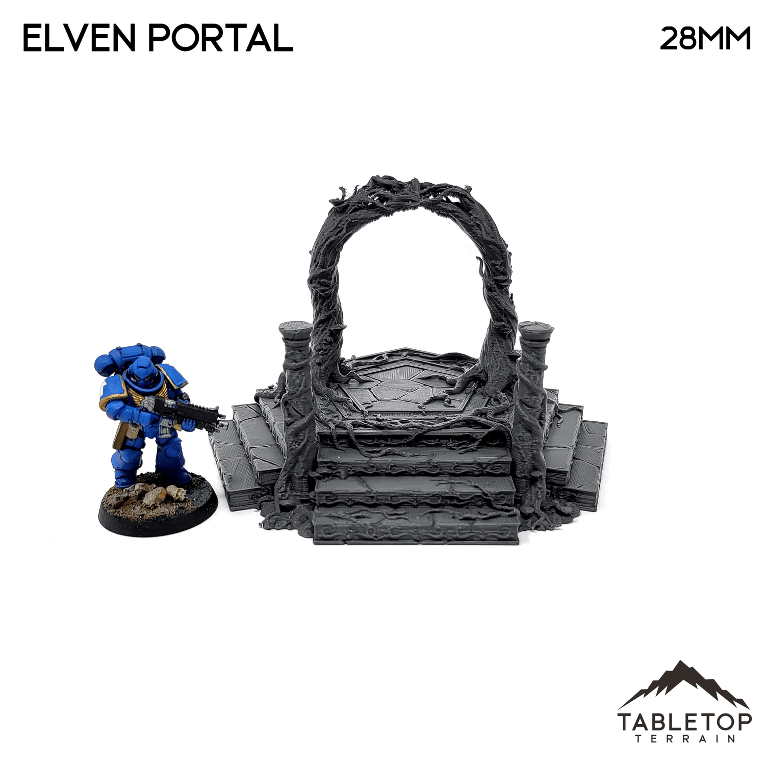 The Elven Portal is a portal made from trees on a raised stone platform. The portal has a lot of fine detail and would be perfect for fantasy games such as Dungeons and Dragons (DND), Age of Sigmar (AoS), Pathfinder, Frostgrave, or Conquest.