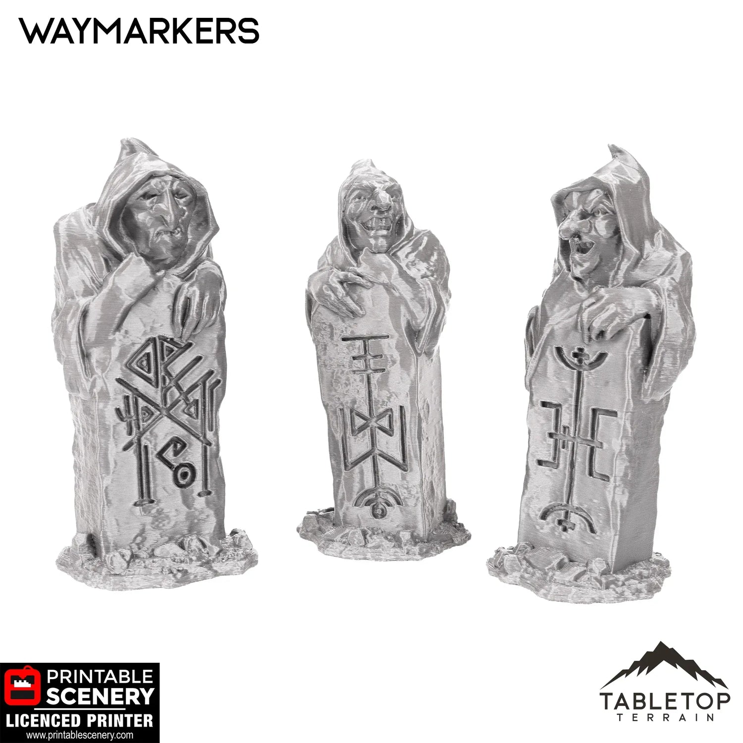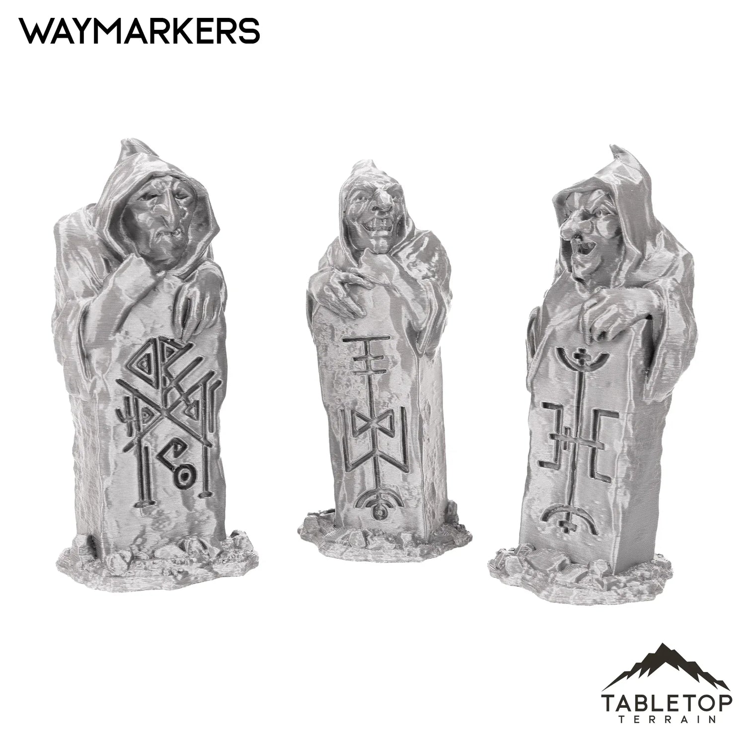 The Waymarkers is a set of different totems that can be used for objective markers in gaming. They are designed for the Hagglethorn Hollow universe and would be perfect for fantasy games such as Dungeons and Dragons (DND), Age of Sigmar (AoS), Pathfinder, Frostgrave, or Conquest.
