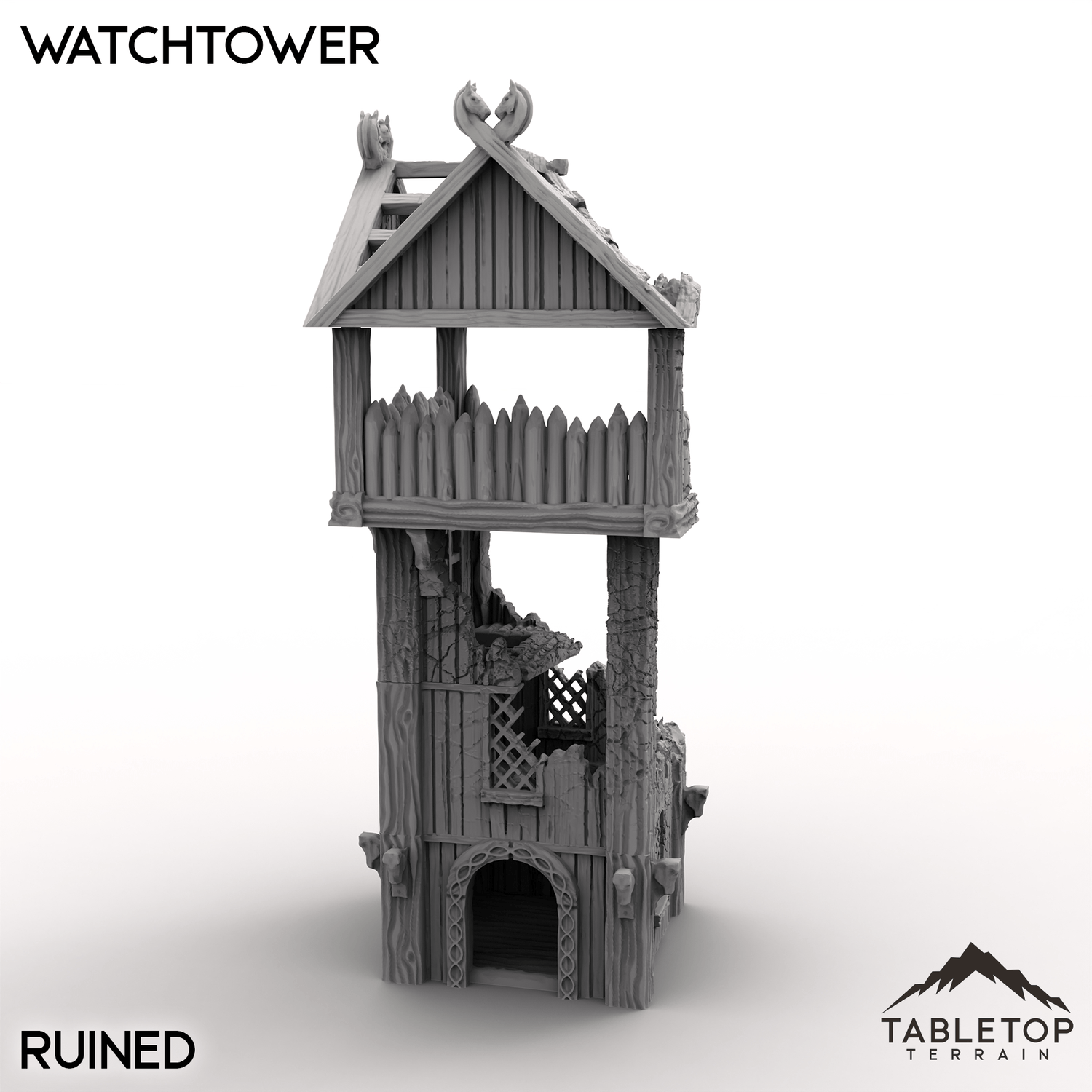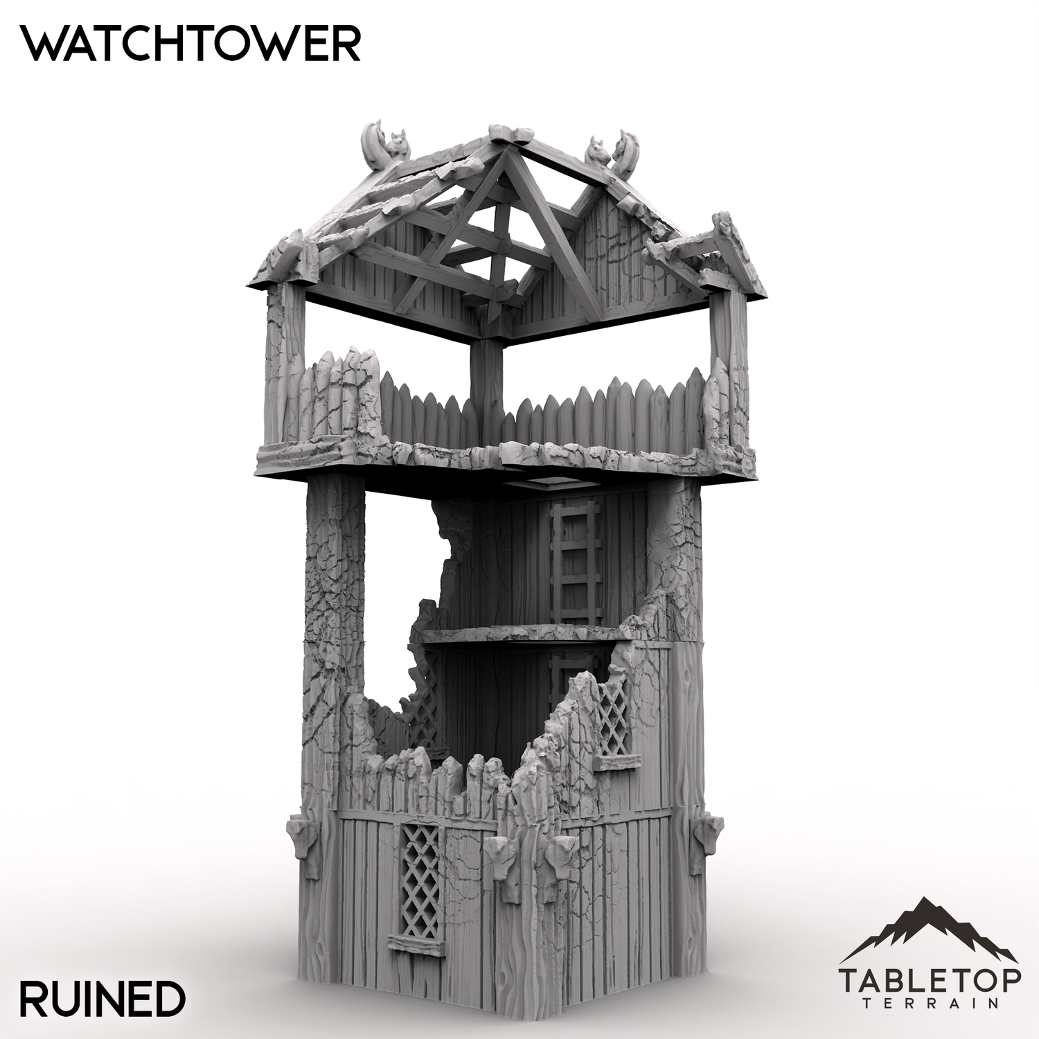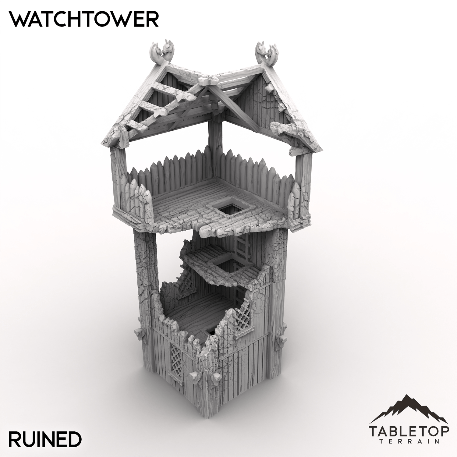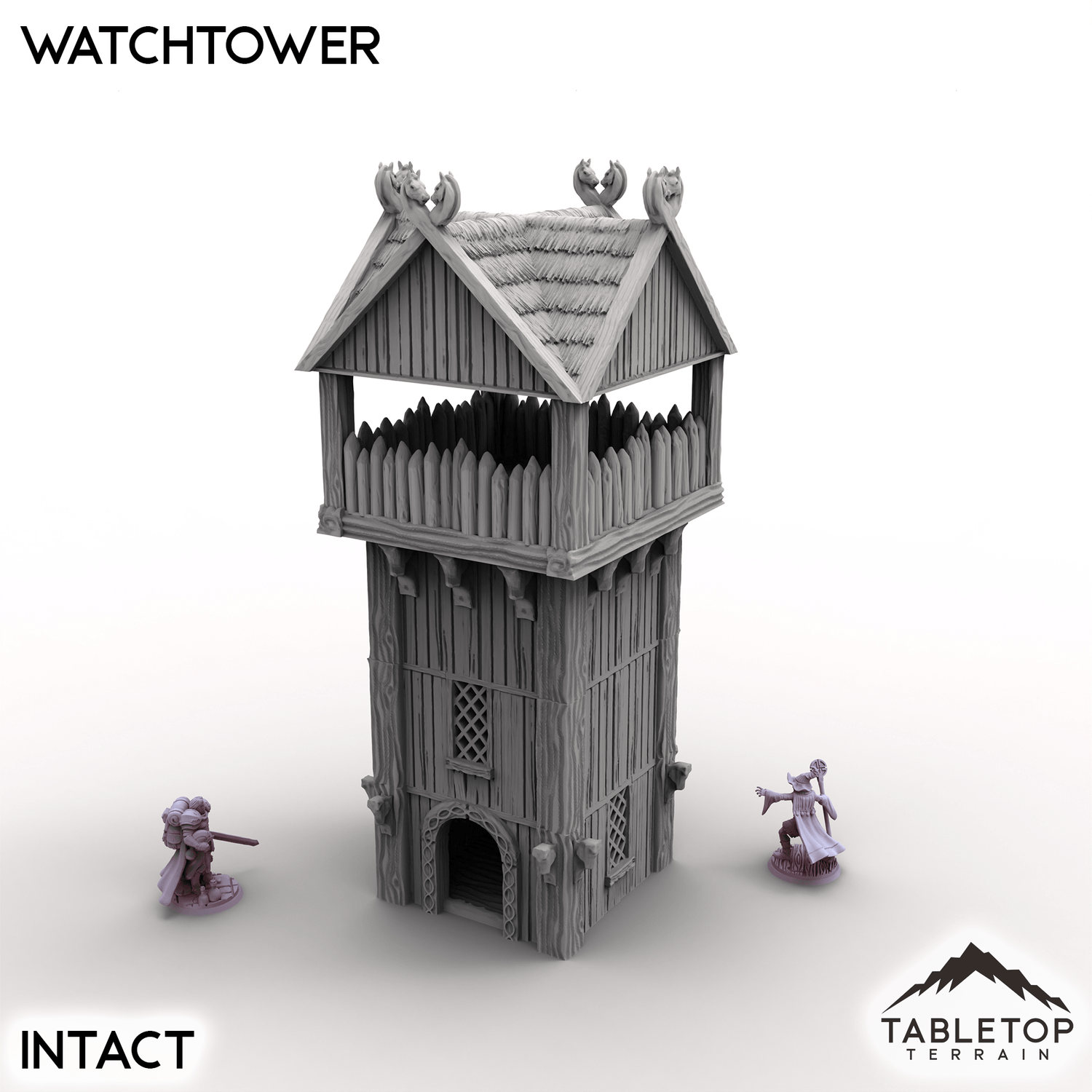 The Watchtower is a tall singular building with 5 floors for minis. The uppermost floor features a wooden fence to help defend and protect the guards inside. The tall tower provides and excellent view of the surrounding land, and can hold a number of minis in the different levels of the tower's walls.