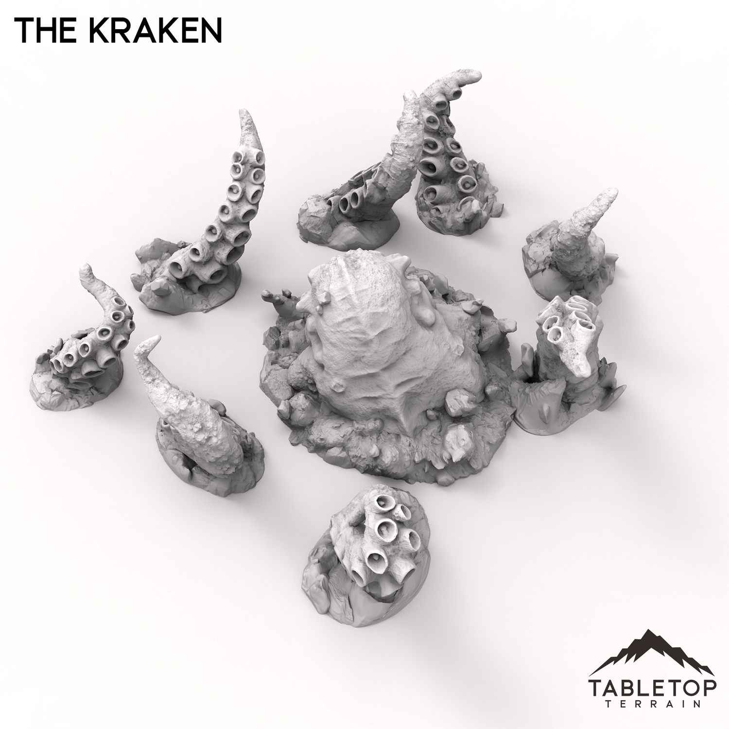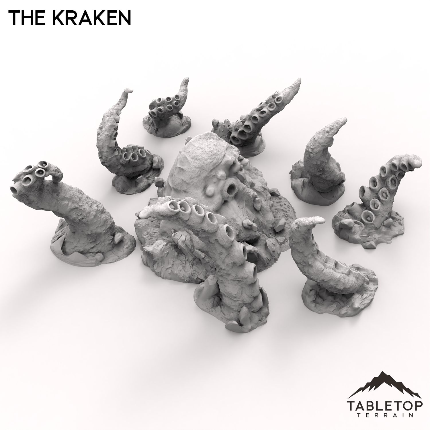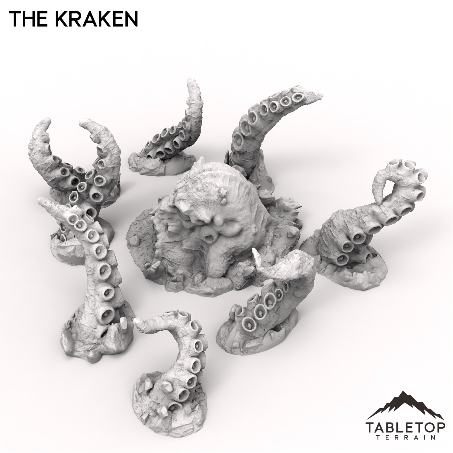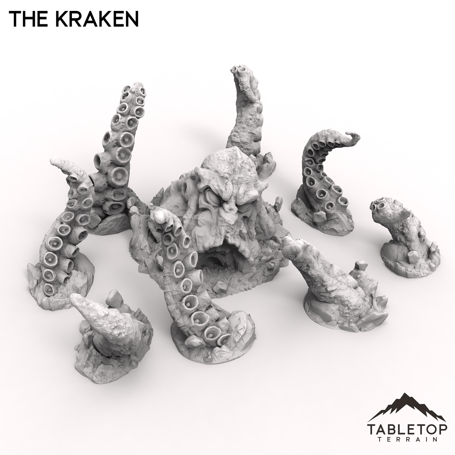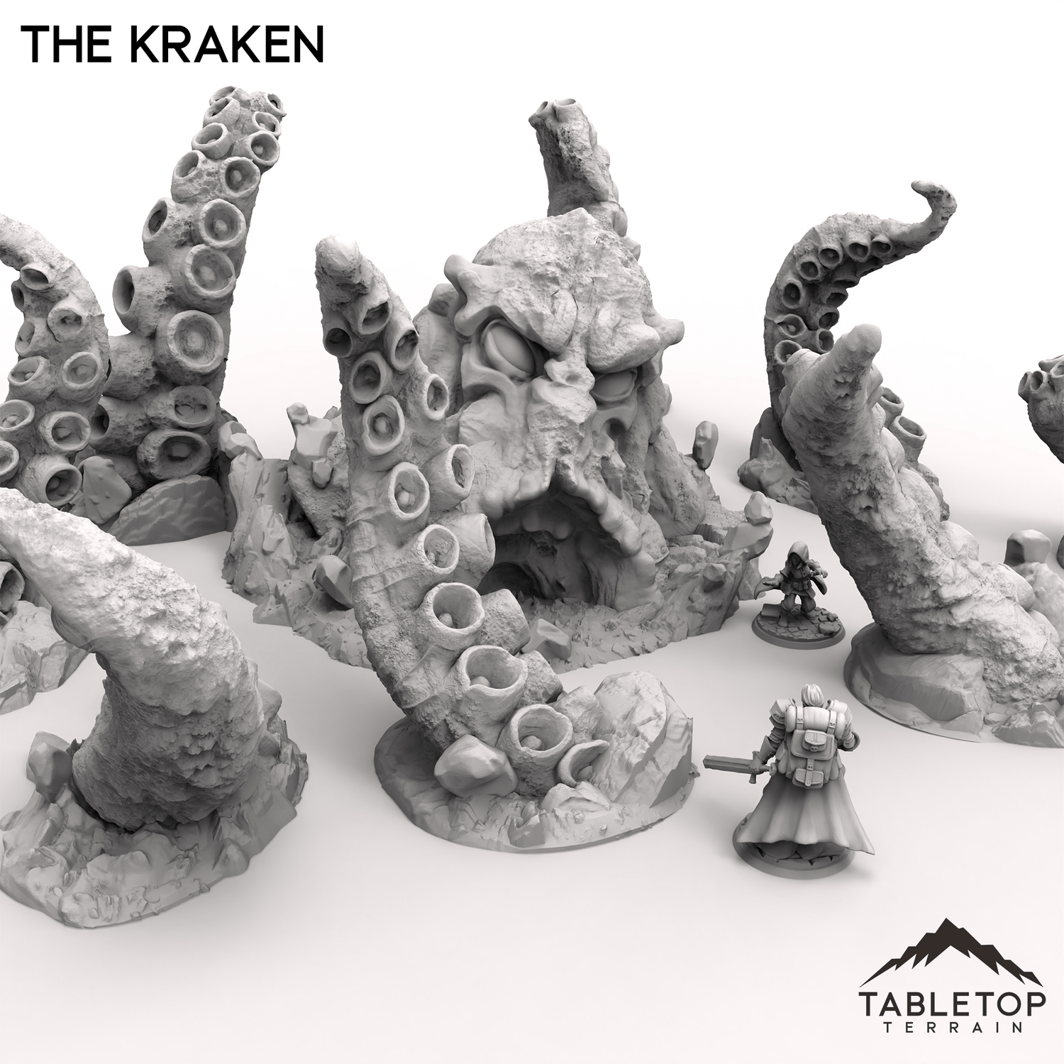 Emerging from the depths, the colossal head and writhing tentacles of a Kraken burst through the ground. This terrifying scene of a Kraken rising from the ground transforms the terrain into a deadly arena, where only the bravest dare to tread.