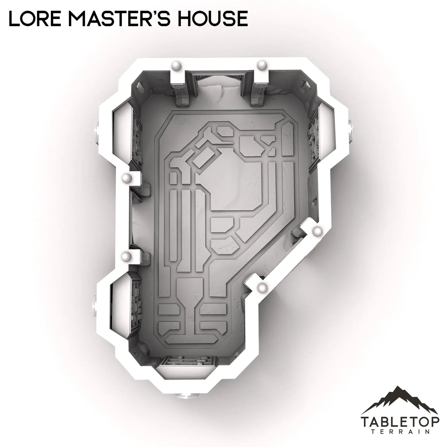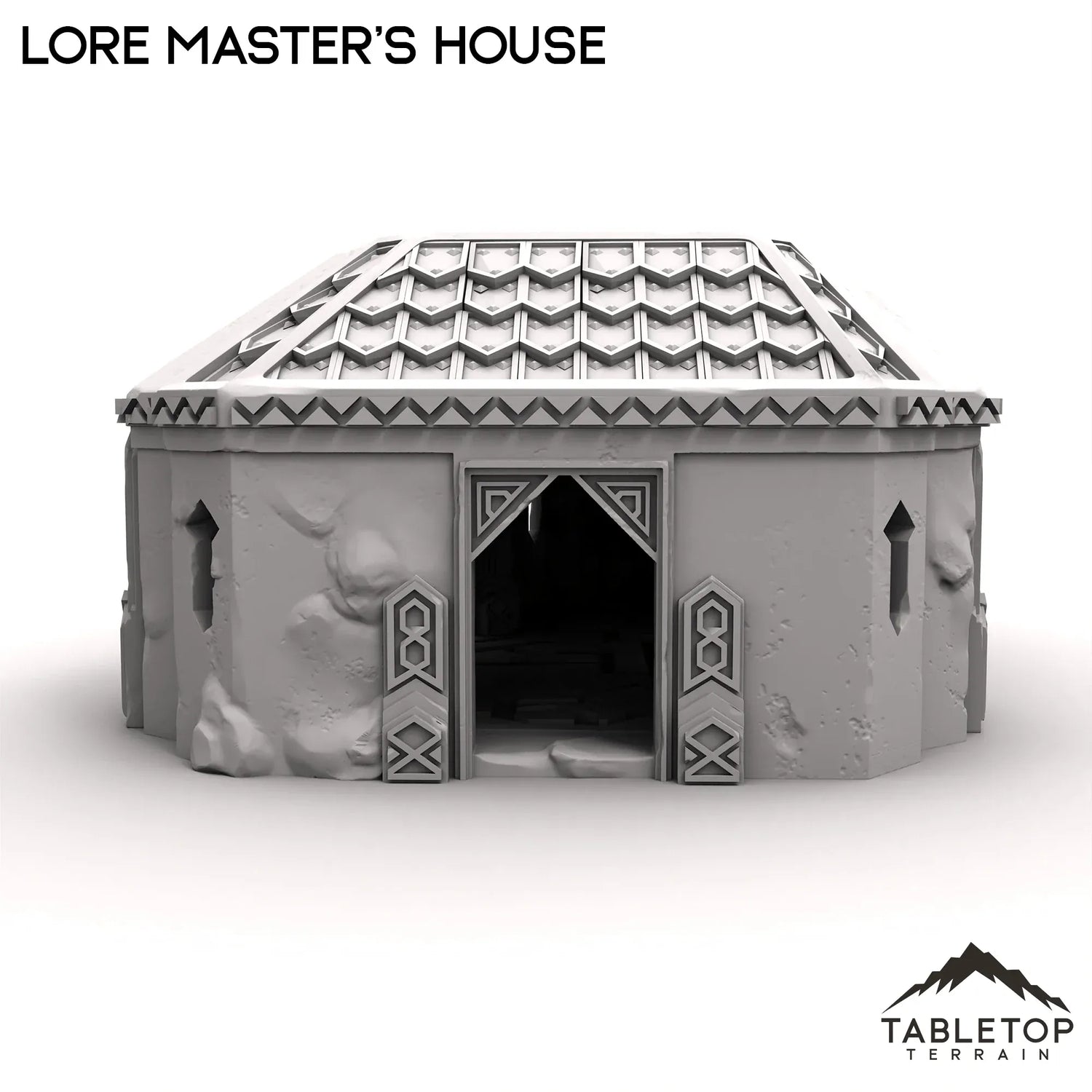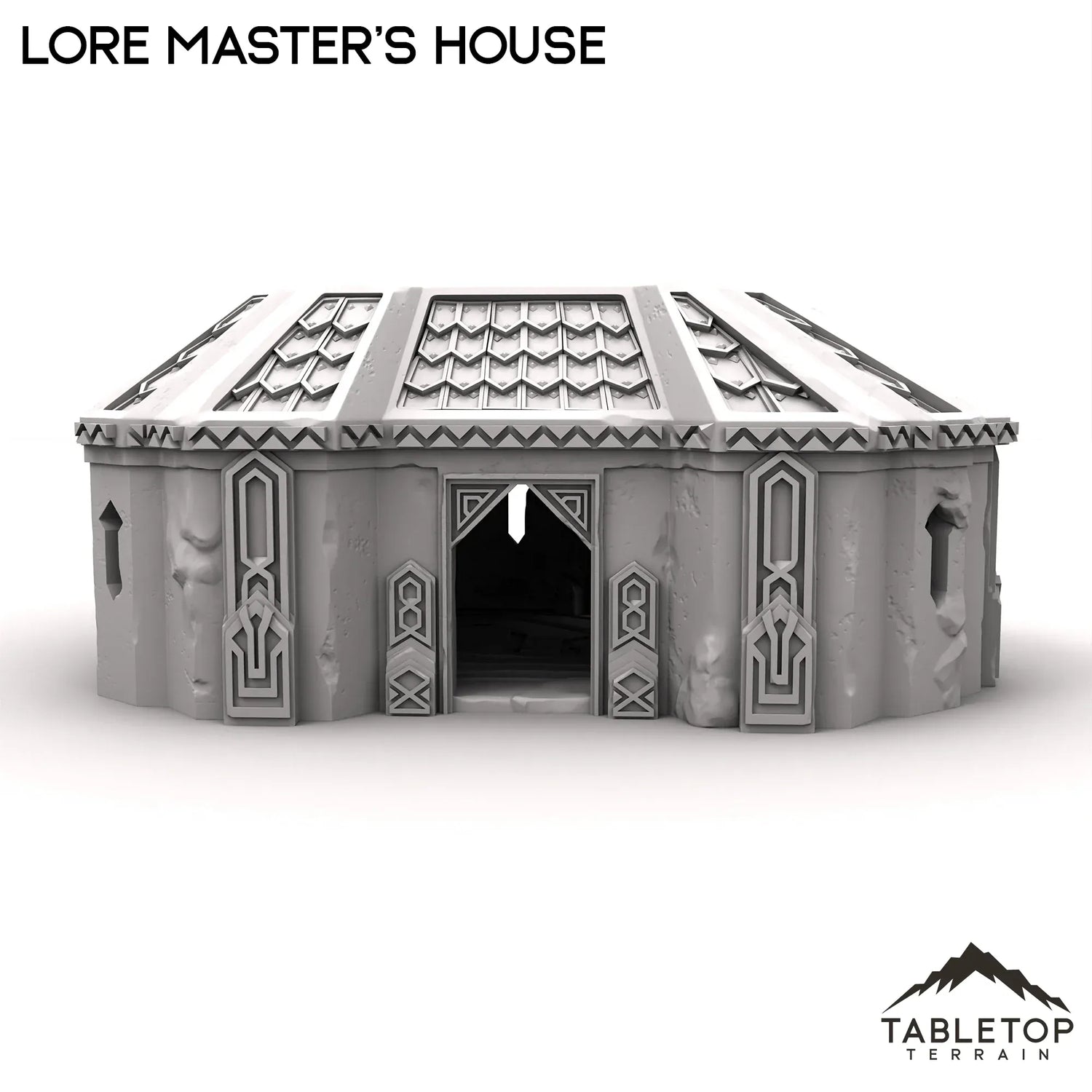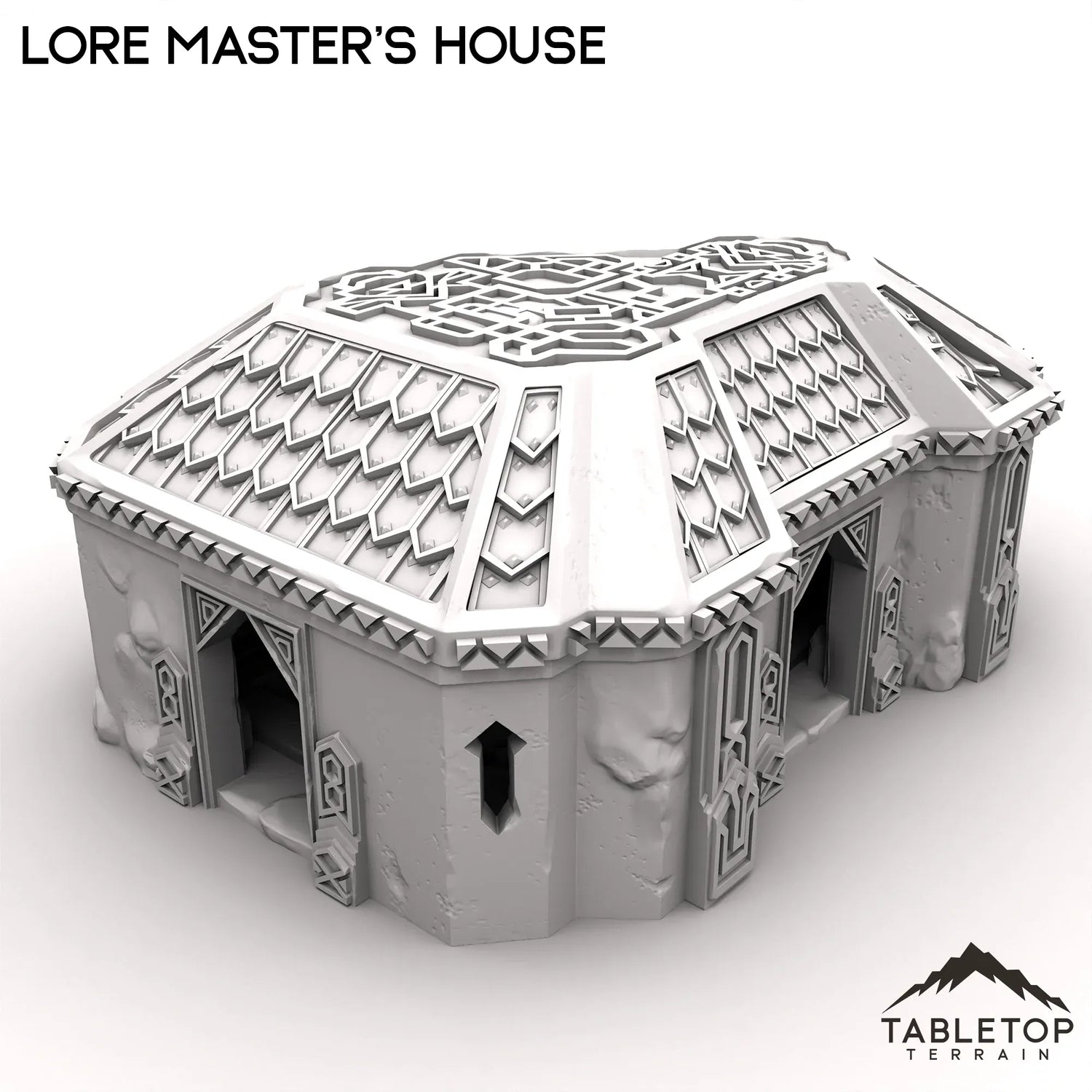 The Lore Master's House has a removeable roof and detailed interior. The house has bookshelves with novels and scrolls set directly into the walls themselves. The roof is removeable, to make painting and storage easier.