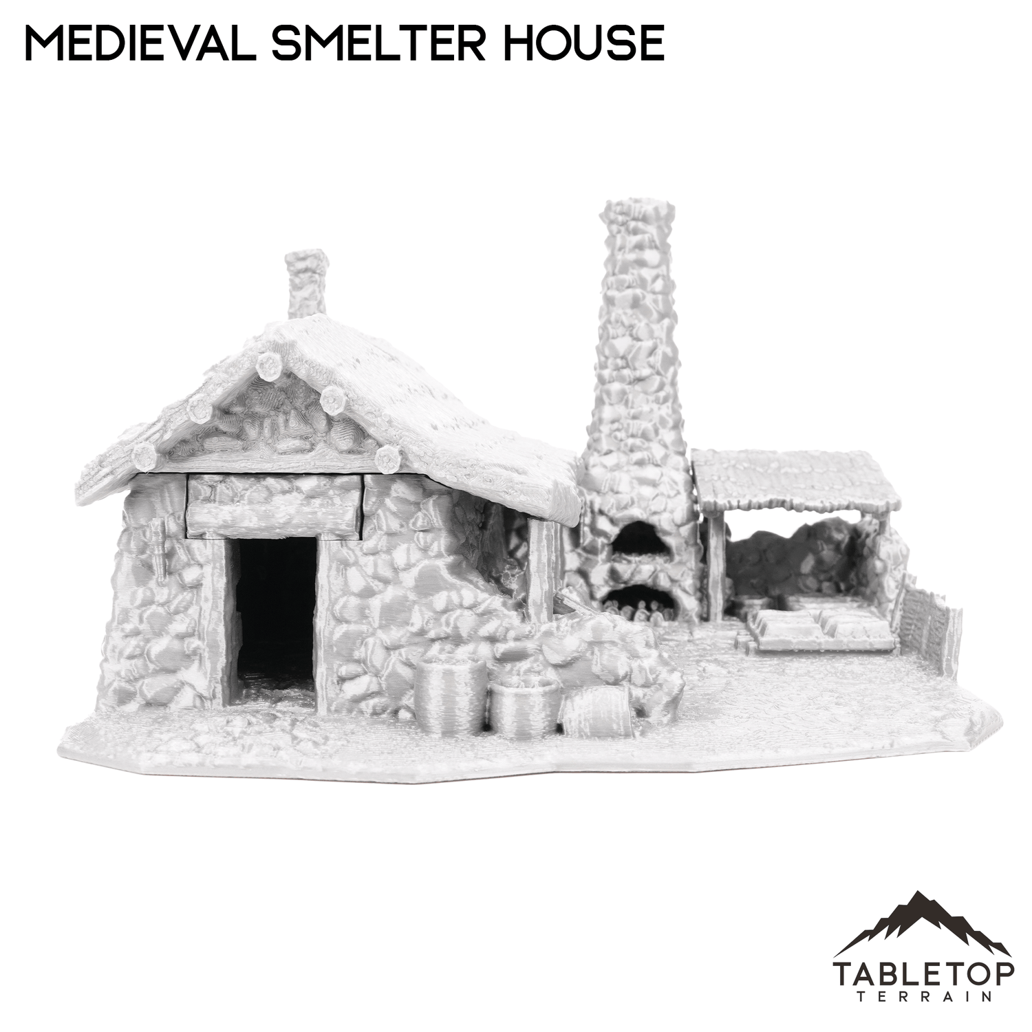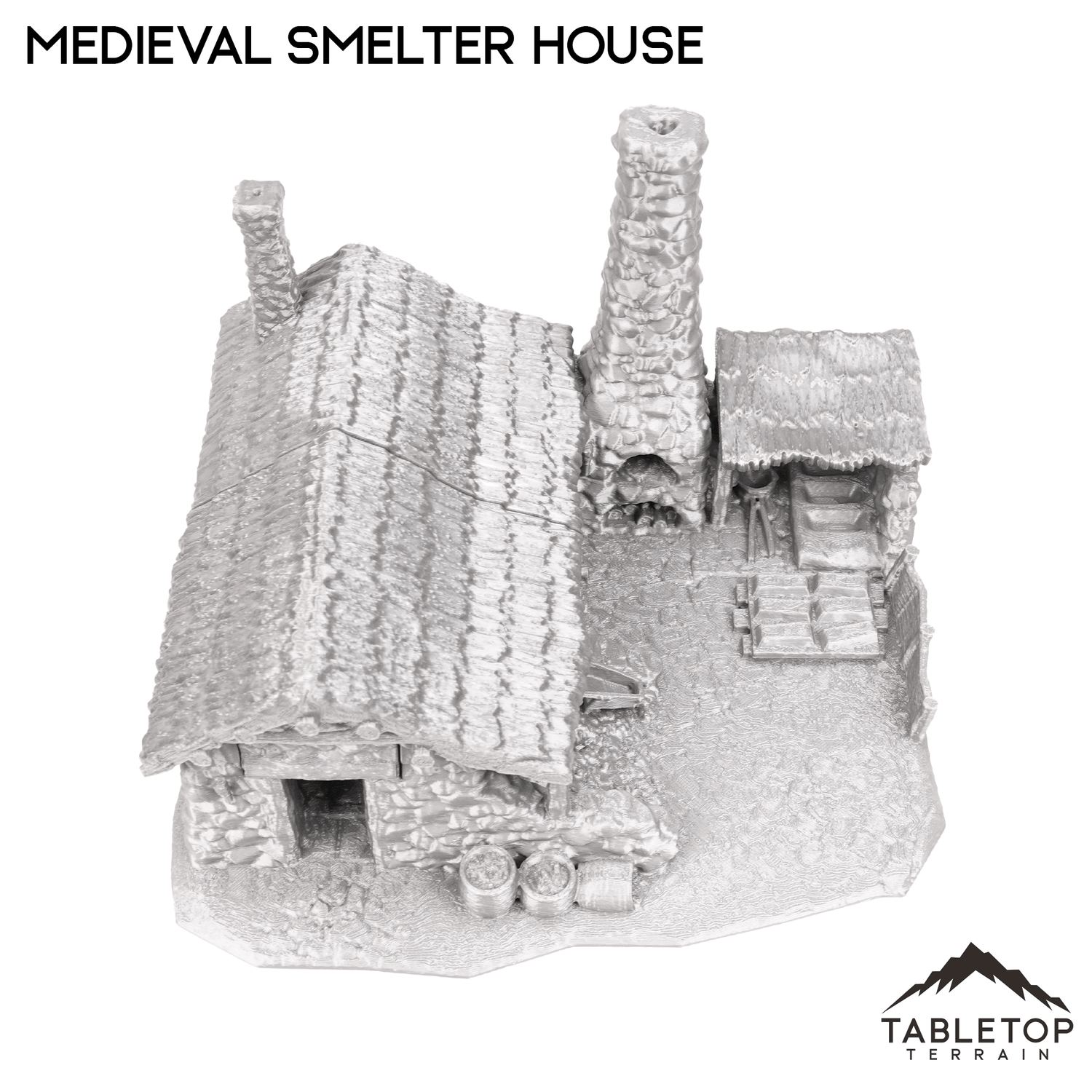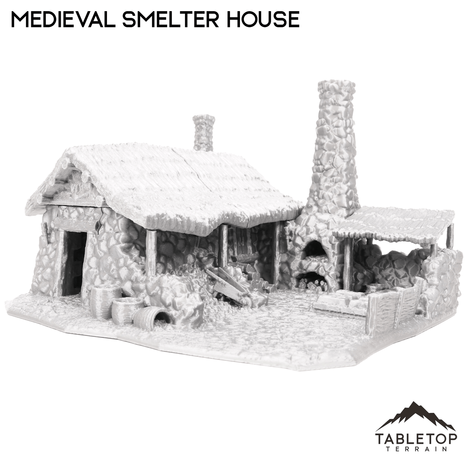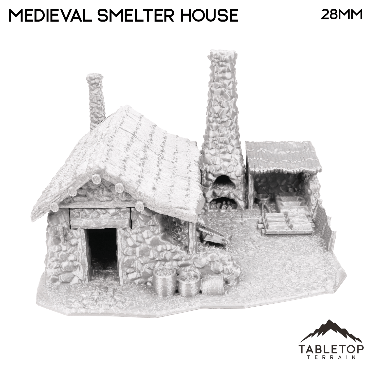 The Smelter House is the workshop and house of a blacksmith. It features a removable roof on the house as well as a removable awning on the workspace. The Smelter House is available in 28mm, 20mm, and 15mm scales.