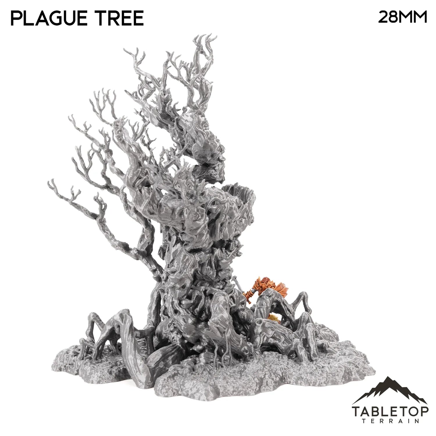 The Plague Tree is a large singular tree cover in vines, moss, and fungi. There are faces set into the bark of the tree, lending the model an air of mystery and providing an interesting hook for storytelling. It would work great for fantasy games such as Dungeons and Dragons, Pathfinder, or Age of Sigmar. It also can work well for a jungle planet for sci-fi games like Star Wars Legion or Shatterpoint.