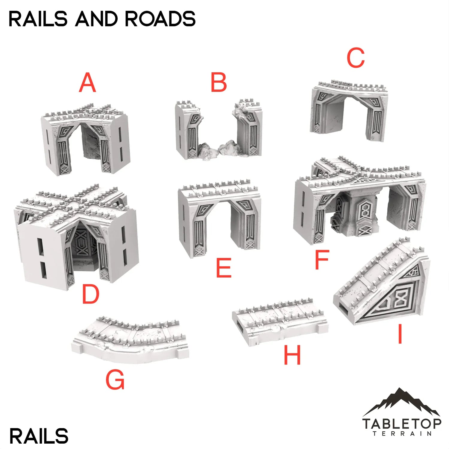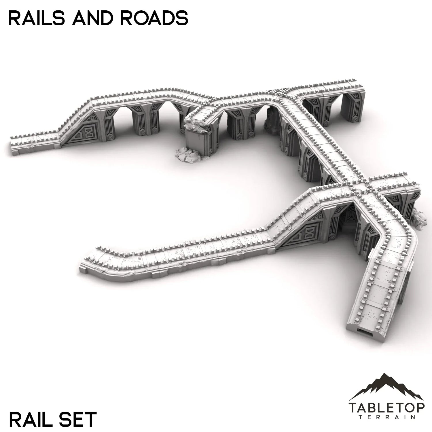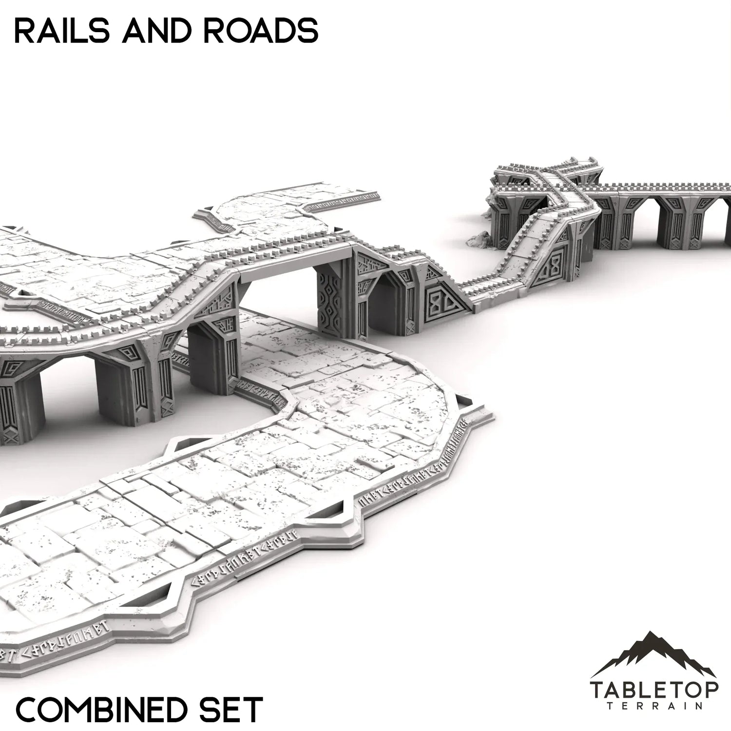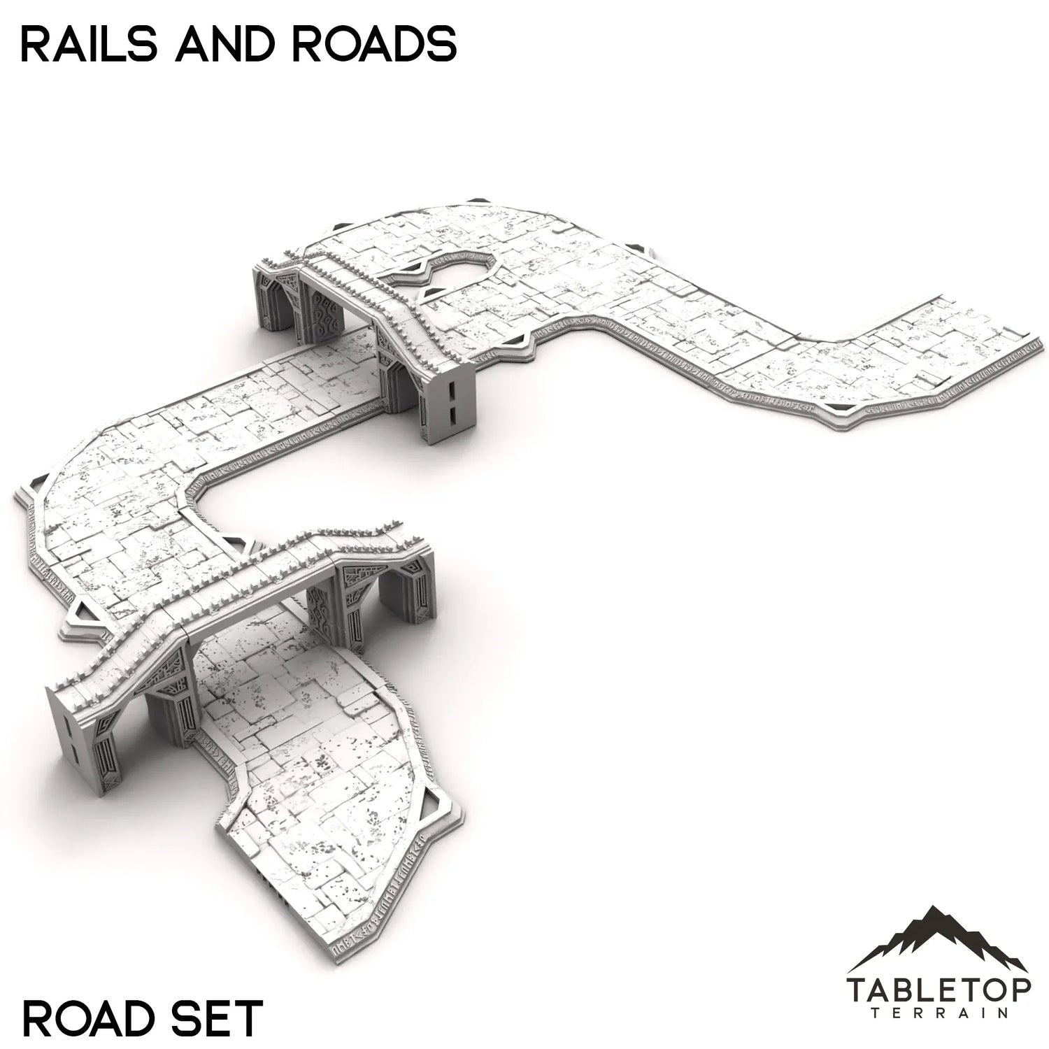 The Durak Deep Rails and Roads system is designed to connect the different budling from the Durak Deep collection together. The system is fully modular, allowing for nearly endless combinations for whatever layout you need for your tabletop. We sell the parts individually, as well as a collection of pieces bundled into sets.