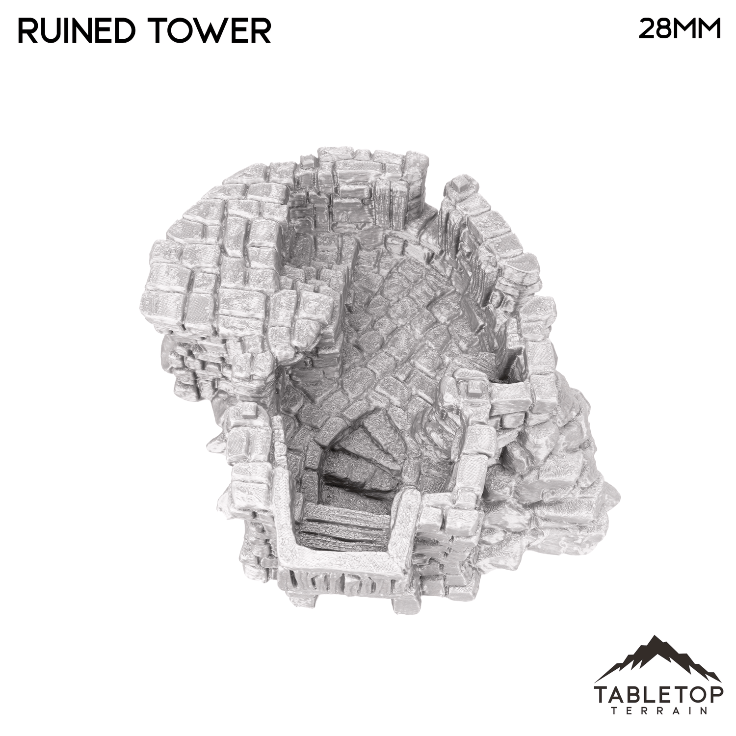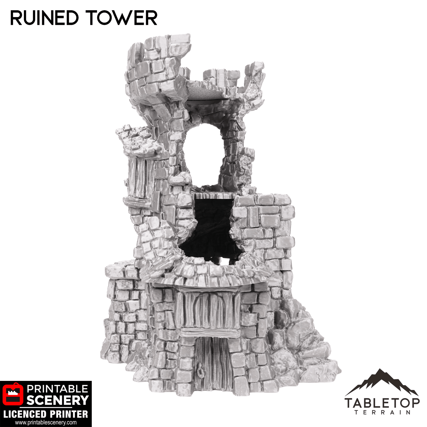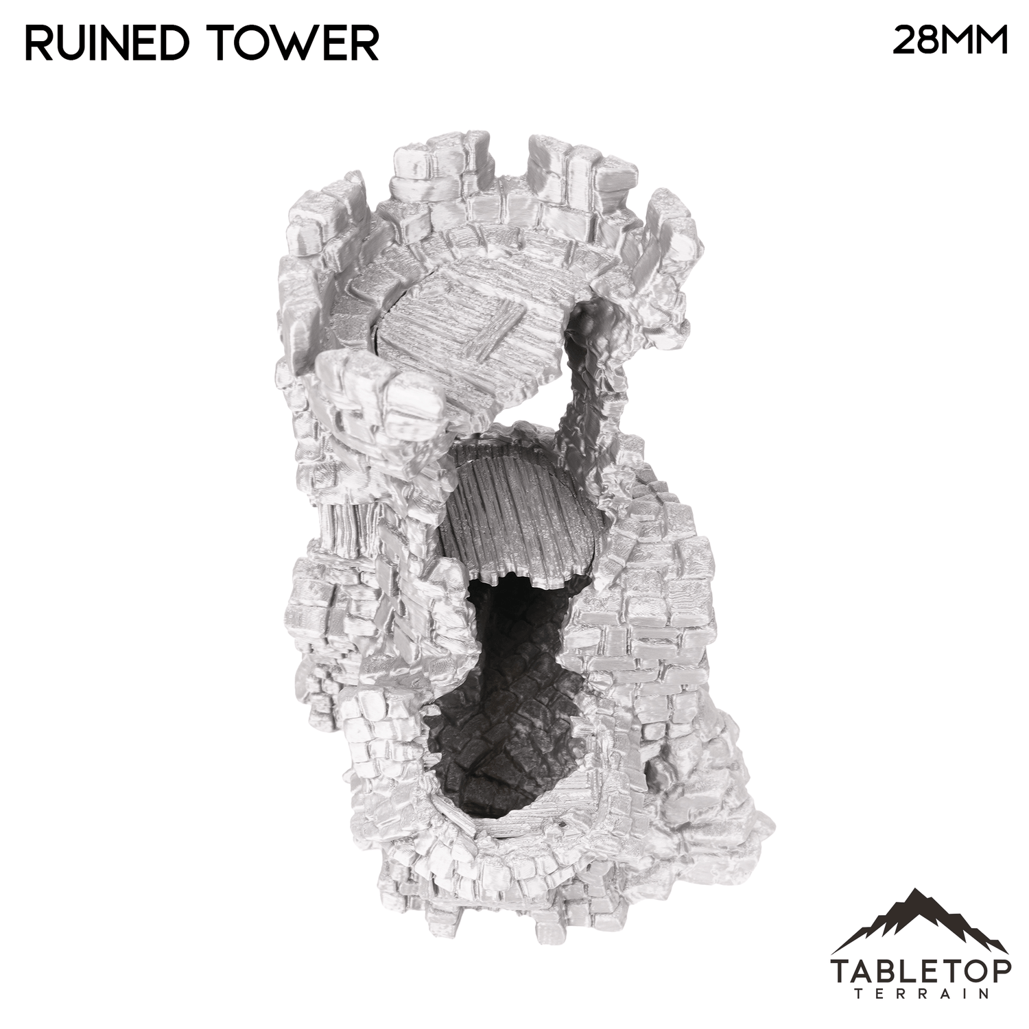 Hagglethorn Ruined Tower is a direct replacement of the Hagglethorn Tower. It takes up the same footprint so they can be interchanged during play. It is designed for the Hagglethorn Hollow universe and would be perfect for fantasy games such as Dungeons and Dragons (DND), Age of Sigmar (AoS), Pathfinder, Frostgrave, or Conquest.