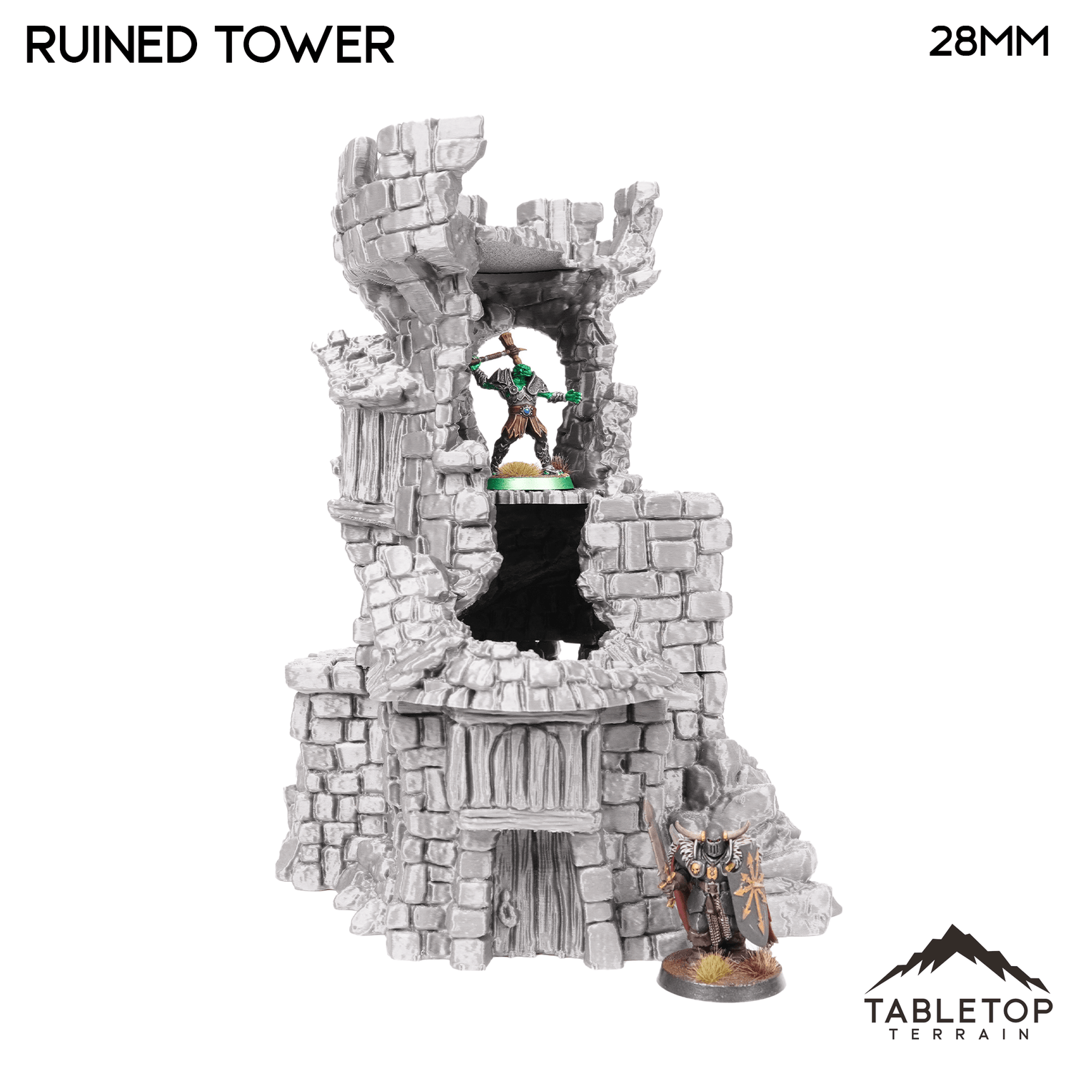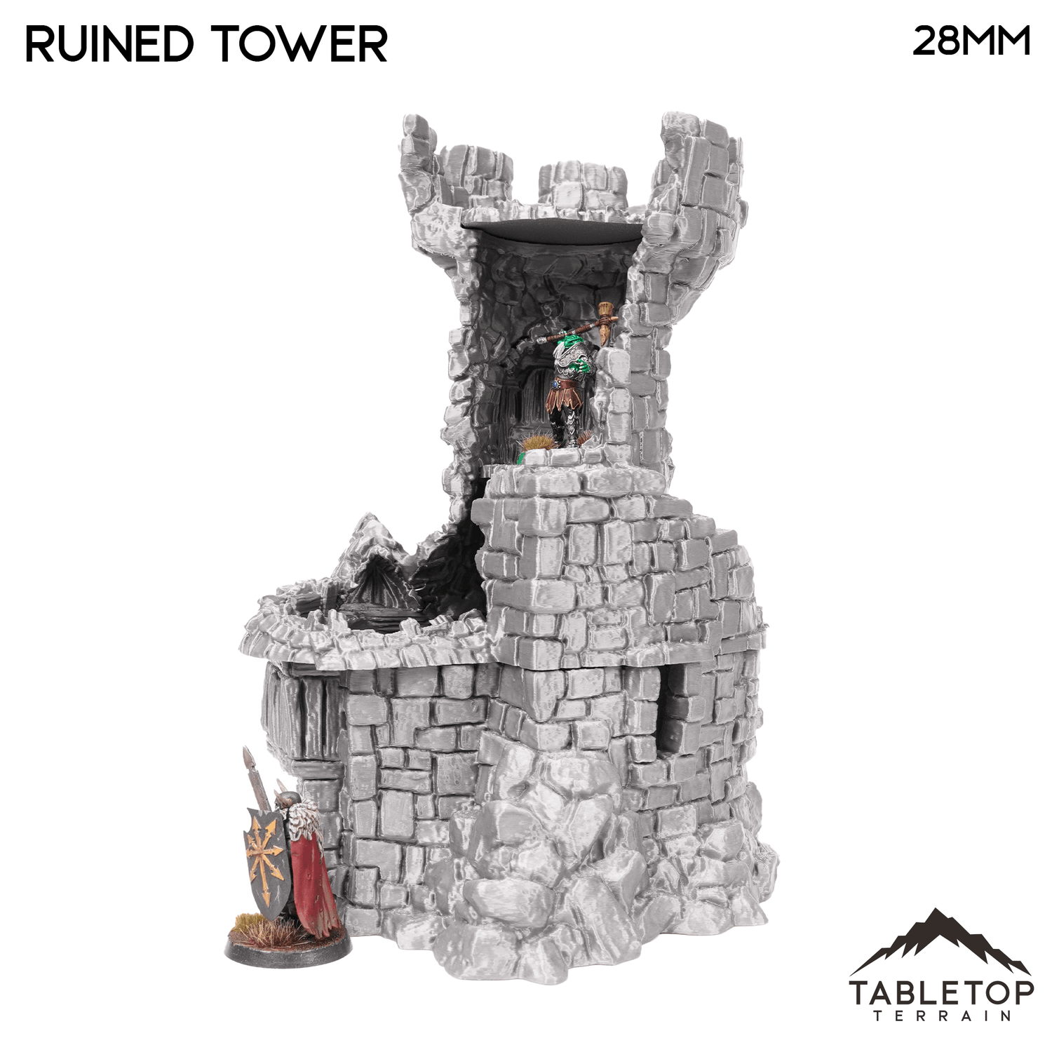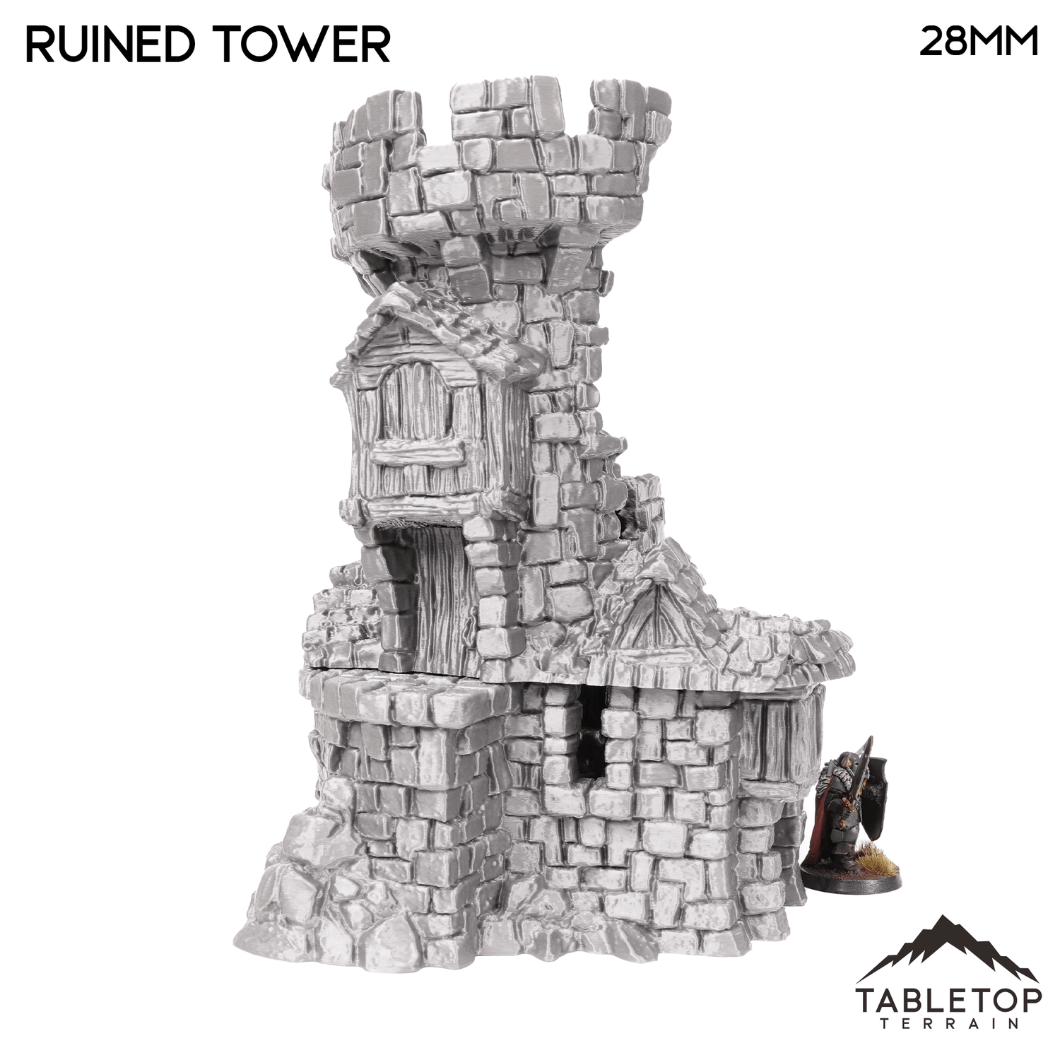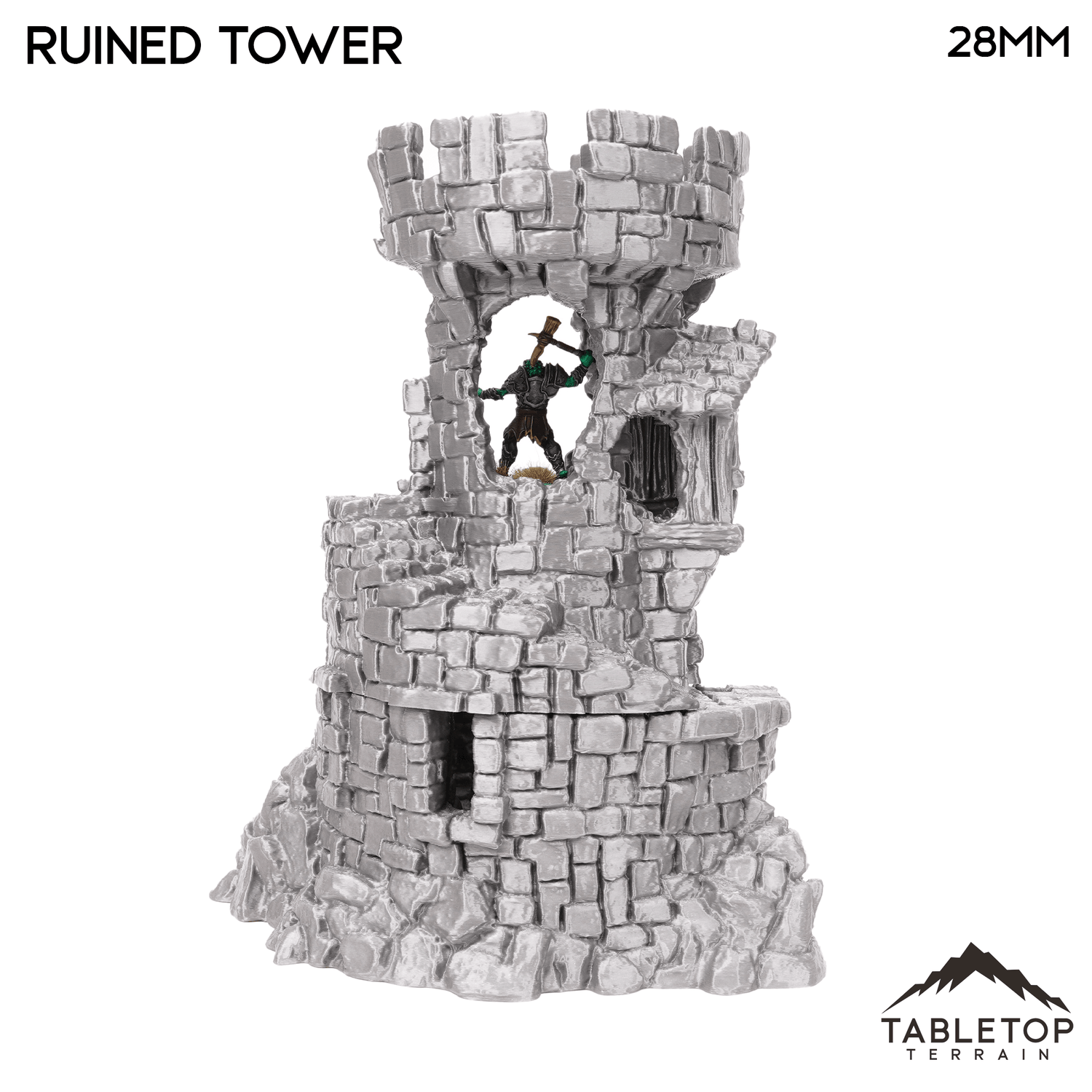 Hagglethorn Ruined Tower is a direct replacement of the Hagglethorn Tower. It takes up the same footprint so they can be interchanged during play. It is designed for the Hagglethorn Hollow universe and would be perfect for fantasy games such as Dungeons and Dragons (DND), Age of Sigmar (AoS), Pathfinder, Frostgrave, or Conquest.