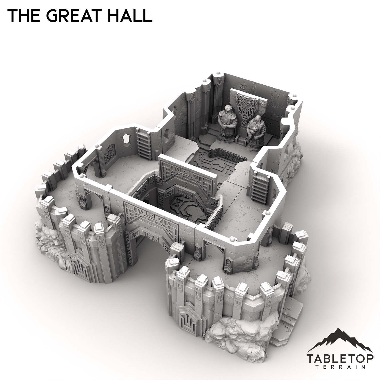 The Great Hall is a 3-story, large throne room for the king of Durak Deep. The great throne sits at the back of this regal building with an interior lined statues and arms for the royal guards. The upper floors are connected by ladders leading to platforms for guards to stand and oversee the surroundings.