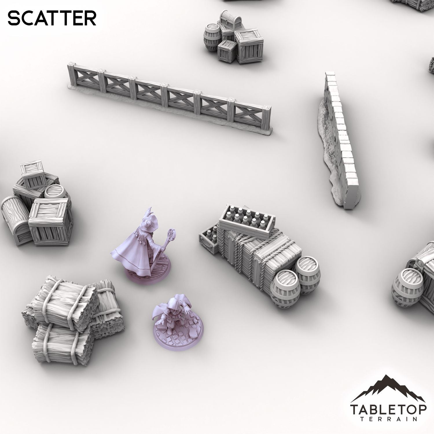 This is a set of themed scatter, matching the style of the buildings in the Kingdom of Saxonia collection. The set is designed to match the look and feel of other items in the Saxonia collection, but could work with nearly any genre and tabletop.