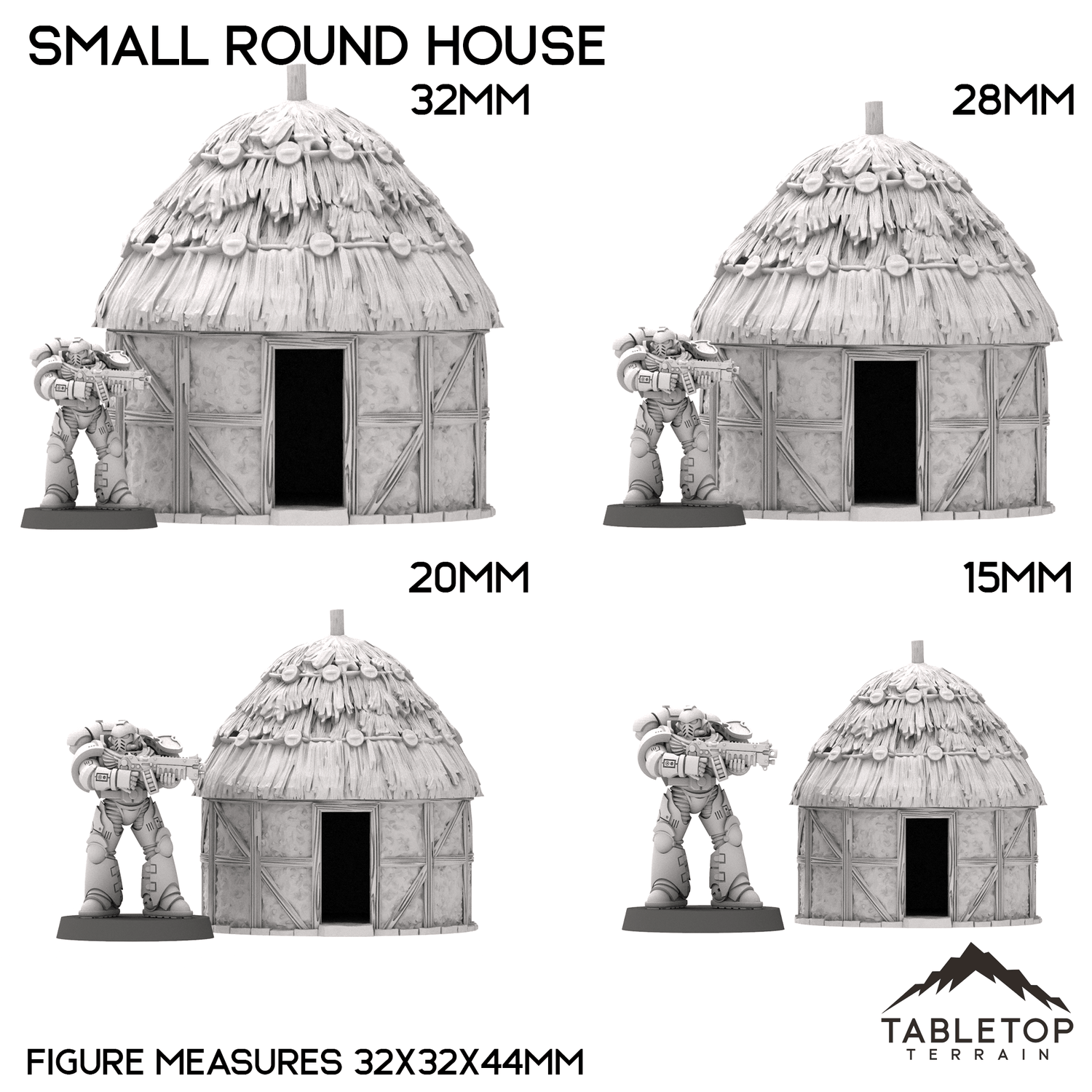 The Small Round House is a little single story building that townsfolk or common folk would live in. The roof is removable to grant easy access inside and the front door articulates on the hinge. It would work great for historical games, such as WII Bolt Action, Flames of War or Fields of Glory. It would also work great for Fantasy RPG games such as DND, Age of Sigmar, Kings of War, or Conquest. The building is printed in 32mm, 28mm, 20mm or 15mm scale with other scales available upon request.