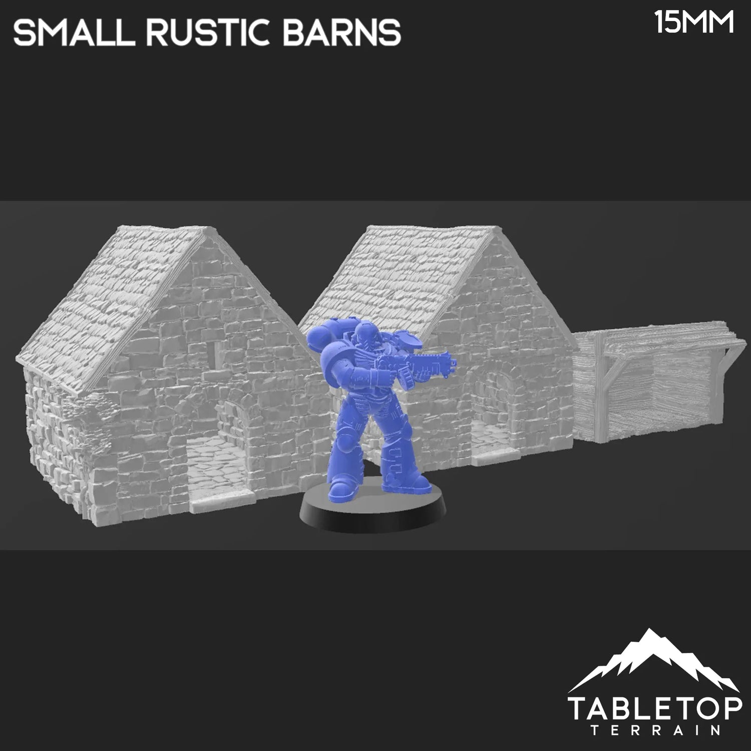 The Small Rustic Barns is a set of three barns with removable roofs and detailed interiors. They each have flat sides so they can sit flush against other buildings if desired. They would work great for historical games, such as WII Bolt Action, Flames of War or Fields of Glory. They would also work great for Fantasy RPG games such as DND, Age of Sigmar, Kings of War, or Conquest. The building is printed in 32mm, 28mm, 20mm or 15mm scale with other scales available upon request.