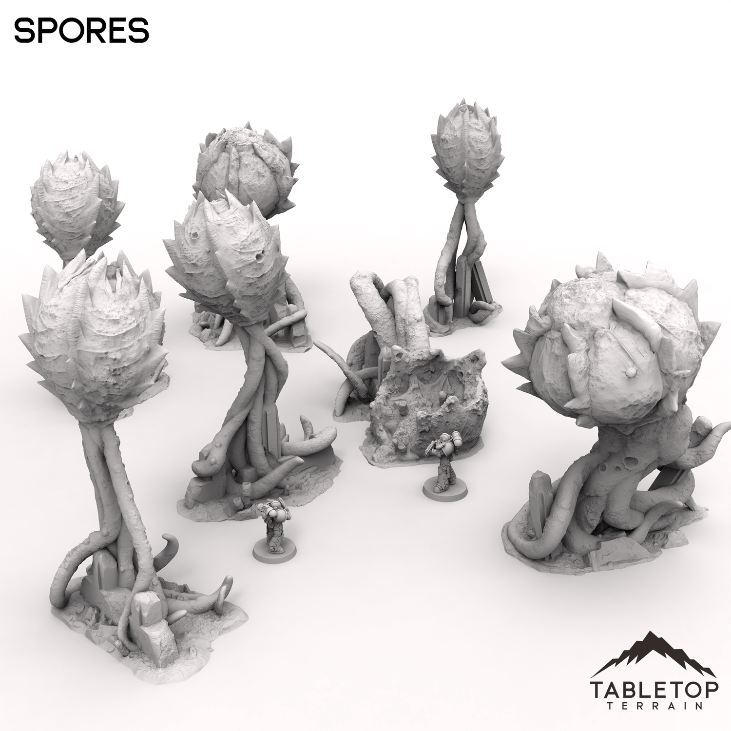 These alien spores, with their unsettling, otherworldly appearance, seem to pulse with an eerie life of their own. Perfect for adding a touch of unsettling alien flora to your tabletop, these spores could mark the territory of an invasive species or the aftermath of a sinister, spreading contamination. You can buy each piece individually or the whole set at a discount.