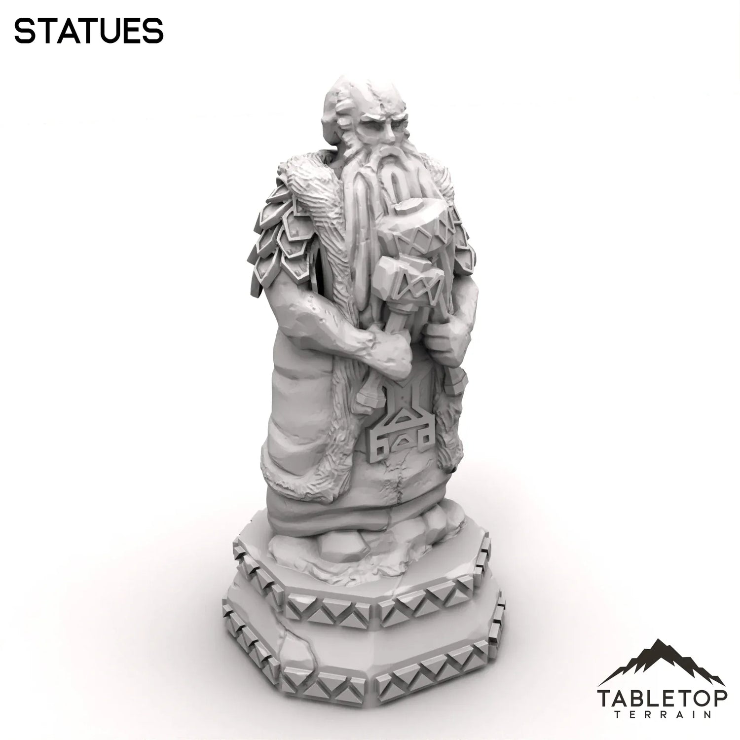 This is a simple set, consisting of 4 statues made in the Durak Deep theme and style. The set has 2 standing, well-maintained statues, 1 of a smith and 1 of a warrior. The set also contains 2 "ruined" statues, collapsed into rubble and broken down.