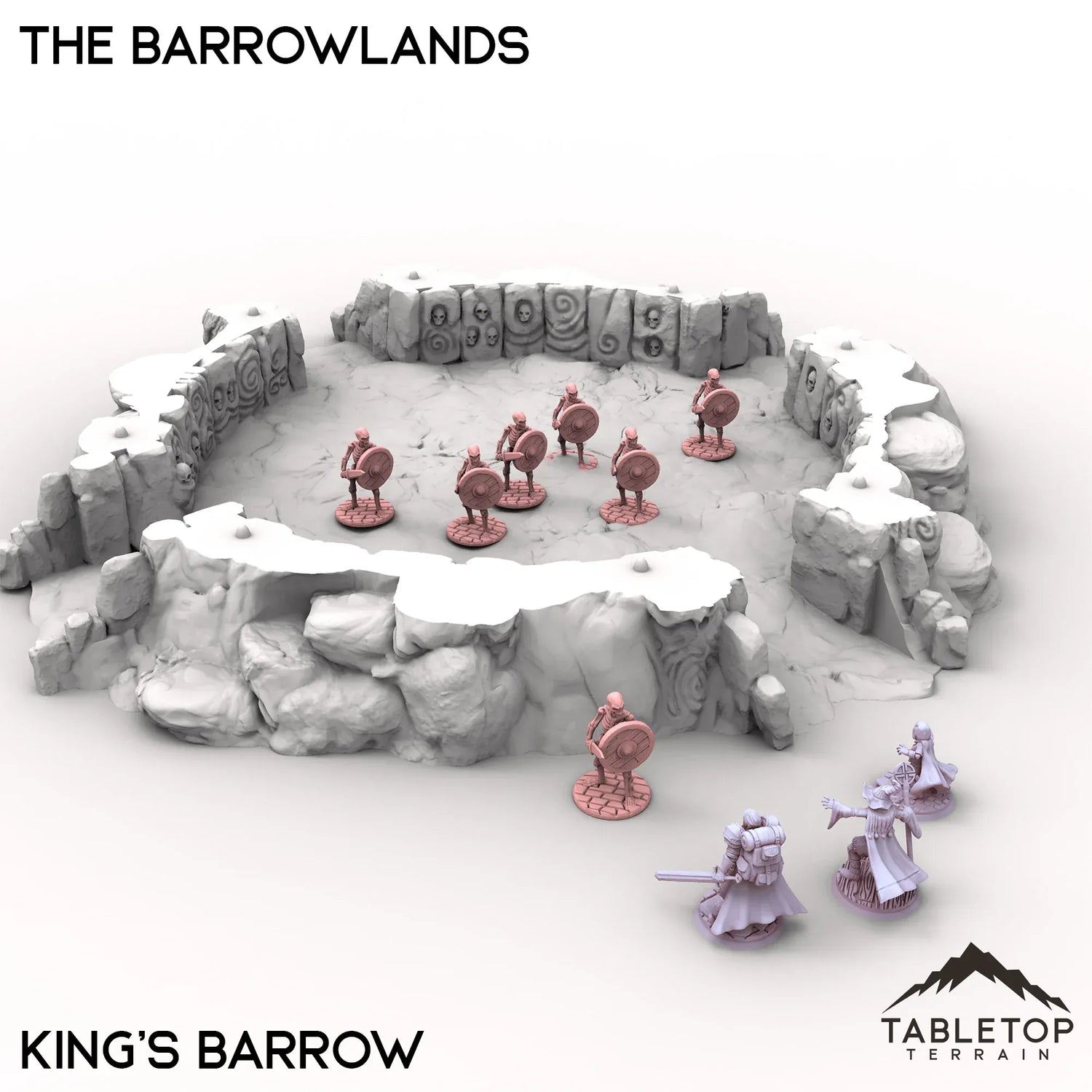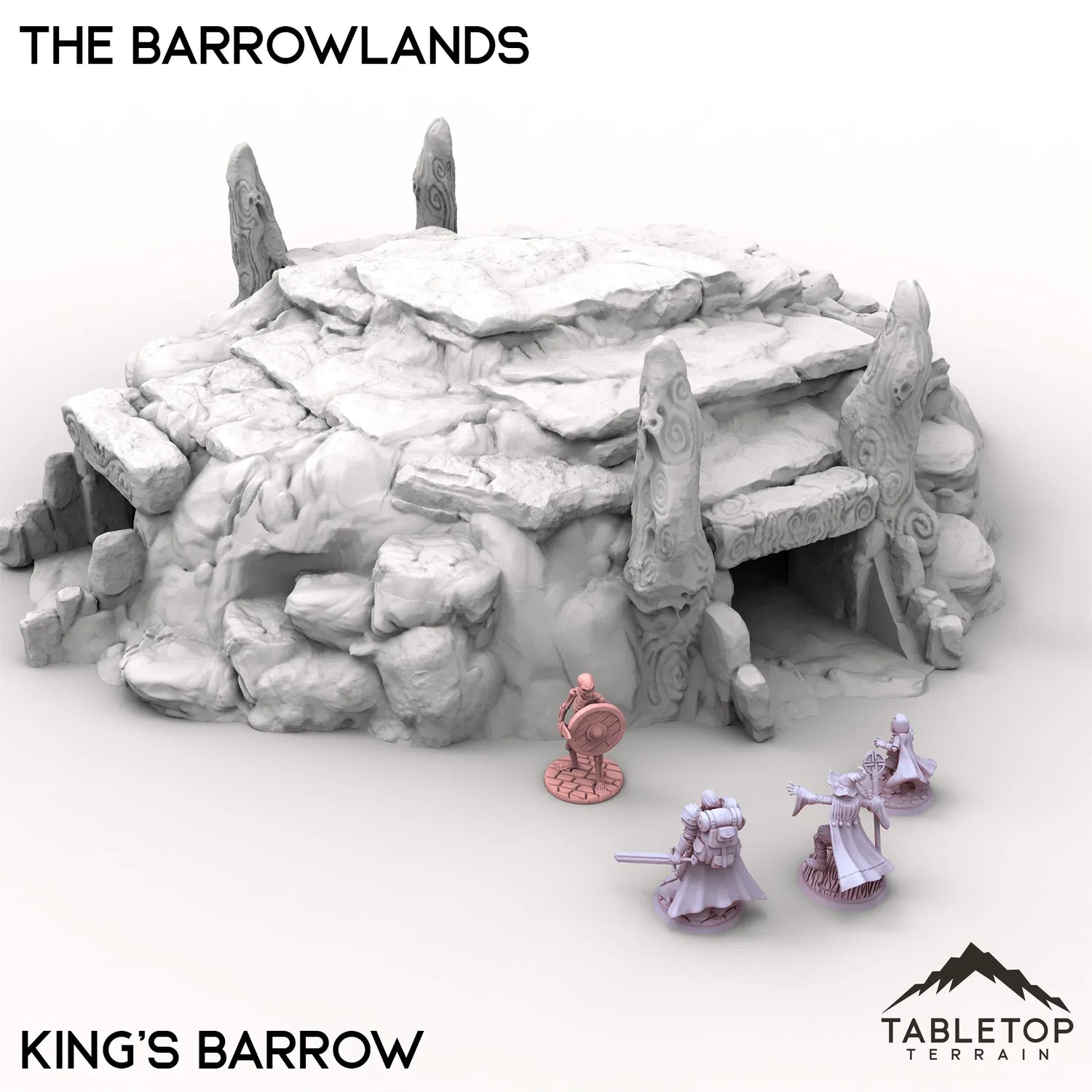 The dead lay in rest at the Barrowlands. The largest tomb, the King's Barrow, features a wide open interior with stone and dirt texturing for active use on a tabletop. The smaller Barrows Set features 6 different barrows for use around the table, while the Barrows Scatter adds detail and thematic elements to your tabletop layout.