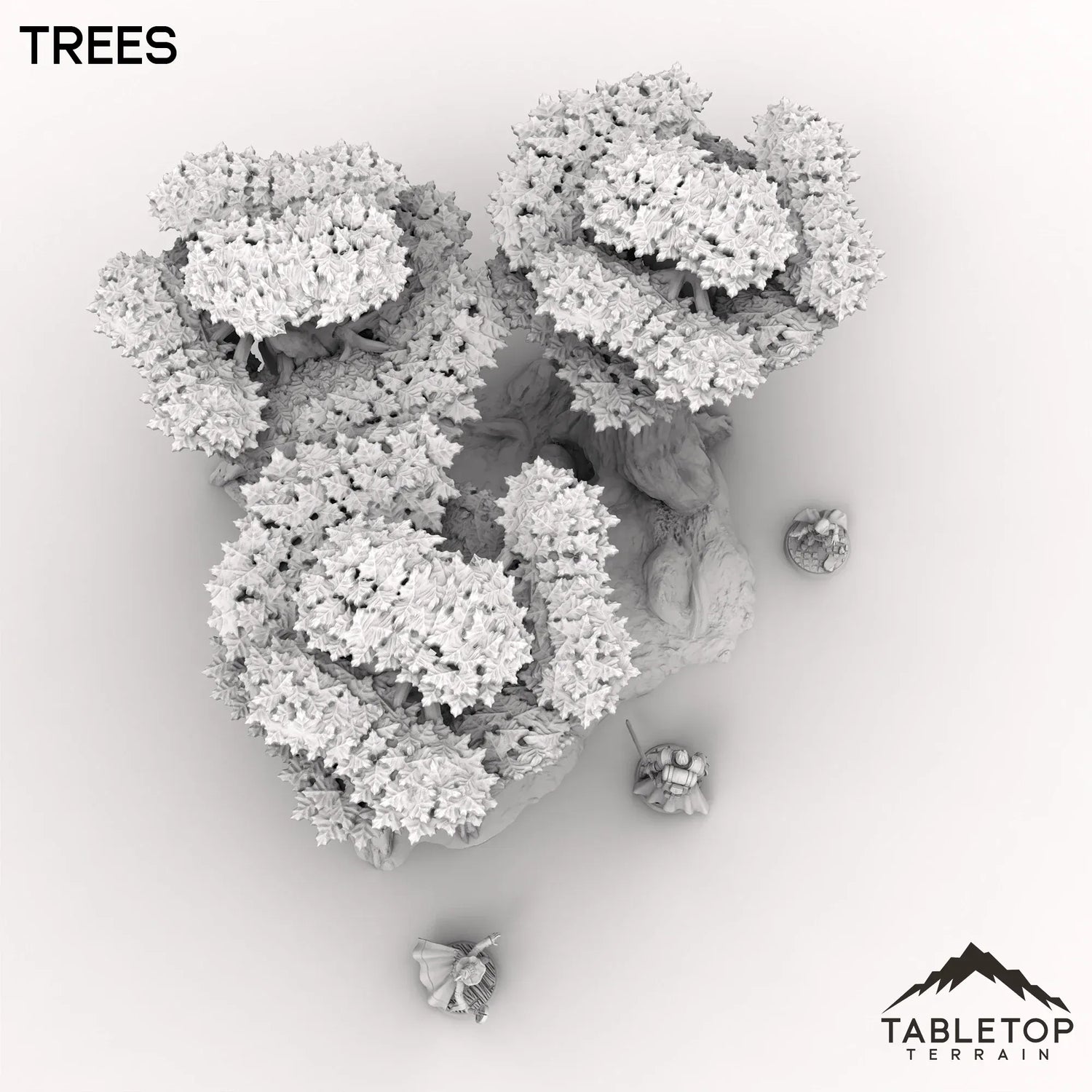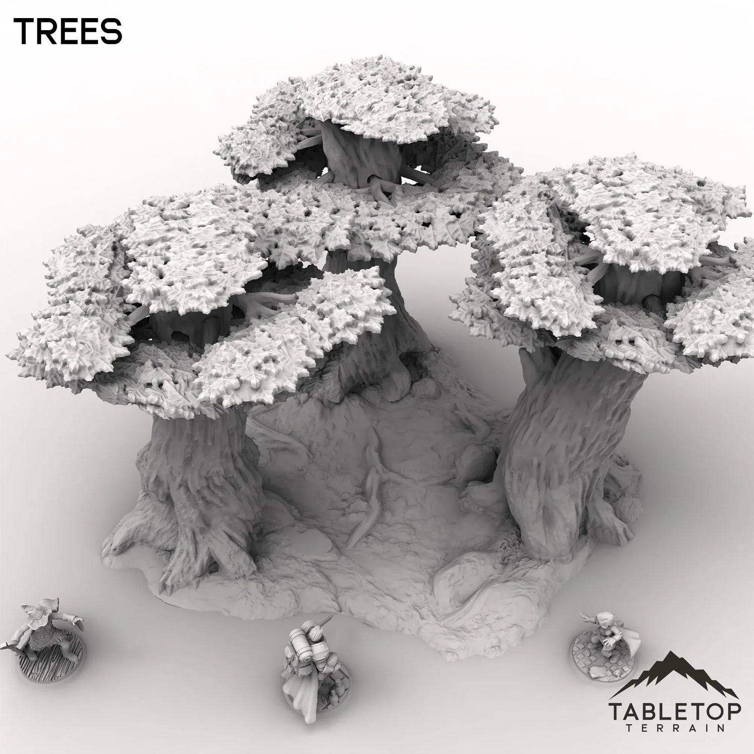 In 28mm scale, the Trees measure 241x248x150mm / 9.5x9.8x5.9 inches