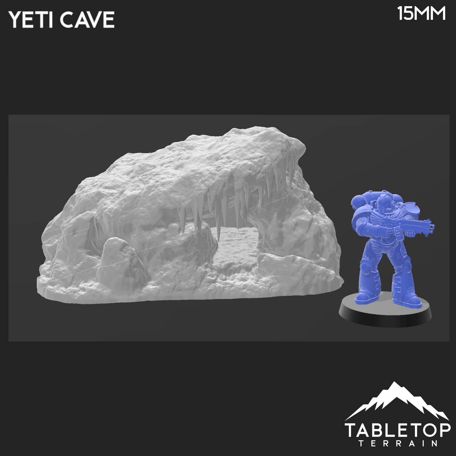 The Yeti Cave is a large cave with interior access with enough space for miniature placement. The roof is removable so it's easy to place miniatures within. It is available in 32mm, 28mm, 20mm, and 15mm scales.