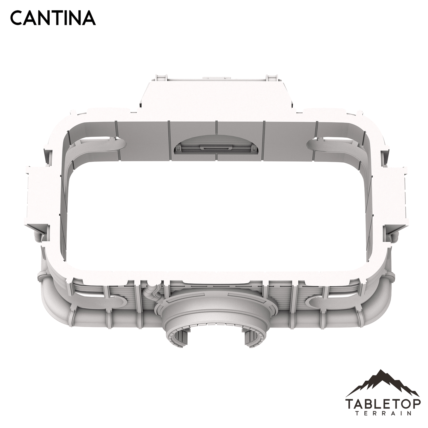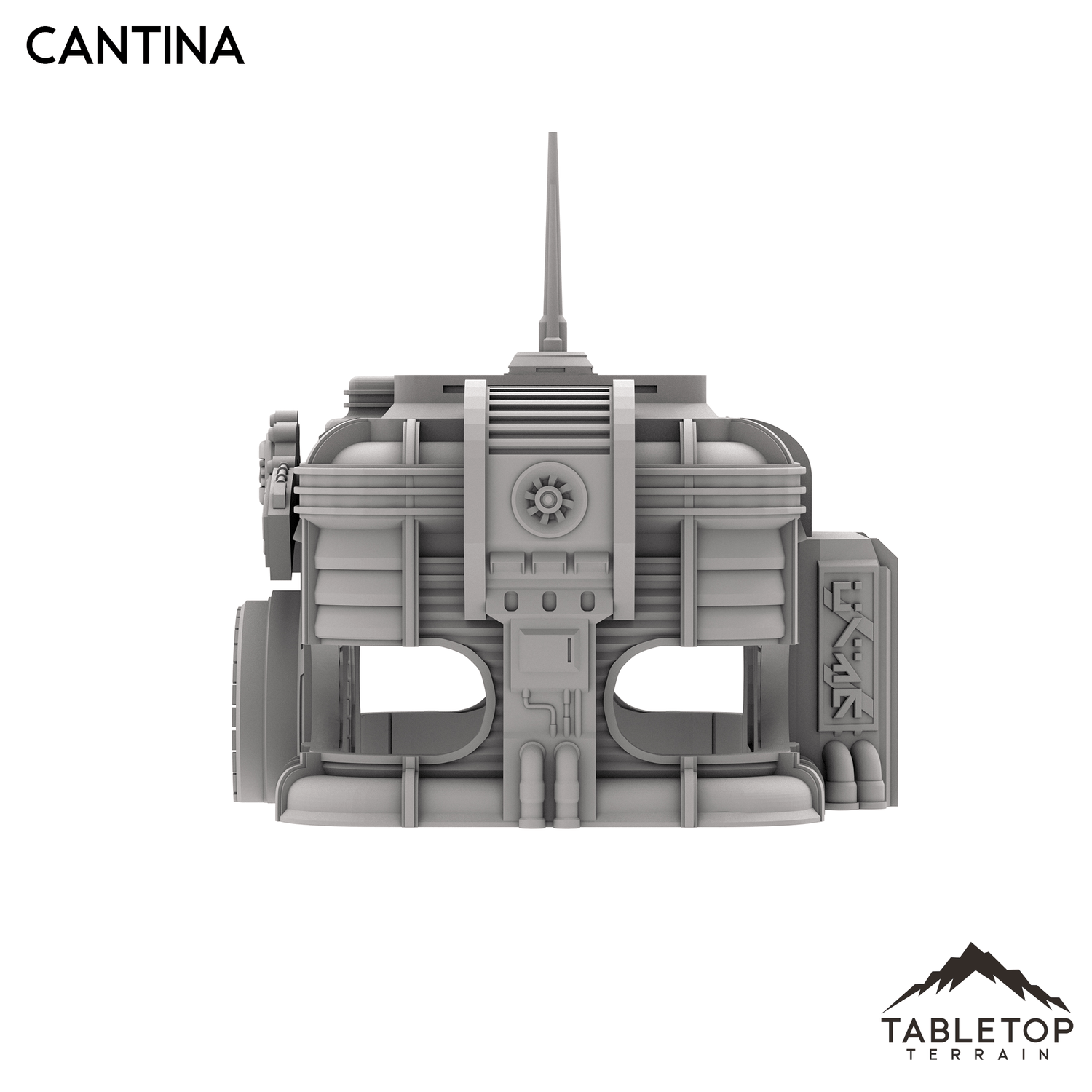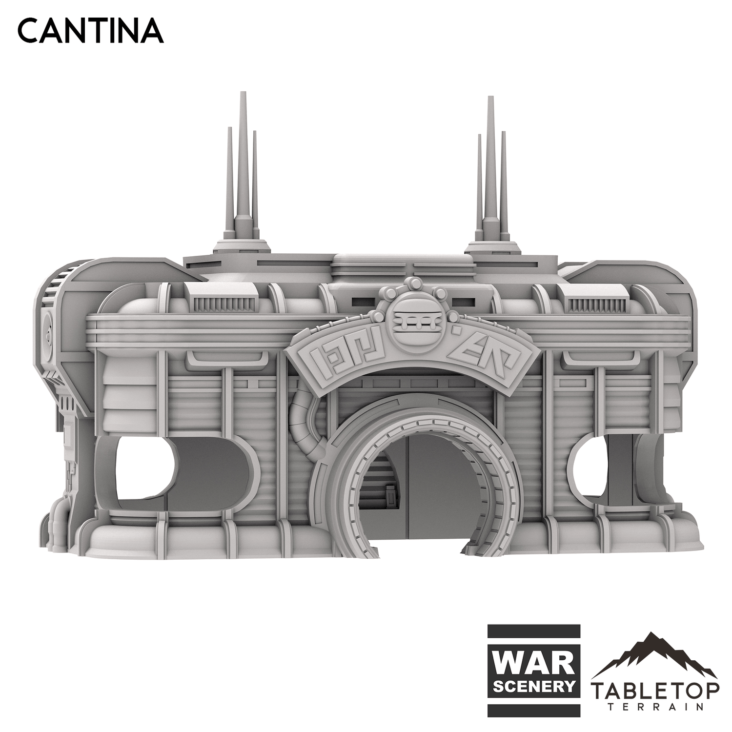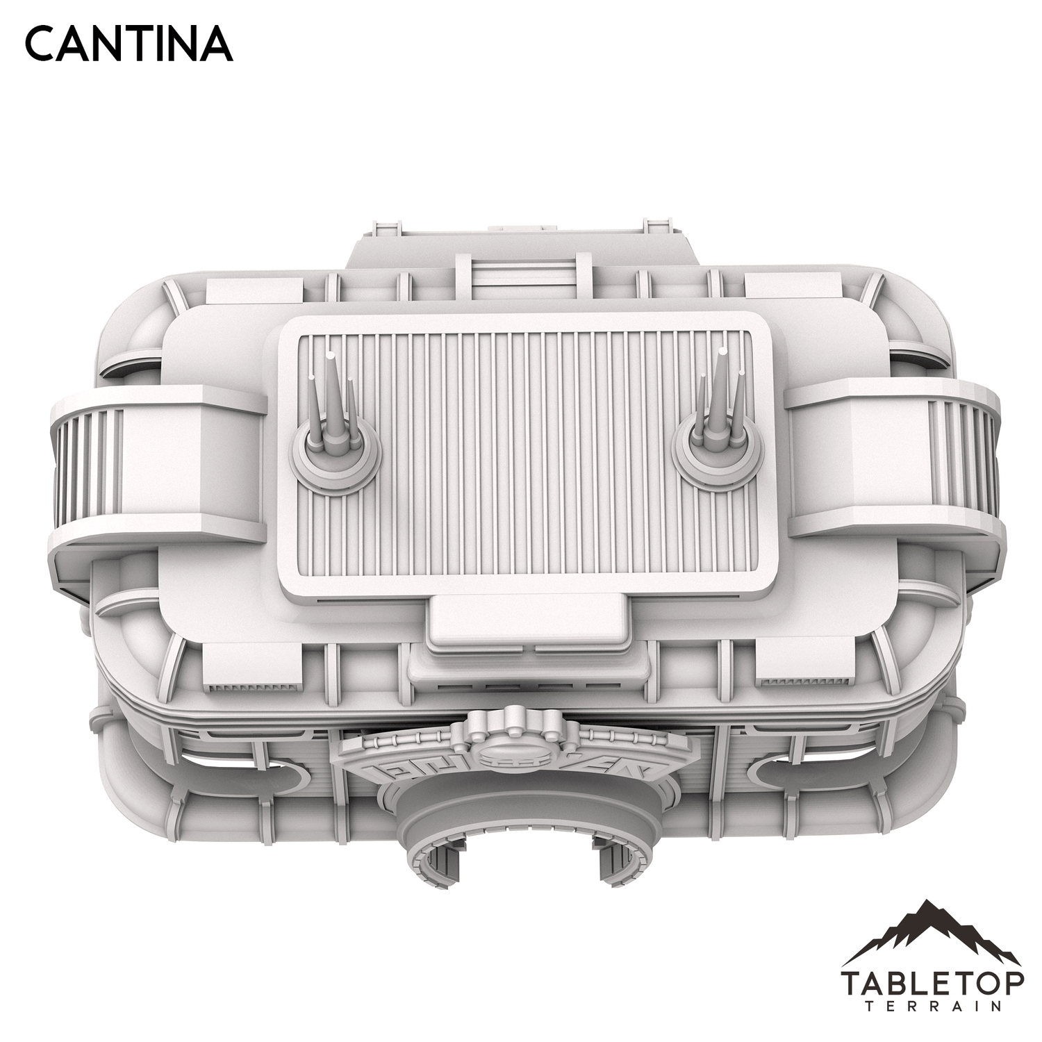 The Cantina is a smaller single-story building with an open entrance and large curved windows to see into the building. The inside is sized to allow for a handful of minis at any given time, and is designed to fit with other buildings and scatter from the sci-fi collections. The Cantina is made for sci-fi tabletop games, but could work with any genre.