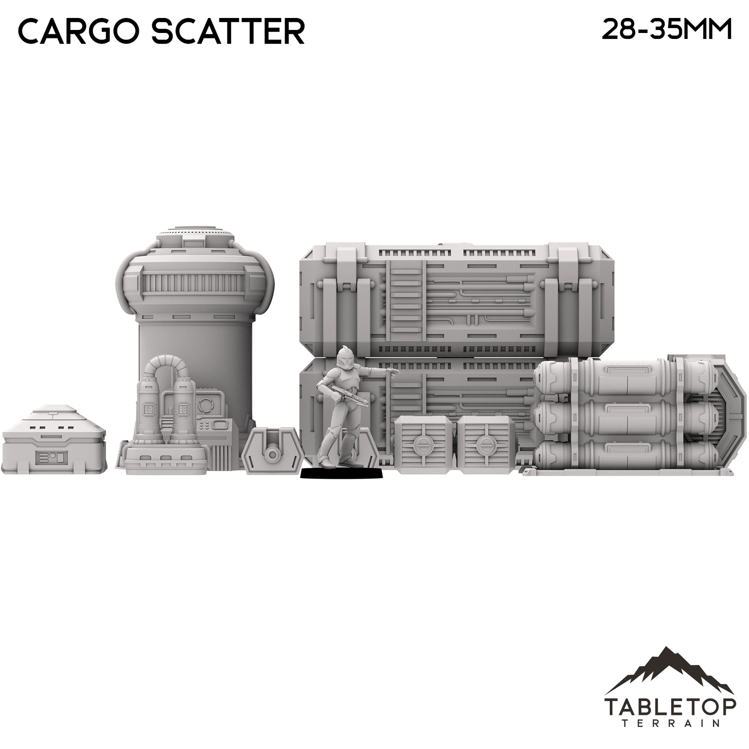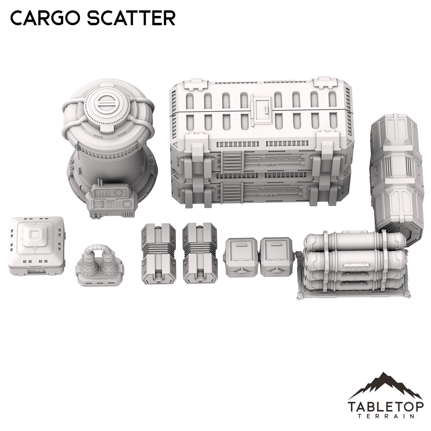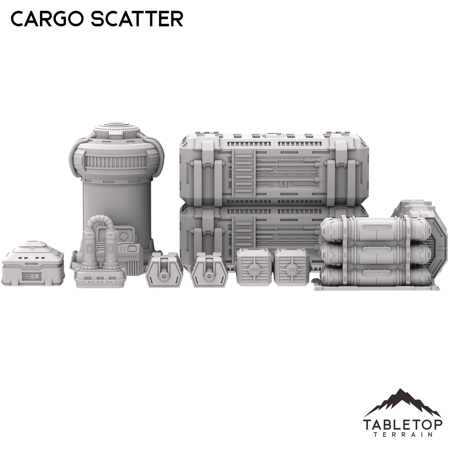 The City Cargo Scatter is a collection meant to flesh out a larger sci-fi city tabletop. The set includes 11 items: two large crates, large oval crate, gas canisters, 4 small crates, special delivery crate, pyramid crate, and healing tank. The City Cargo Scatter is made for sci-fi tabletop games, but could work with any genre.