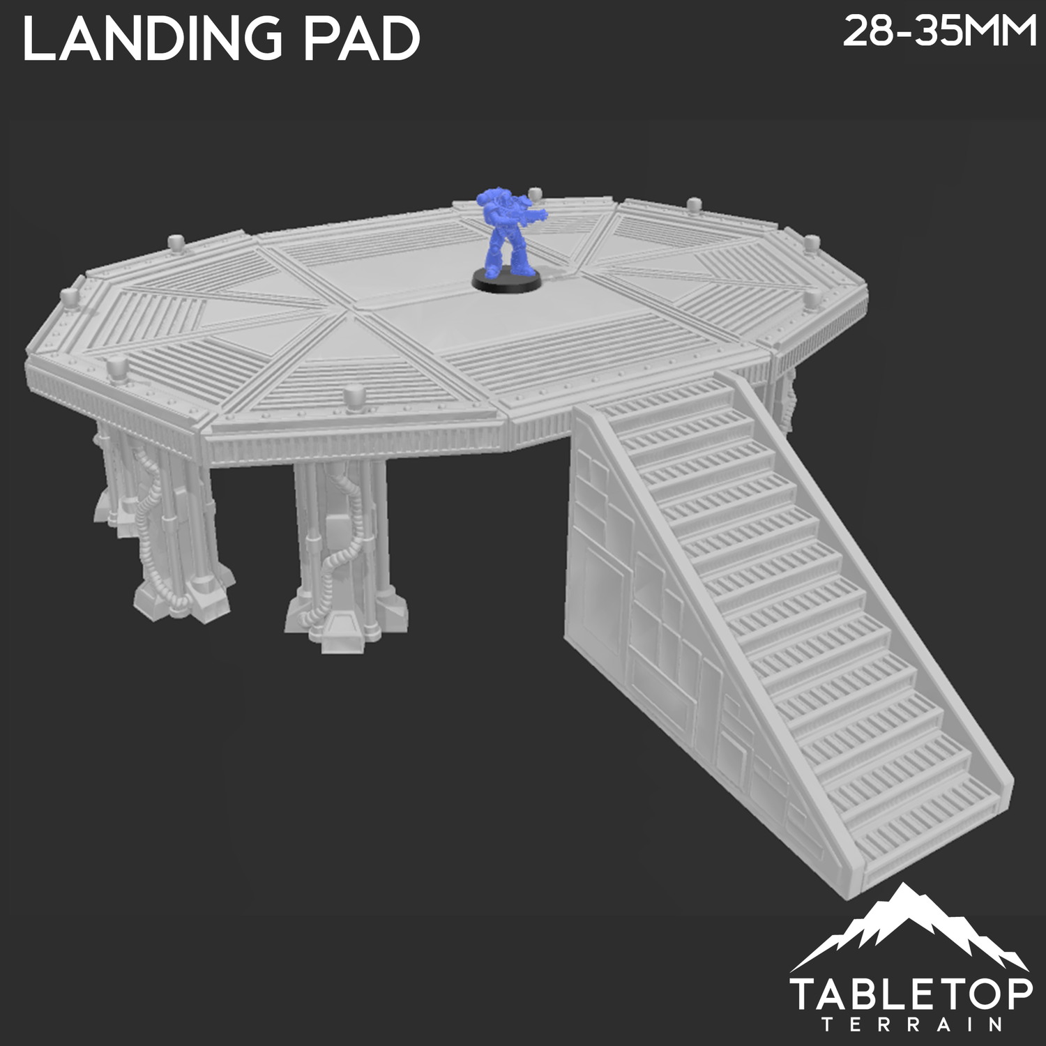In 28-35mm scale, the Landing Pad measures 230x331x92mm / 9.1x13.0x3.6 inches.