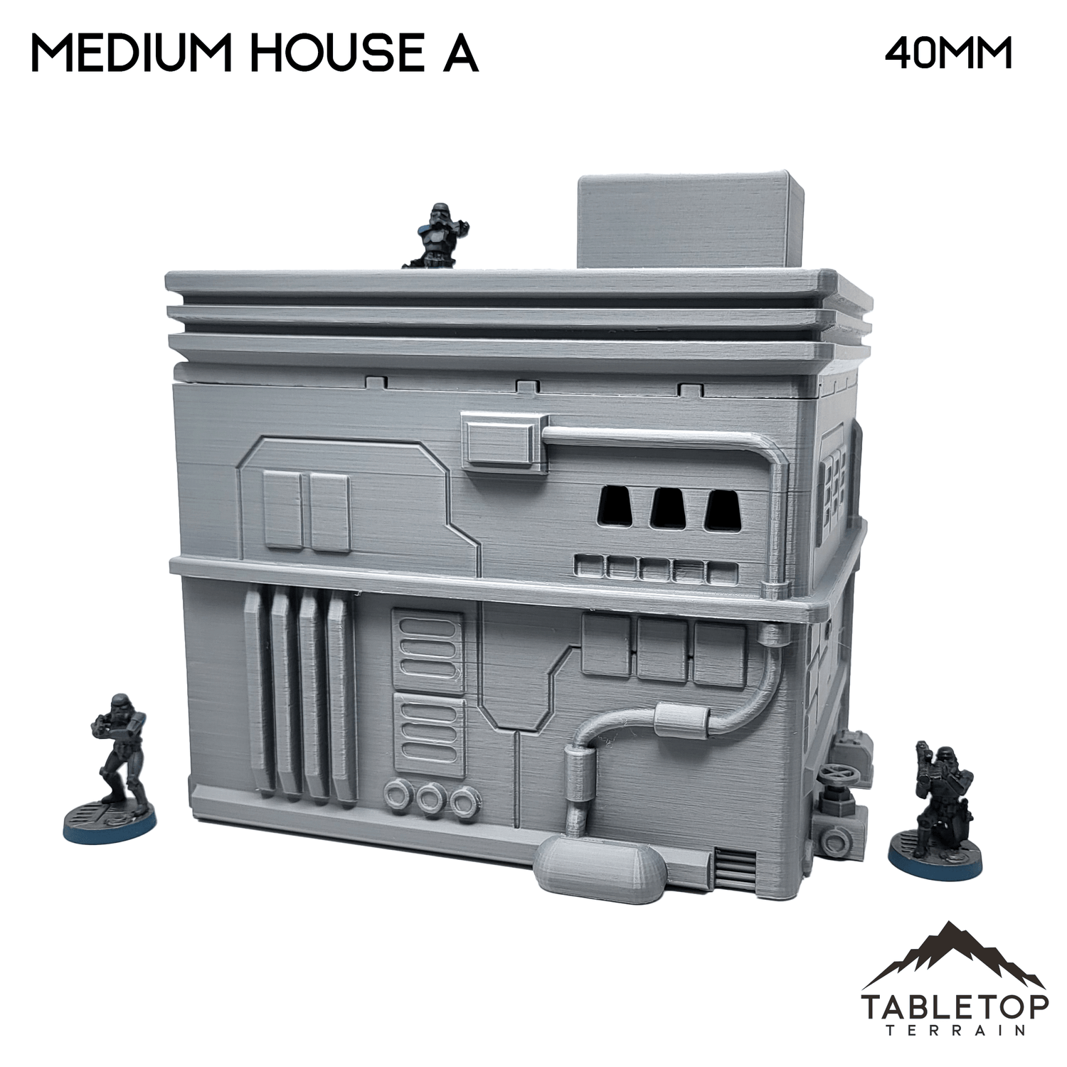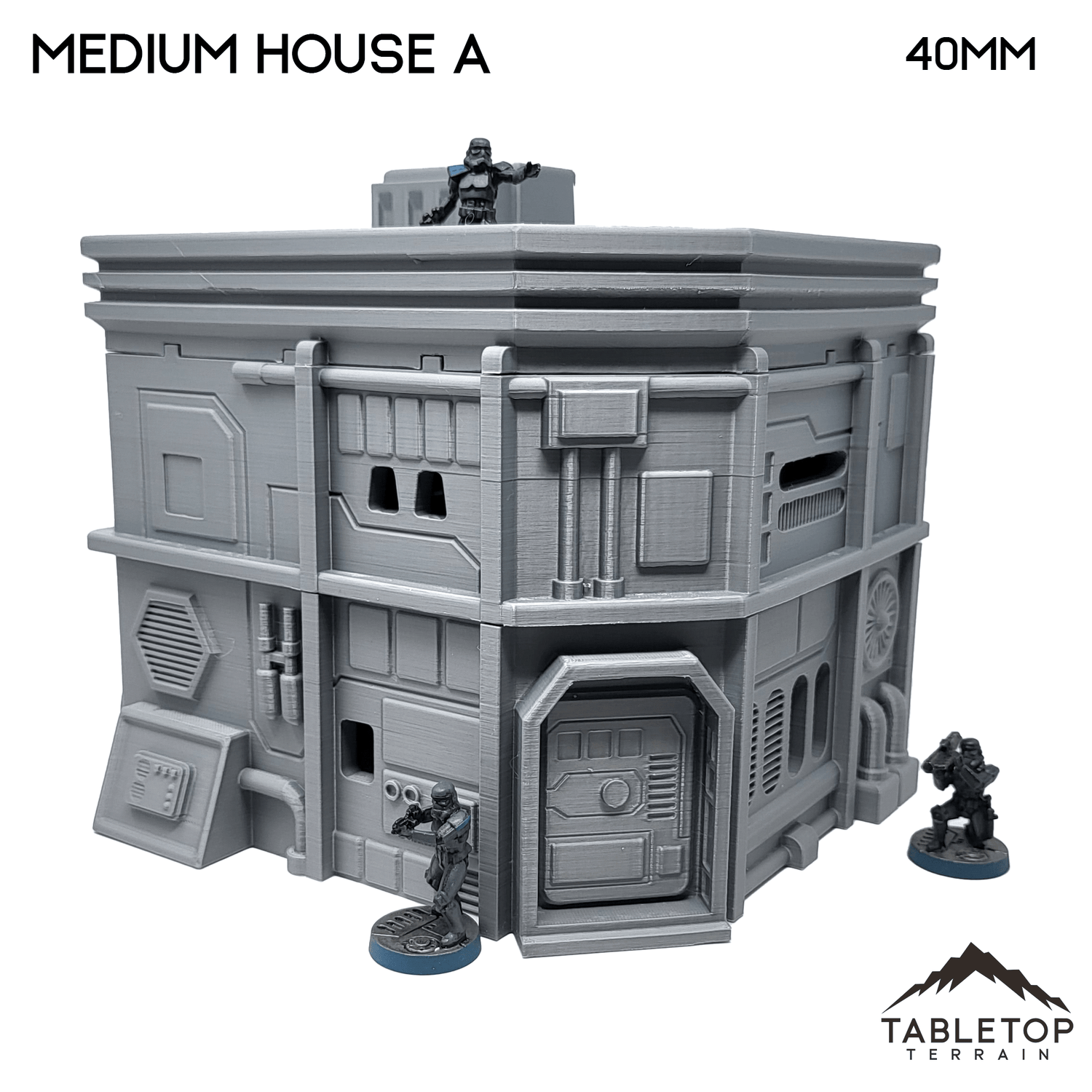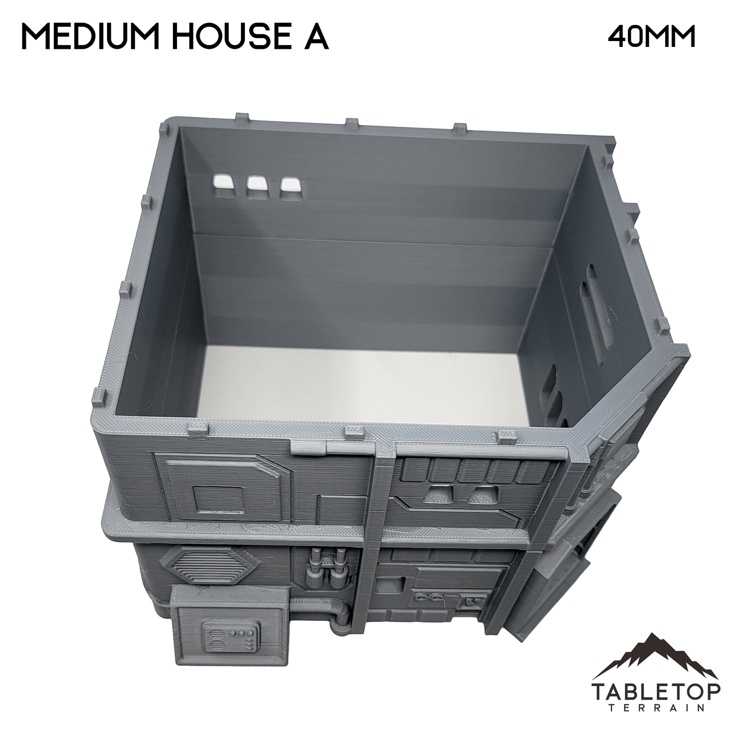 The Midrim City Medium House A is hollow on the inside, and minis cannot be placed inside except at ground level. It would work perfectly for Star Wars Legion, Shatterpoint, or other Sci-Fi games. The house is printed in 40mm, 28-35mm (1:47), 20mm, and 15mm scale with other scales available by request. The 40mm scale is recommend for Shatterpoint and the 28-35mm scale for Legion.