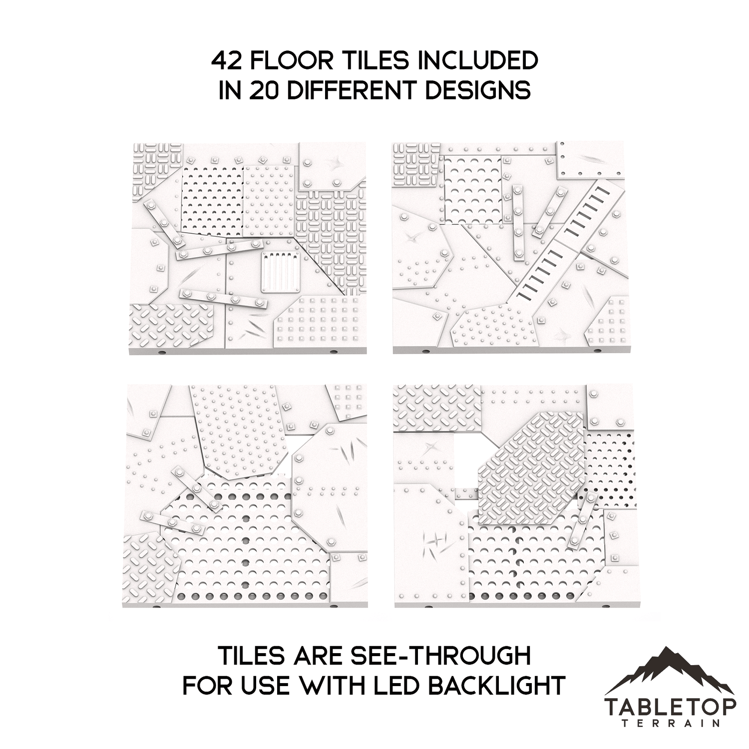 Floor Set adds- 42 Floor tiles, 26 Floor Border Tiles, 56 Floor Risers for underneath LED lighting.