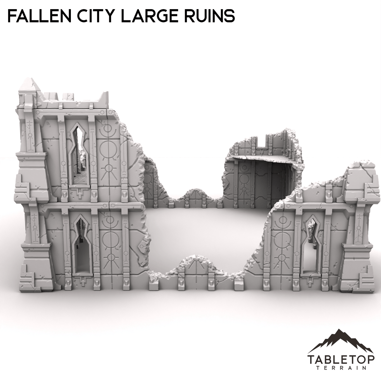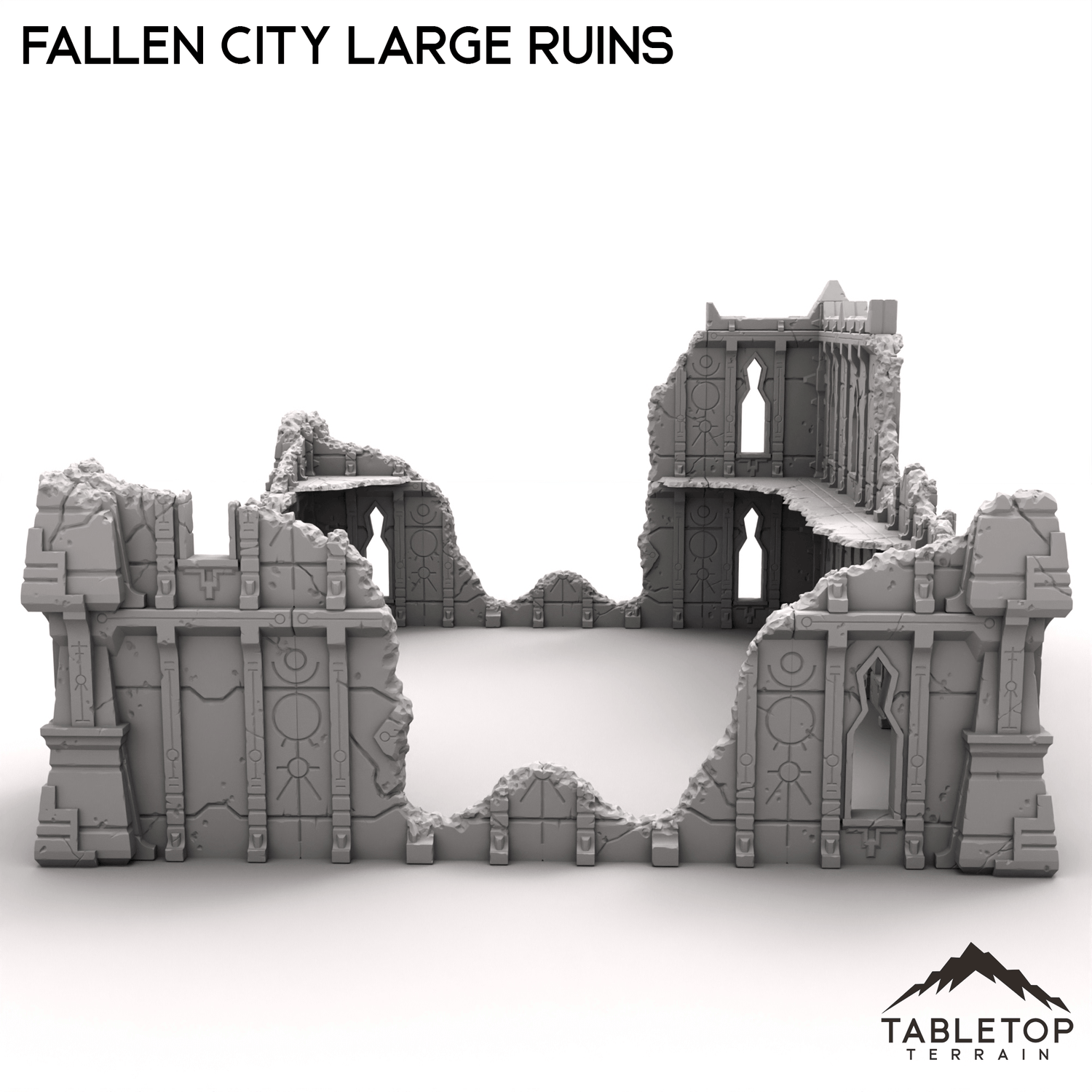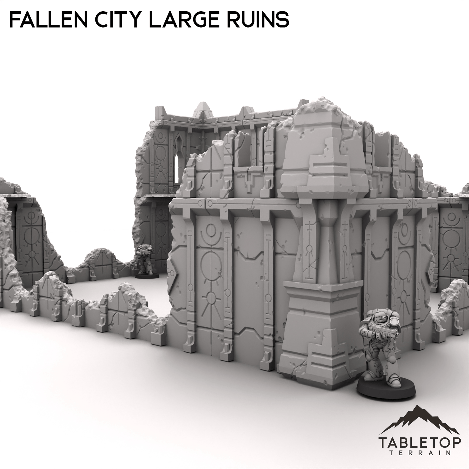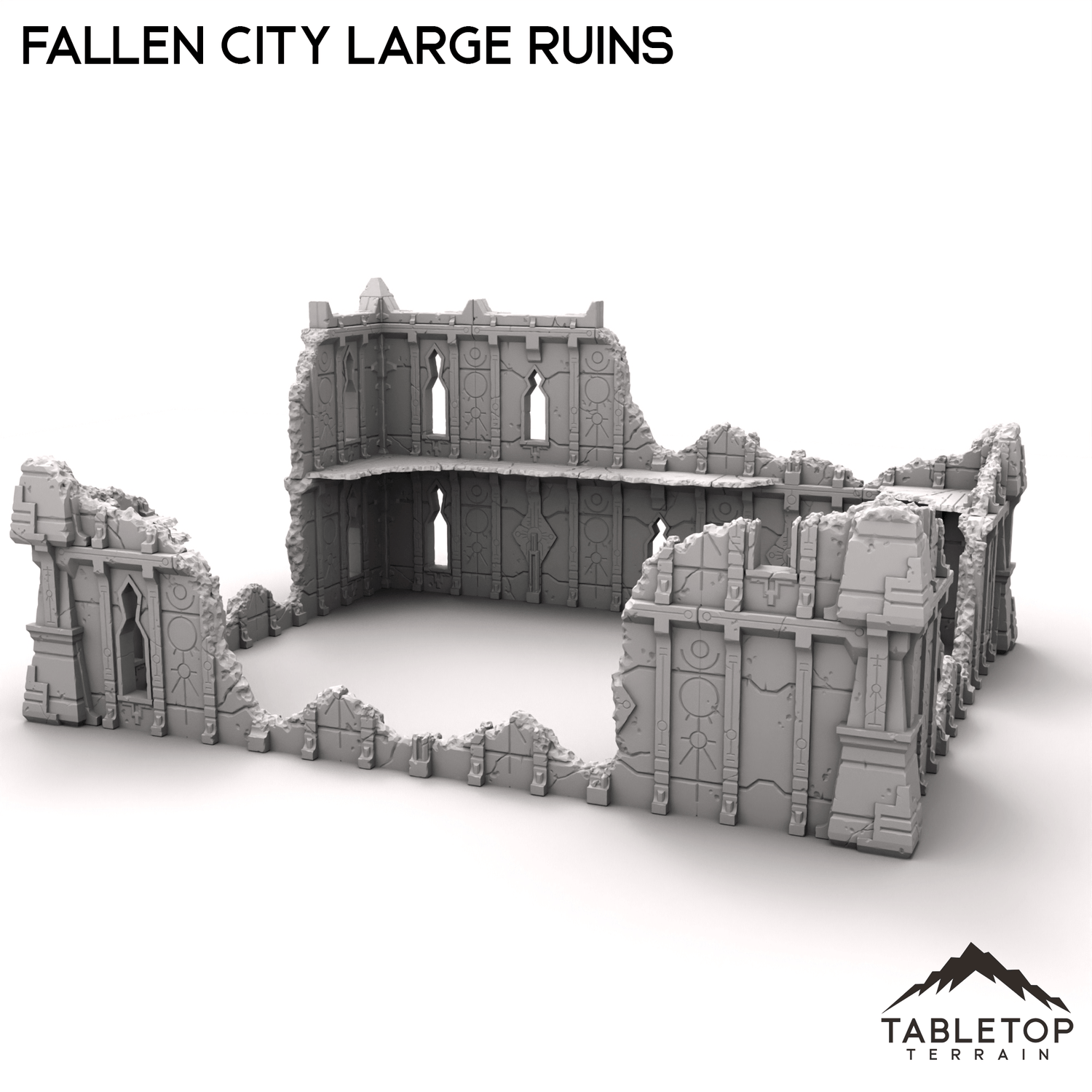 This piece features a two-floor ruined building with four corners and fallen walls providing plenty of cover for units.