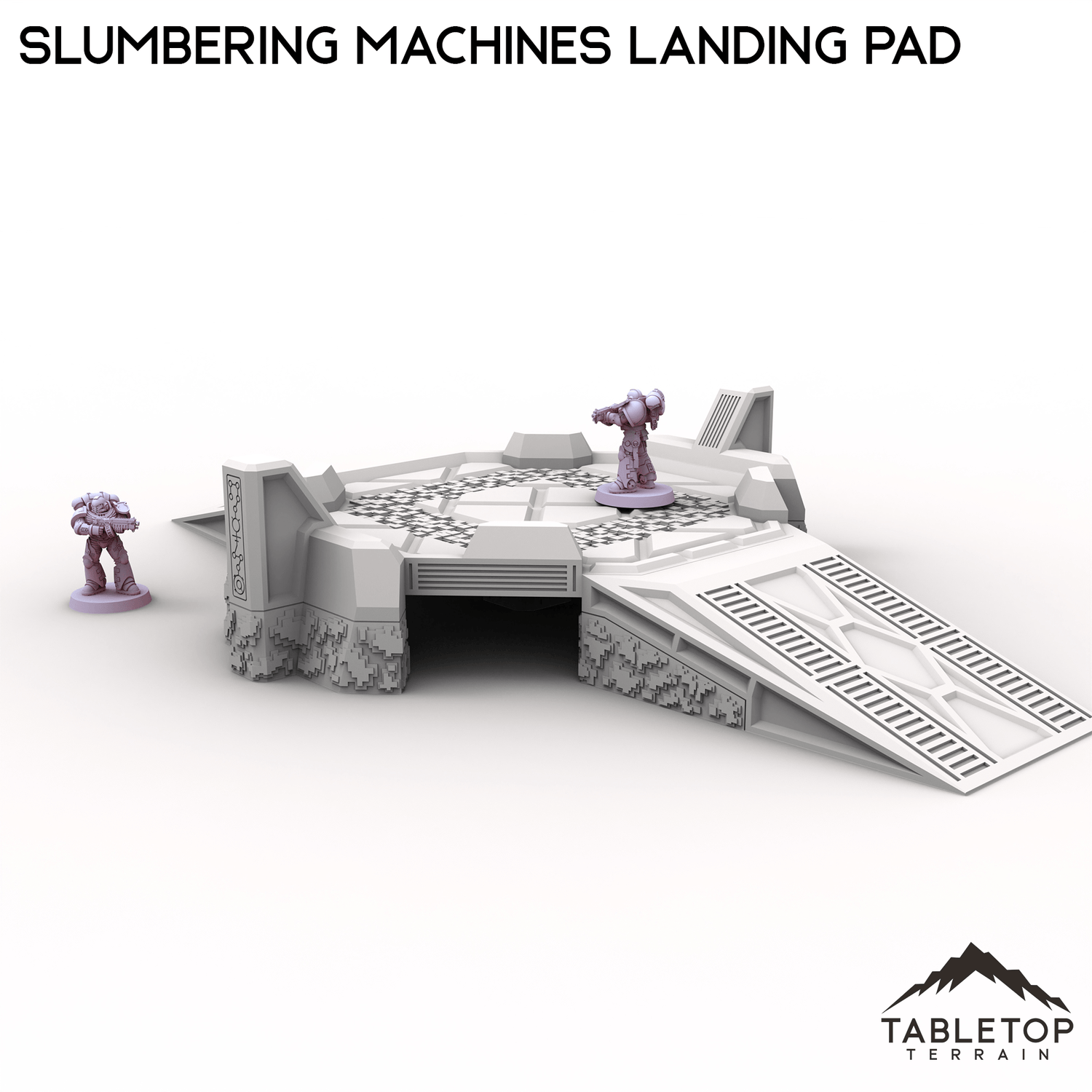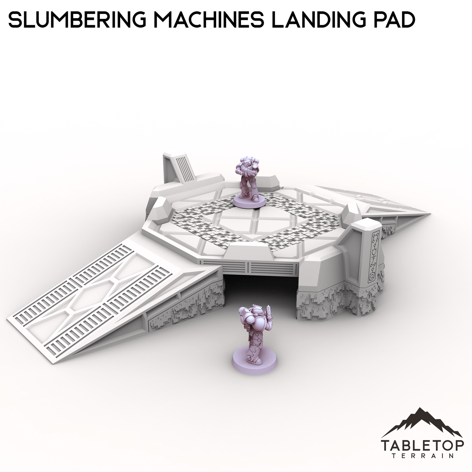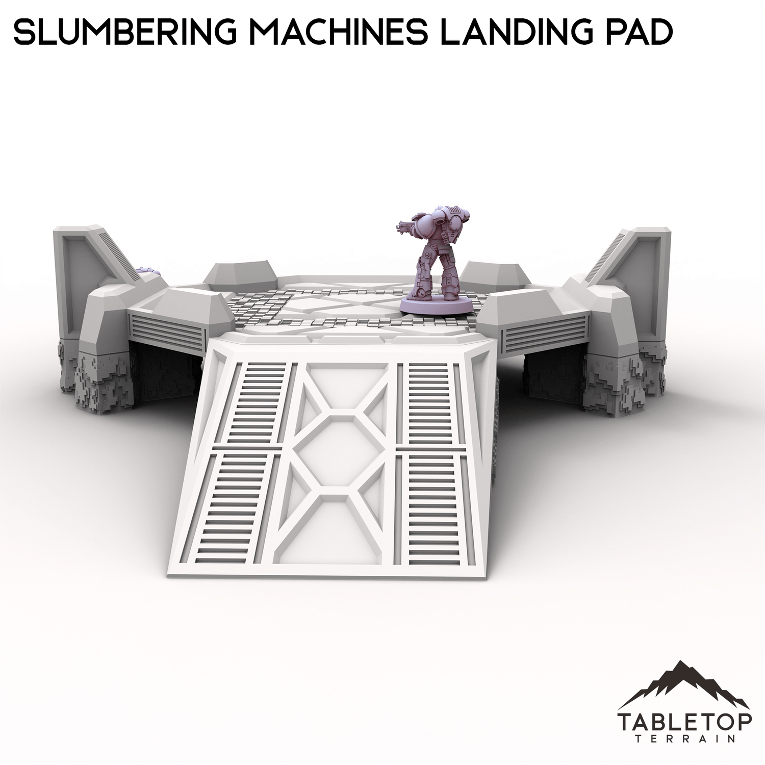 The Slumbering Machines Landing Pad is a set of xenos terrain. The Pad is put together with OpenLOCK clips so it can be disassembled when not being used. It is designed for sci-fi wargames.