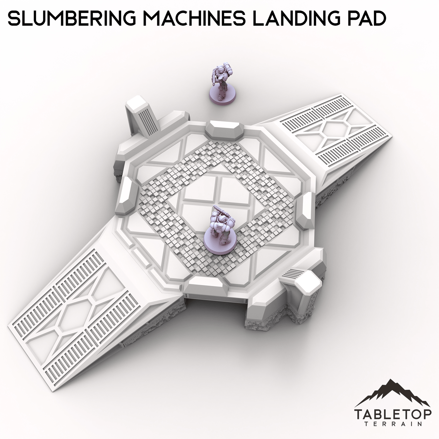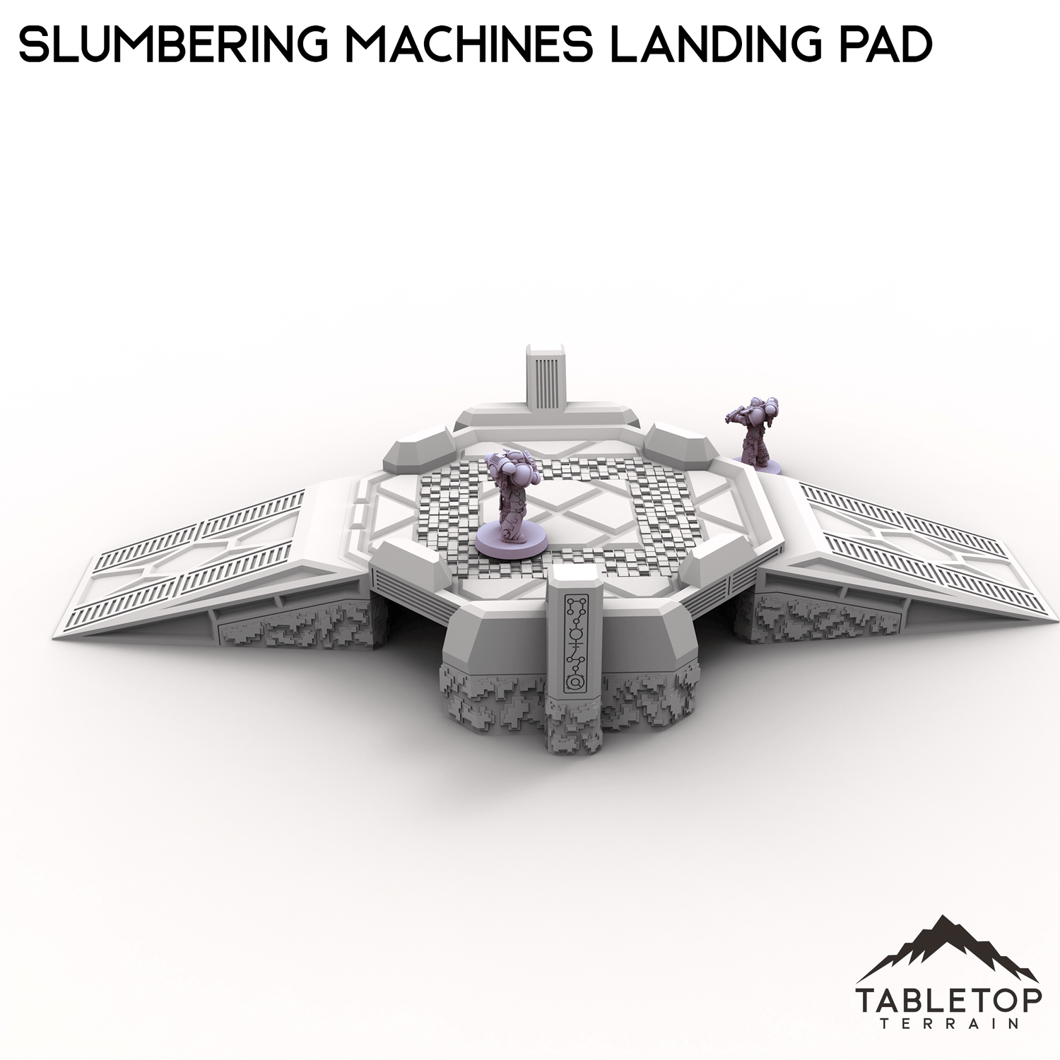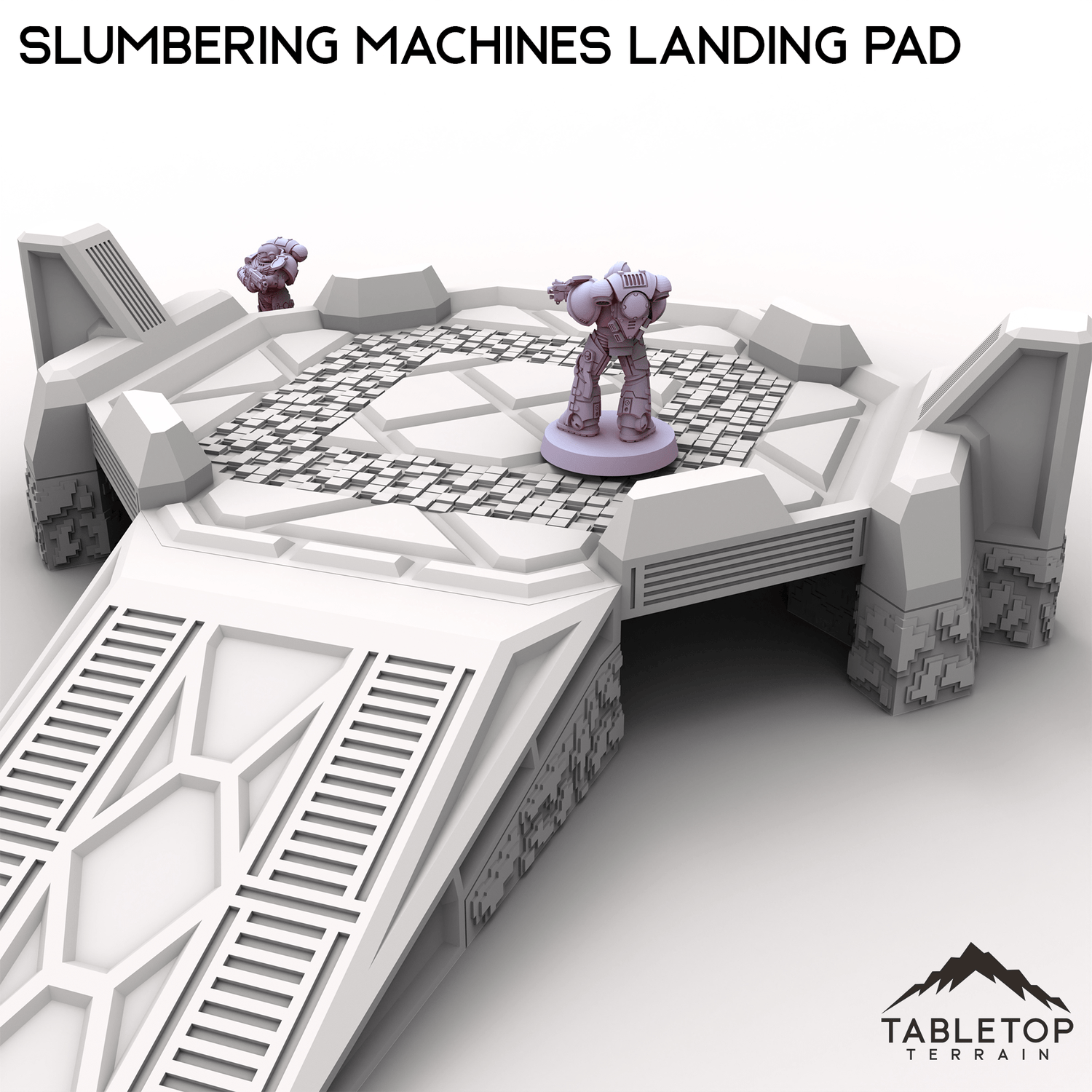 The Slumbering Machines Landing Pad is a set of xenos terrain. The Pad is put together with OpenLOCK clips so it can be disassembled when not being used. It is designed for sci-fi wargames.