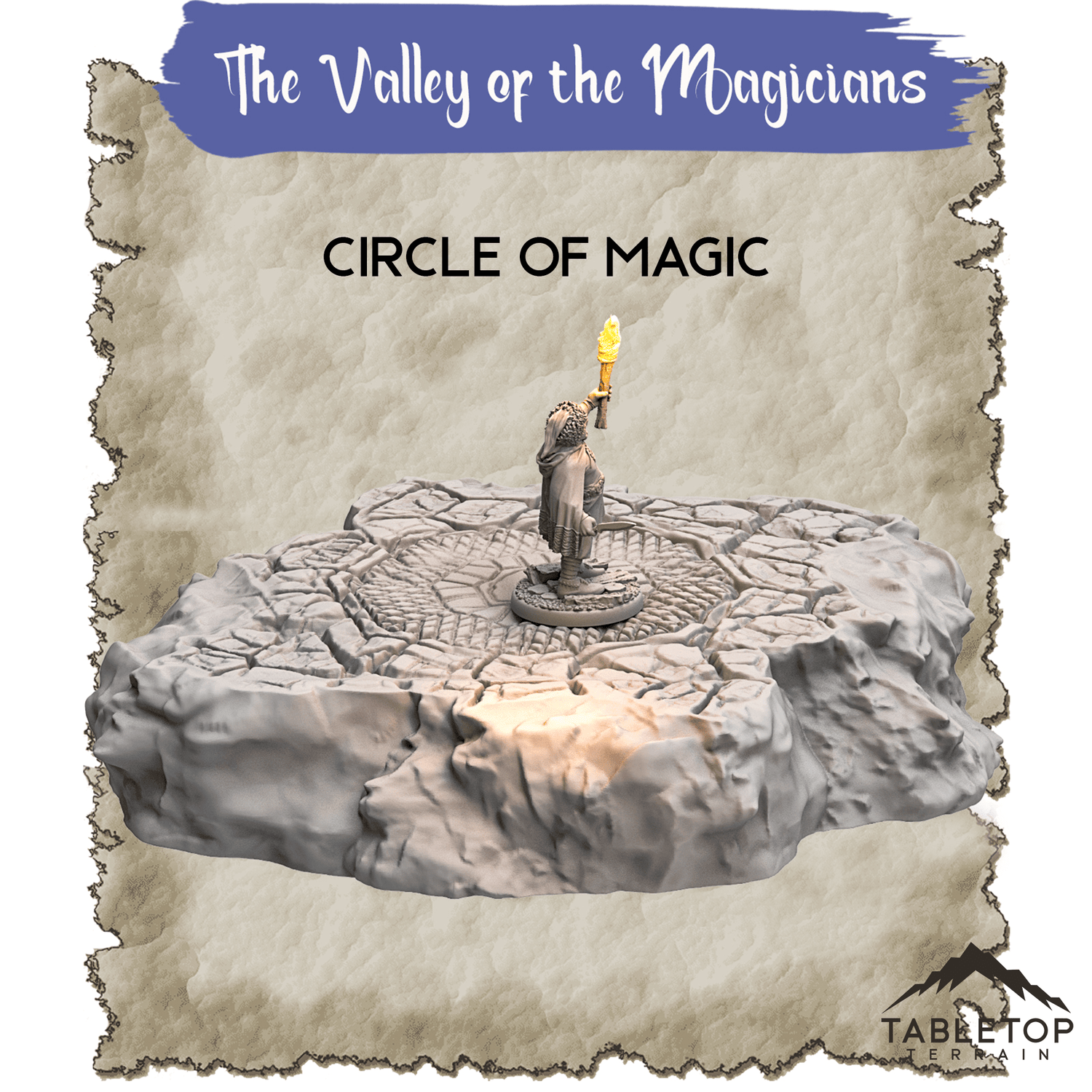 The Valley of Magicians is a set of thematic dungeon terrain. Comprised of multiple pieces, you can create a full dungeon experience from this set. It combines fantasy and science fiction details, making it great for either genre.