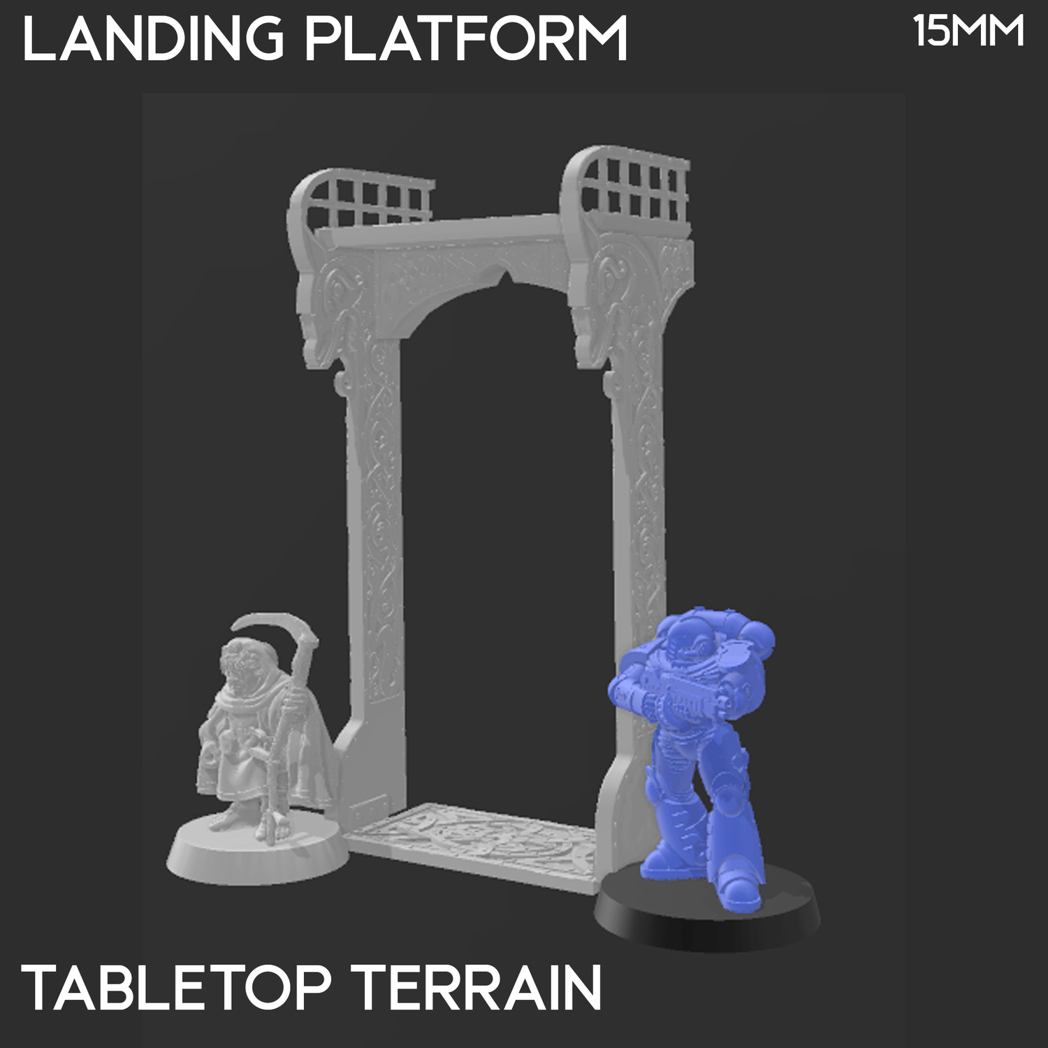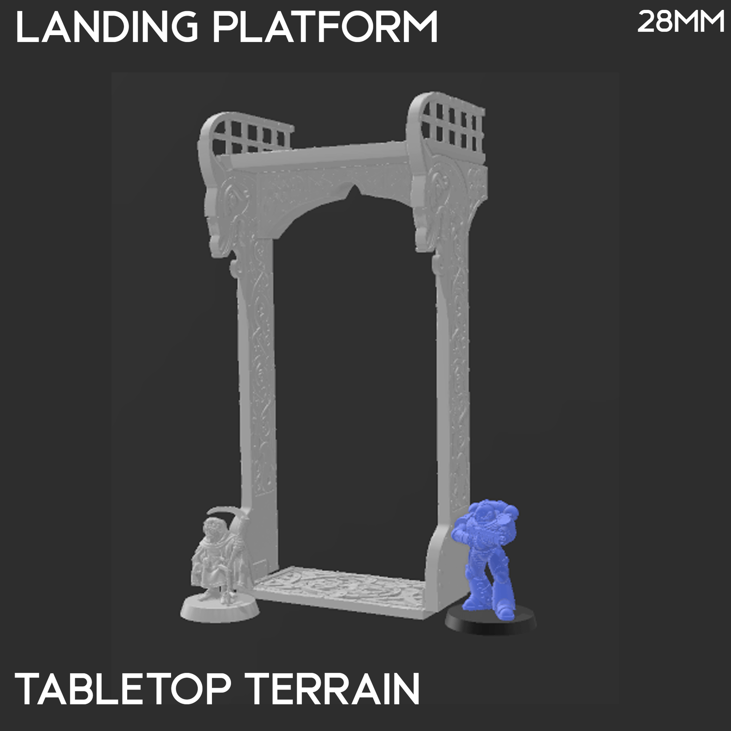The Landing Platform lines up with the balconies of the Barrel Rider Barracks. It is designed to be part of the fantasy universe Reign of Arcane. It is 3D printed in 32mm, 28mm or 15mm scale in .2mm resolution.