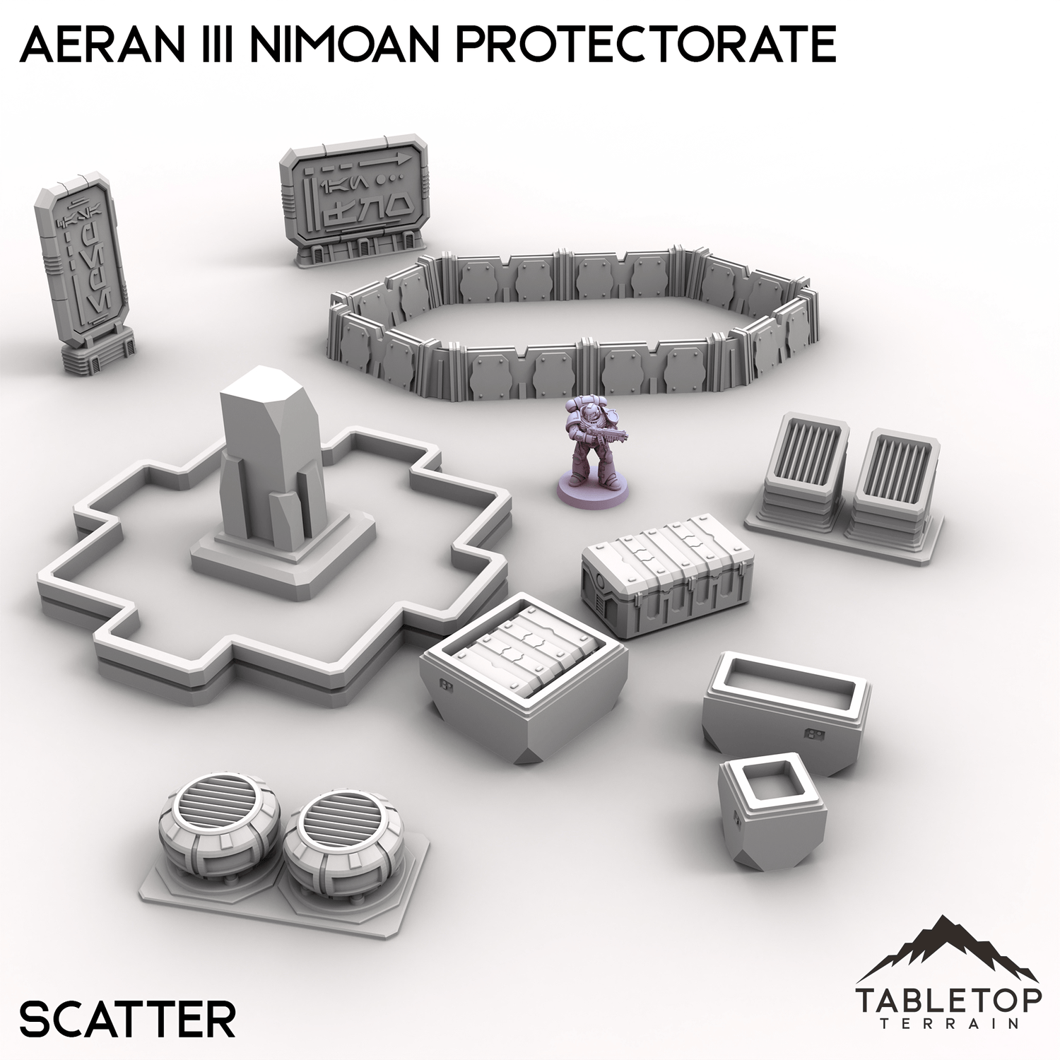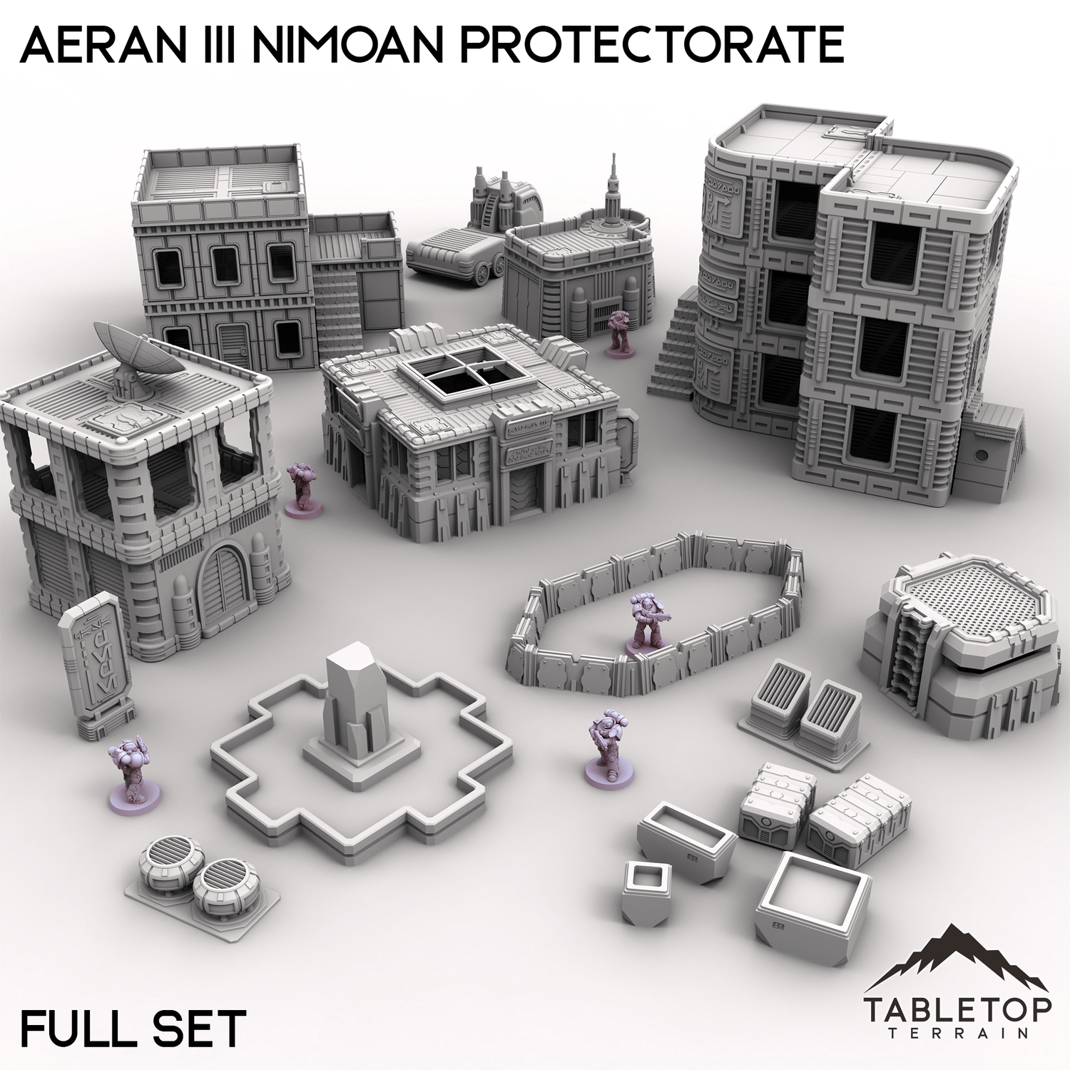 The Aeran III collection features industrial style structures such as multi-level hab blocks and guard post. A fun collection of scatter terrain works will with the rest of the set or other sci fi/industrial settings. Buy each set individually or the whole collection at a discount.