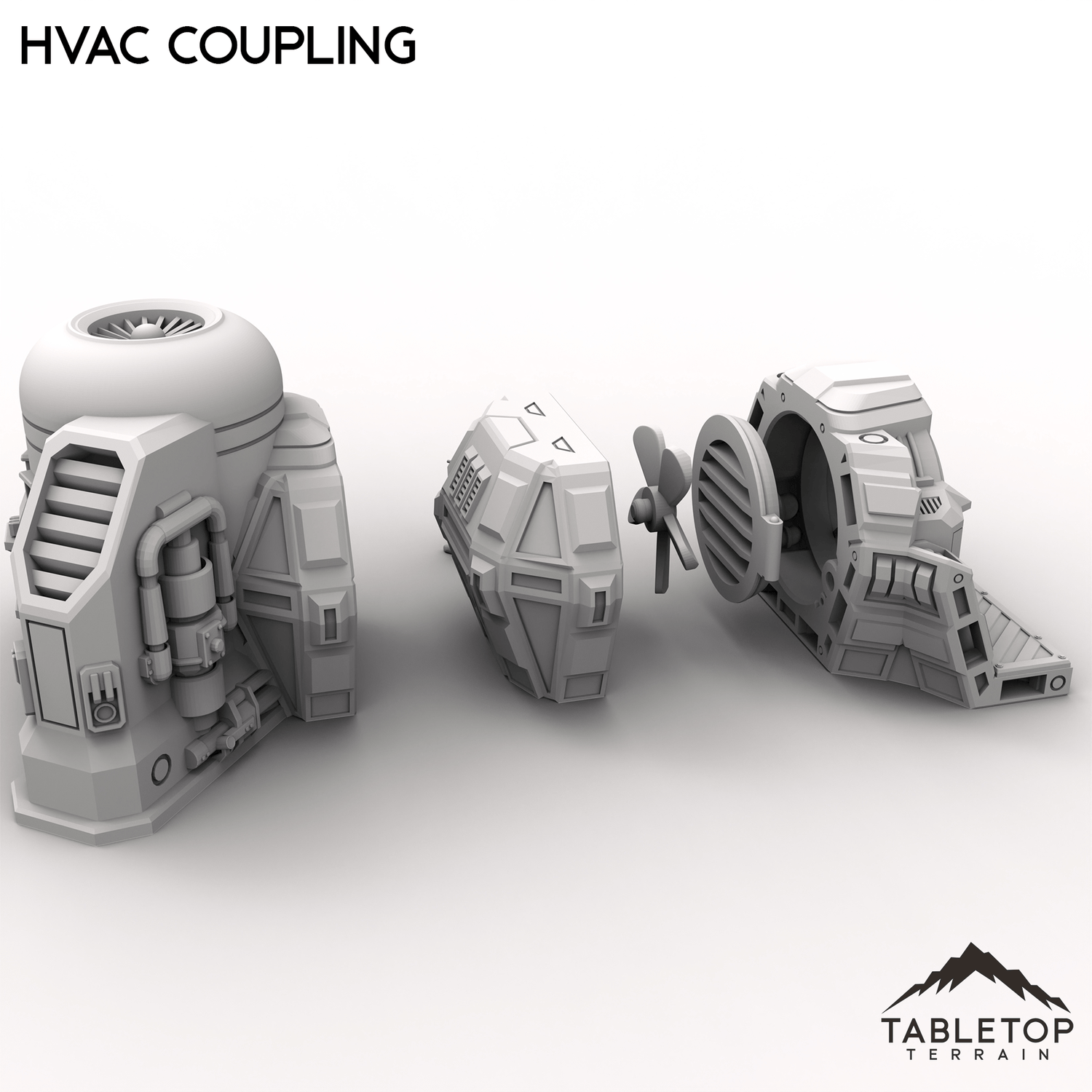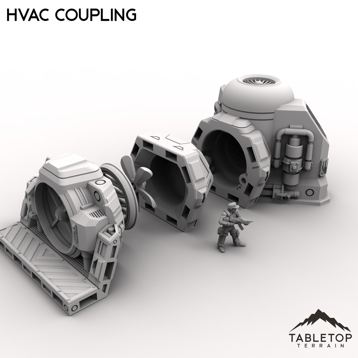1 HVAC Coupling set in 28/32mm scale. 4 pieces + included clips for assembly.