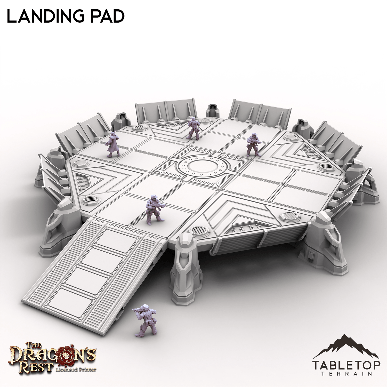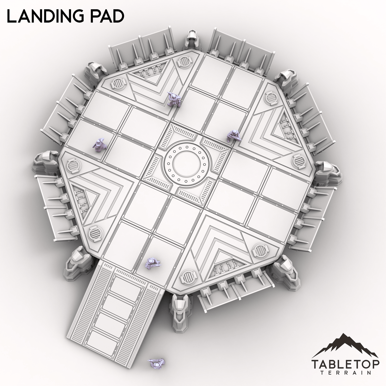 This Landing Pad is perfect for any sci-fi tabletop setup. With reinforced edges, panel detailing, and built-in access ramps, it’s ready to support everything from supply drops to shuttle landings. Raised side panels can act as cover for troops in combat scenarios too.