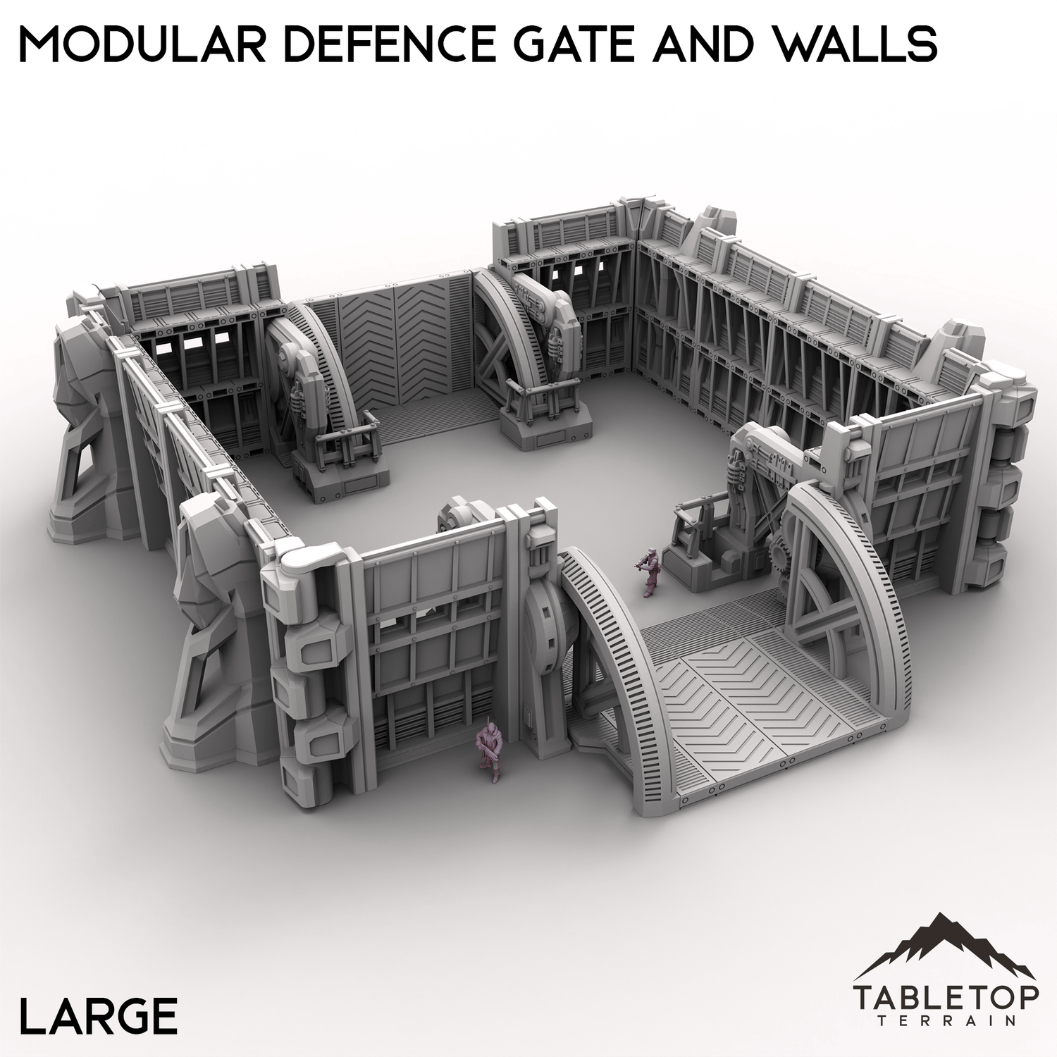 The Modular Defense Gate and Walls set includes a central gate with a working hinge that can be opened or closed mid-game, adding a dynamic element to your tabletop terrain. Flanked by reinforced wall segments with a walkway above that can be accessed by units, this set is perfect for creating fortified entrances or defensive walls. These walls are also modular, specifically able to be mixed-and-matched with other Outpost Origins and The Dragon's Rest sets. An example would be mixing parts from Modular Defense Gate and Walls and Military Corridors to create a complex base for players to explore.