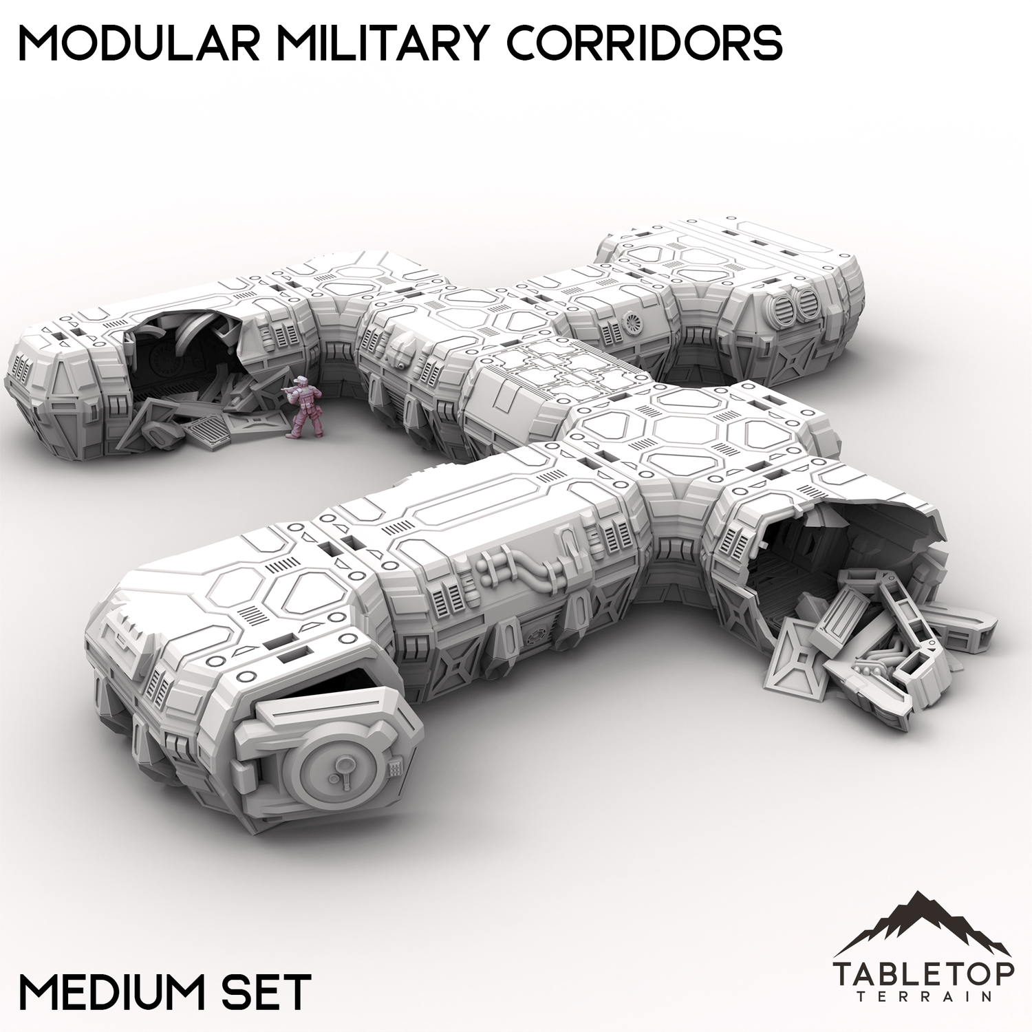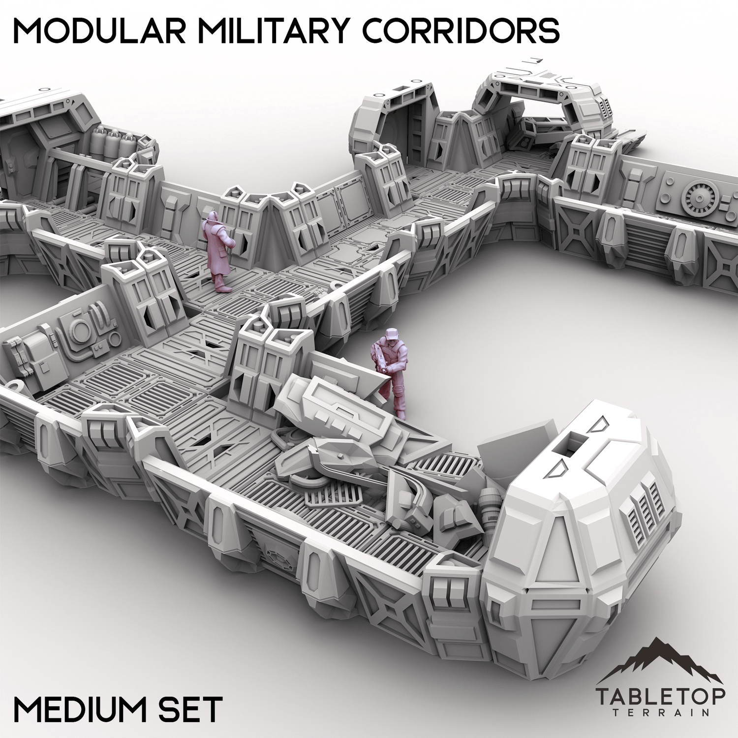1 Small Modular Military Corridors set in 28/32mm scale. 22 pieces + included clips for assembly.