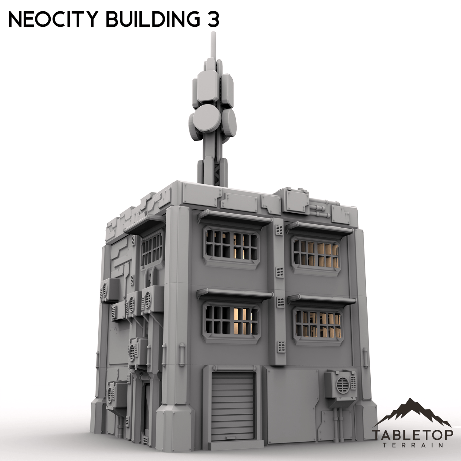 NeoCity Building 3 is a 3-story apartment-style building, with a massive comm tower antenna placed on the rooftop. The antenna itself is able to be placed wherever you'd like. Each floor of the building has ladders and staircases leading between the levels, and the ground floor has large removable garage-style doors.
