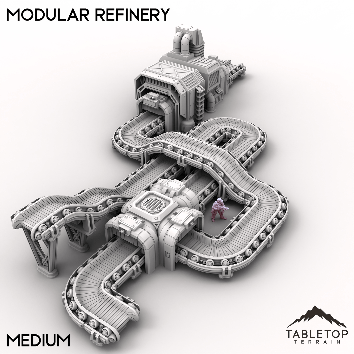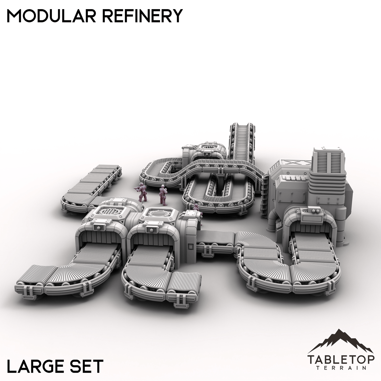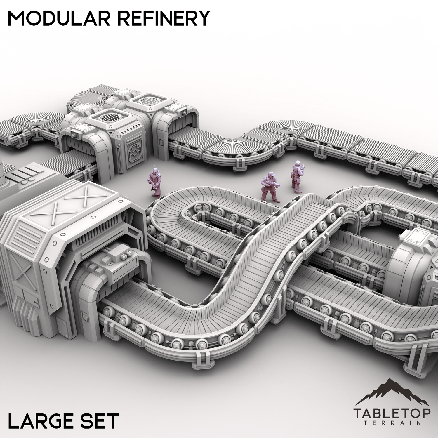 The Modular Refinery set brings industrial sprawl of a refinery system to your tabletop. With twisting conveyor belts, detailed junctions, and a massive central processing unit, it’s perfect for creating dense industrial environments in sci-fi or modern settings. The modular pieces let you build anything from a compact ore processor to a sprawling extraction complex.
