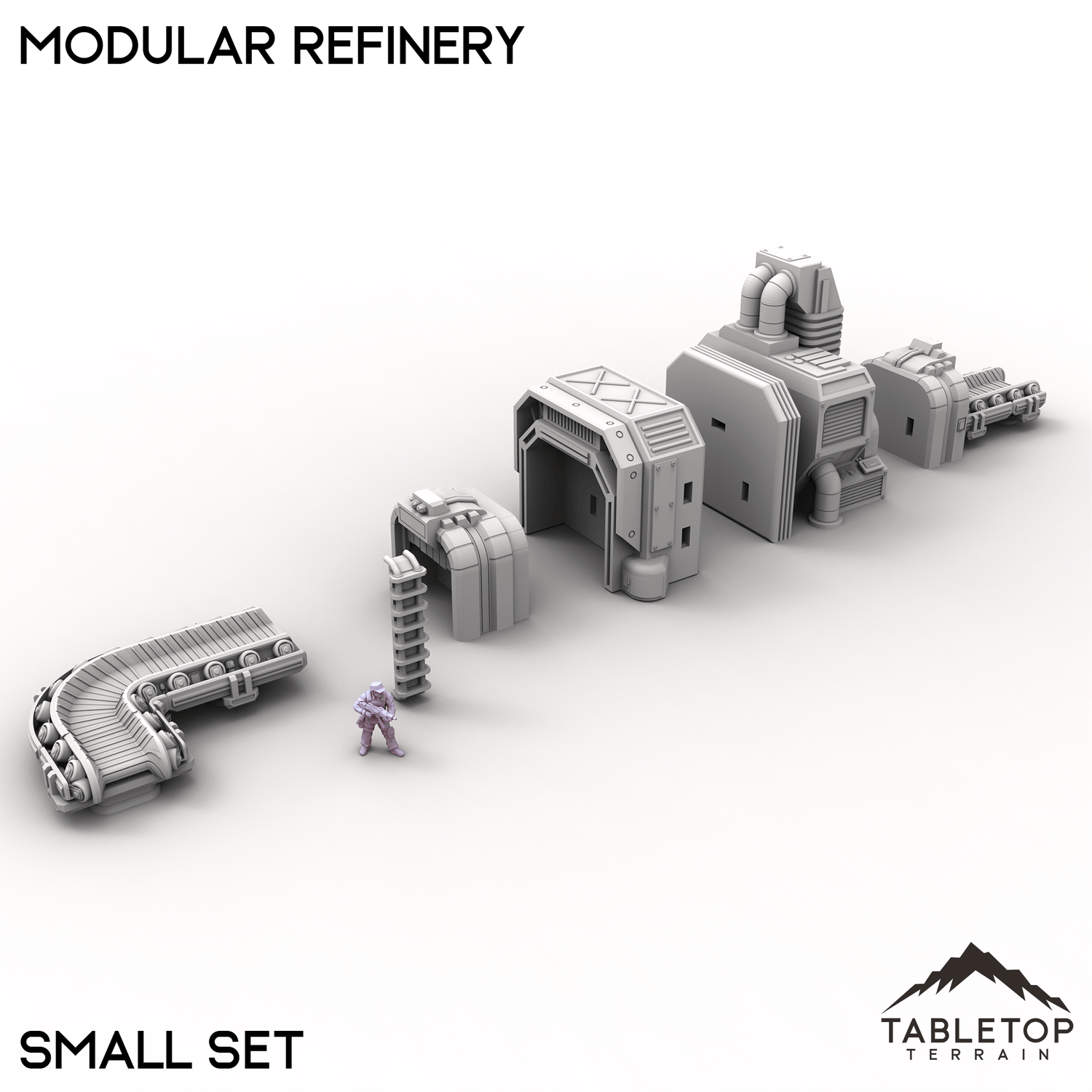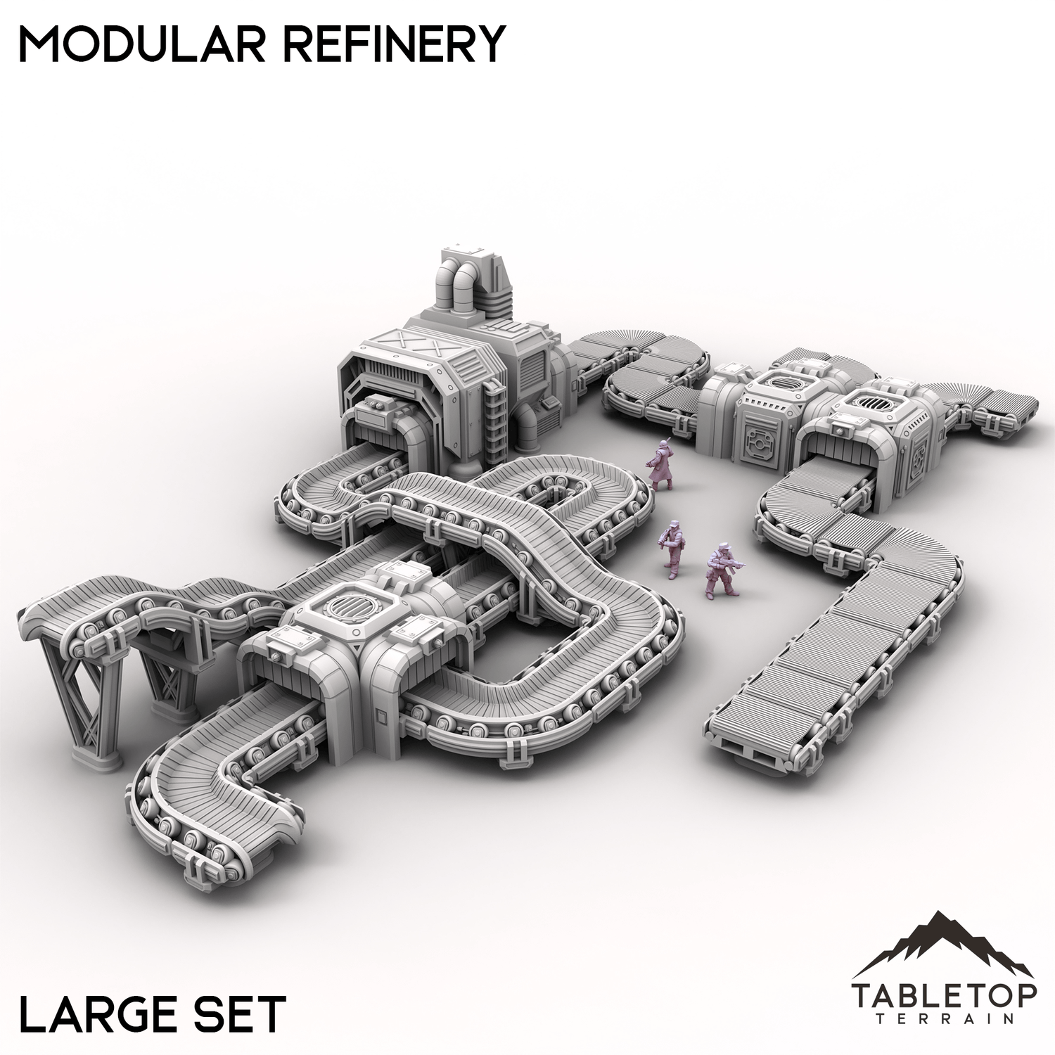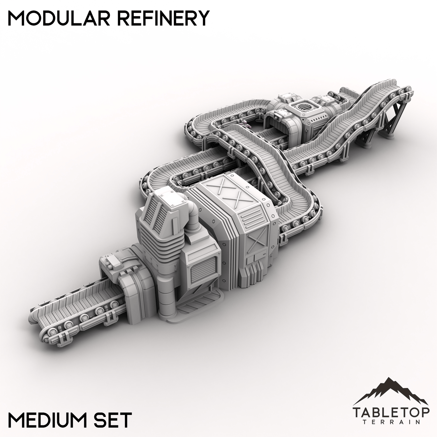 The Modular Refinery set brings industrial sprawl of a refinery system to your tabletop. With twisting conveyor belts, detailed junctions, and a massive central processing unit, it’s perfect for creating dense industrial environments in sci-fi or modern settings. The modular pieces let you build anything from a compact ore processor to a sprawling extraction complex.