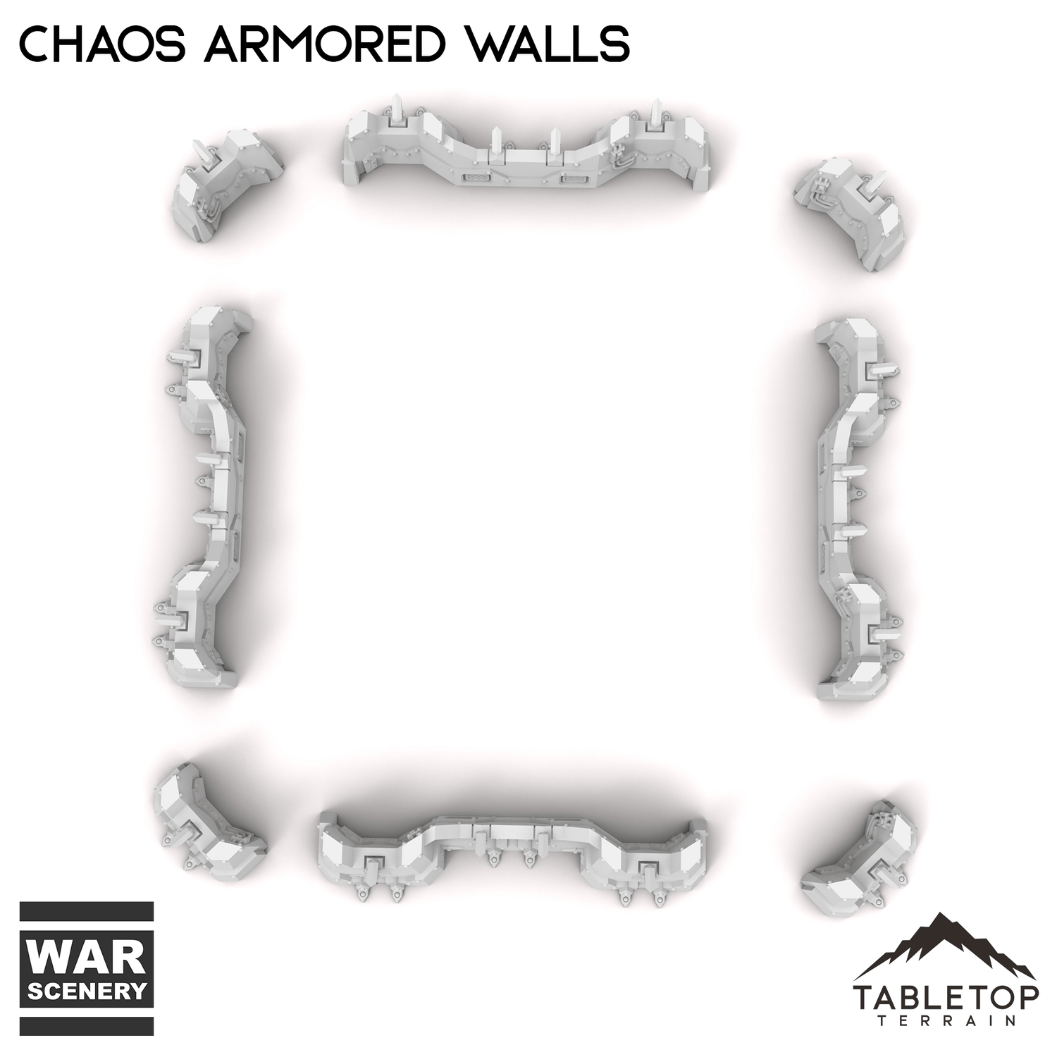 This simple set of walls is a perfect addition to any battlefield. The set has 4 small walls, and 4 long walls, made to be set into any arrangement needed. This set is from the Corrupted Sanctum collection, and matches other sets from that collection. It is designed for sci-fi wargames, but can be used with any system.