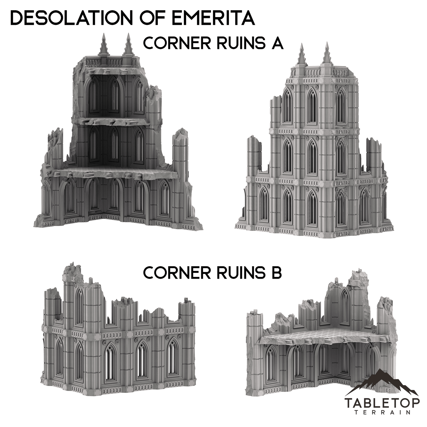 Venture into the Corner Ruins from the "Desolation of Emerita," where the remnants of a once-magnificent building stand as a testament to decay. Perfect for tactical cover or haunting encounters, these ruins feature broken walls and scattered debris, adding a layer of dramatic history and tactical complexity to your gaming landscape.