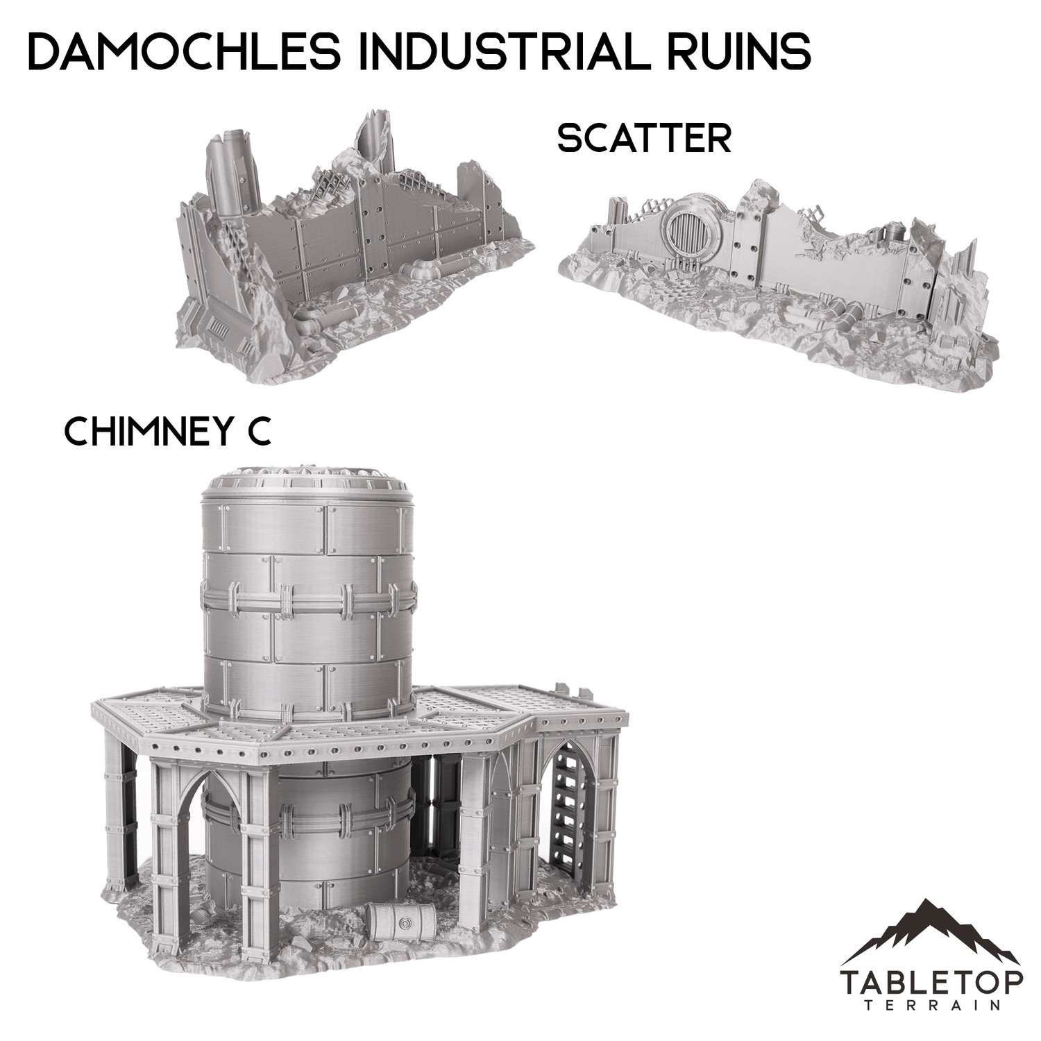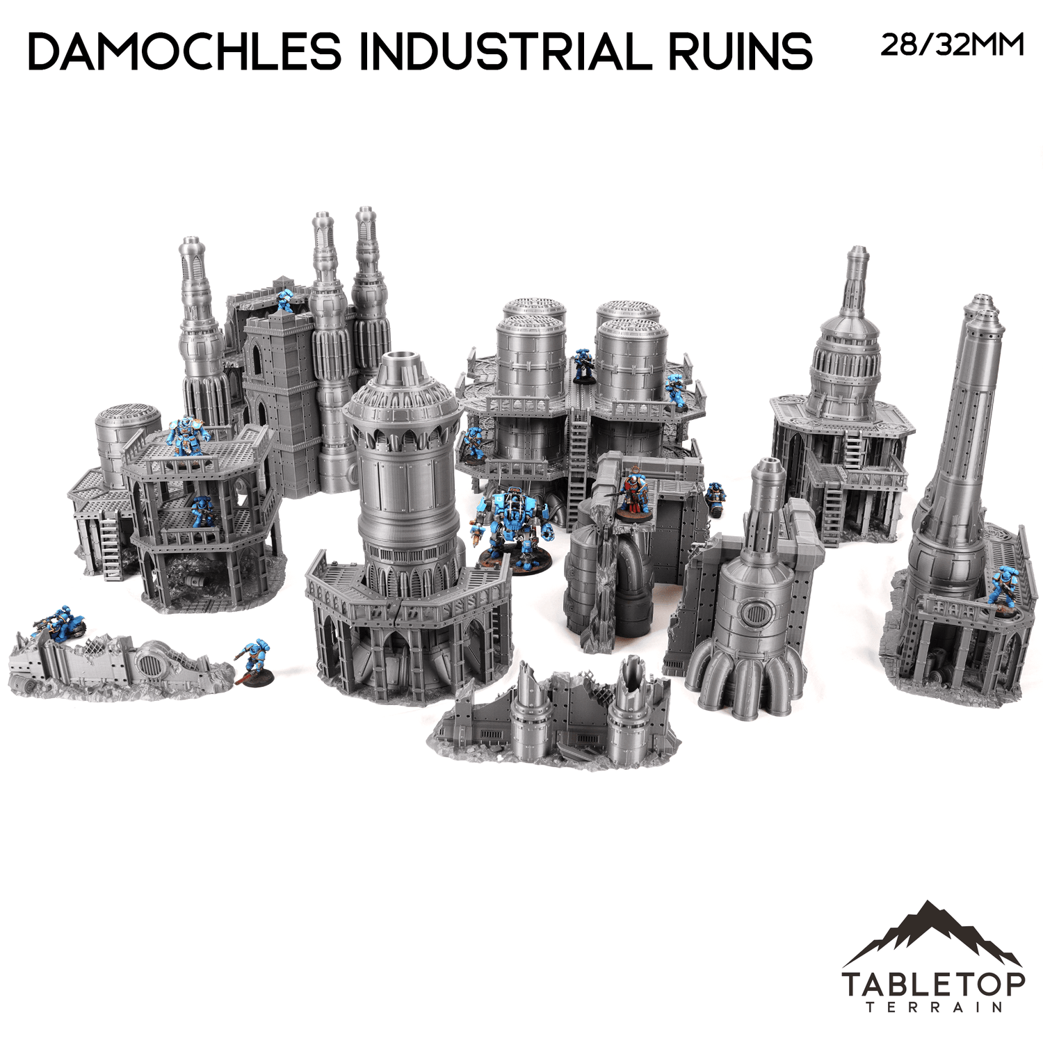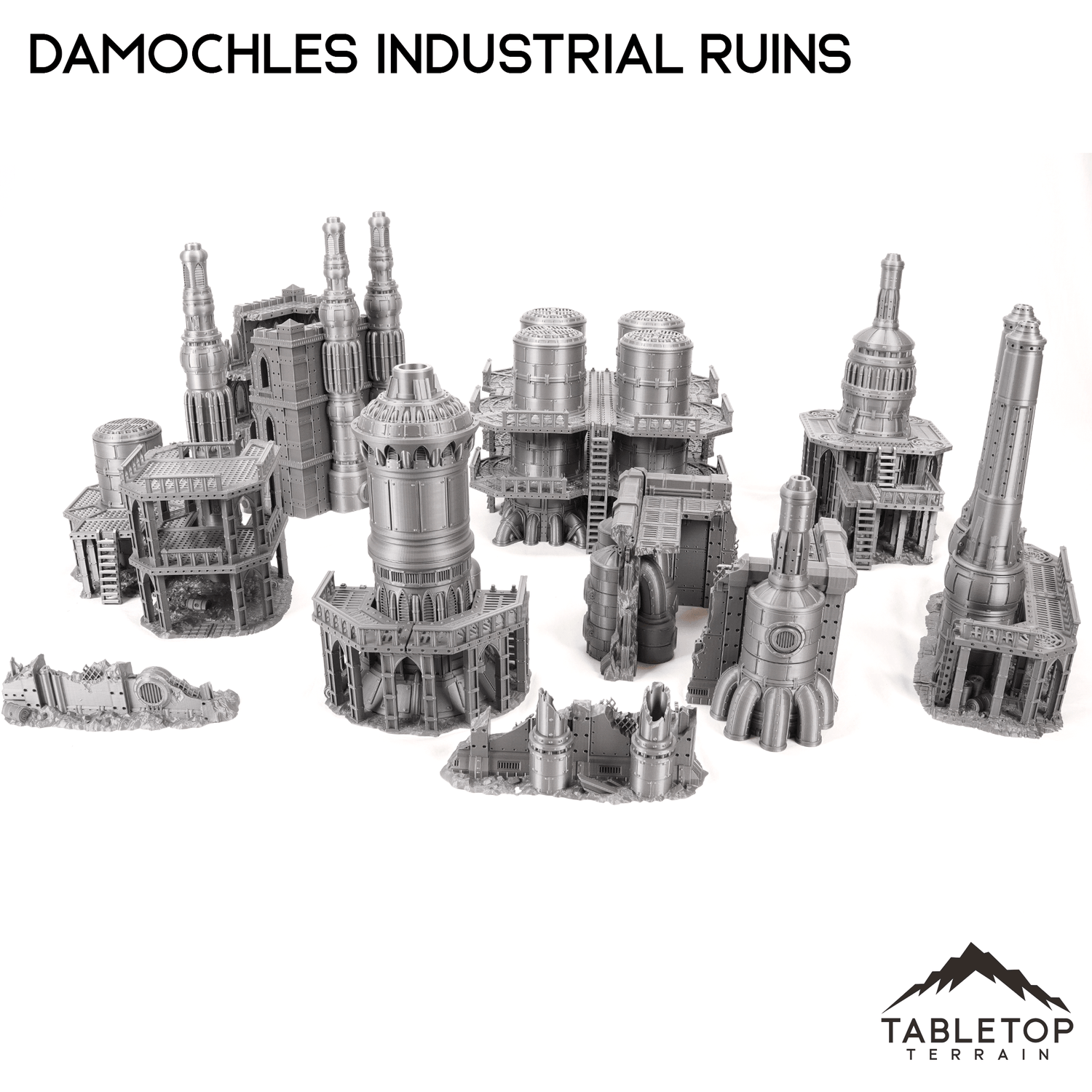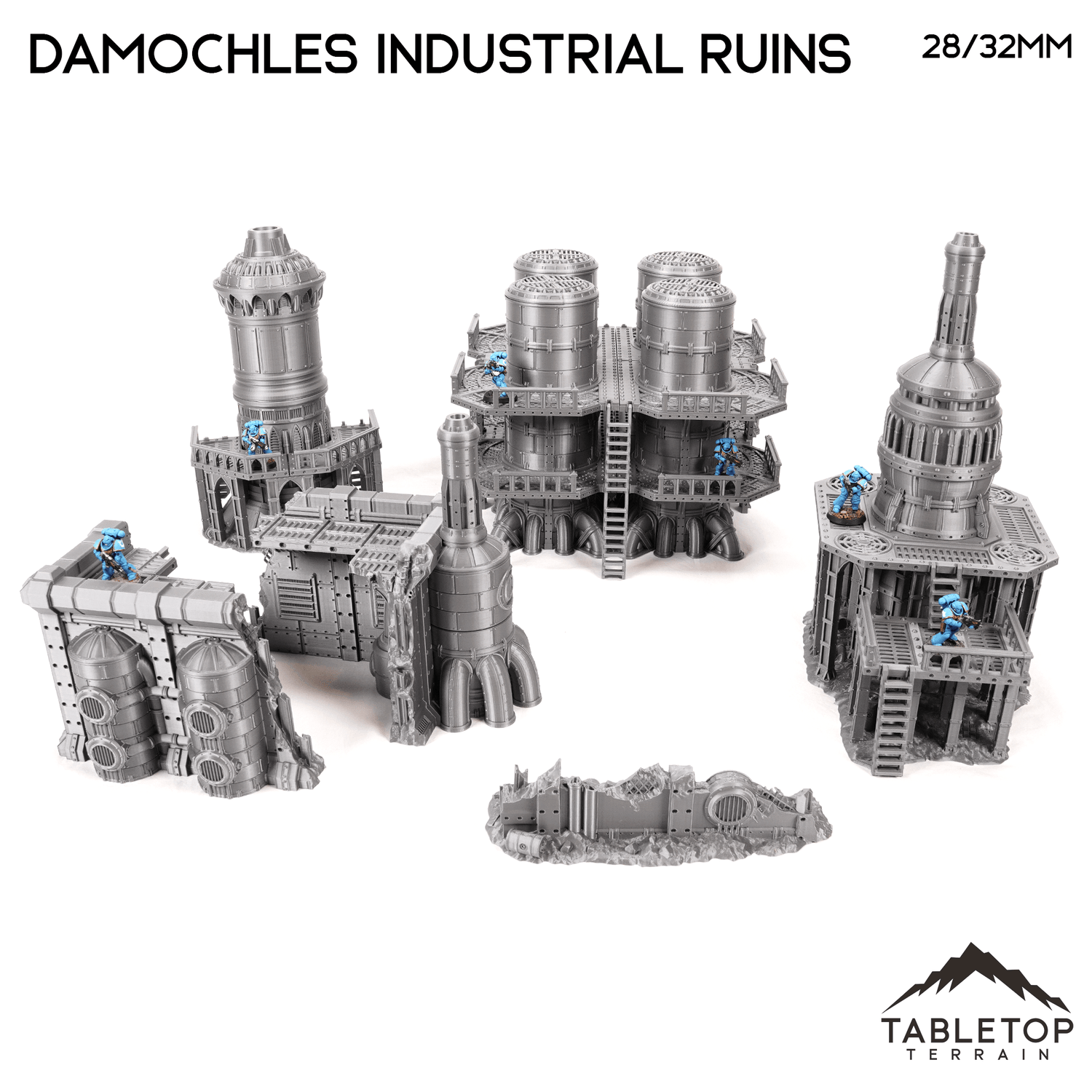 This thematic futuristic Industrial Ruin / Sci-Fi terrain set represents an industrial planet in ruin from an alien attack. The full set fills up a 6x4 table with a lot of dynamic terrain elements including large line of sight blocking on the taller structures. Each item is available individually but if you purchase the full set it includes a built in discount.