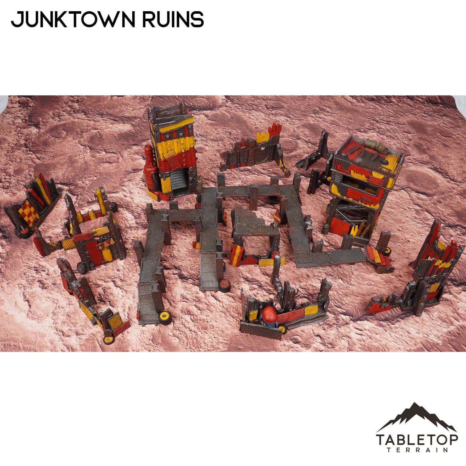 Welcome to Junktown - this former Imperial outpost has seen better days and has since been overcome and pillaged by space faring greenskins, who have fortified it in their own special way! Plenty of scope to hide your small squads amongst the various debris and protruding bolted-on hasty fortifications.