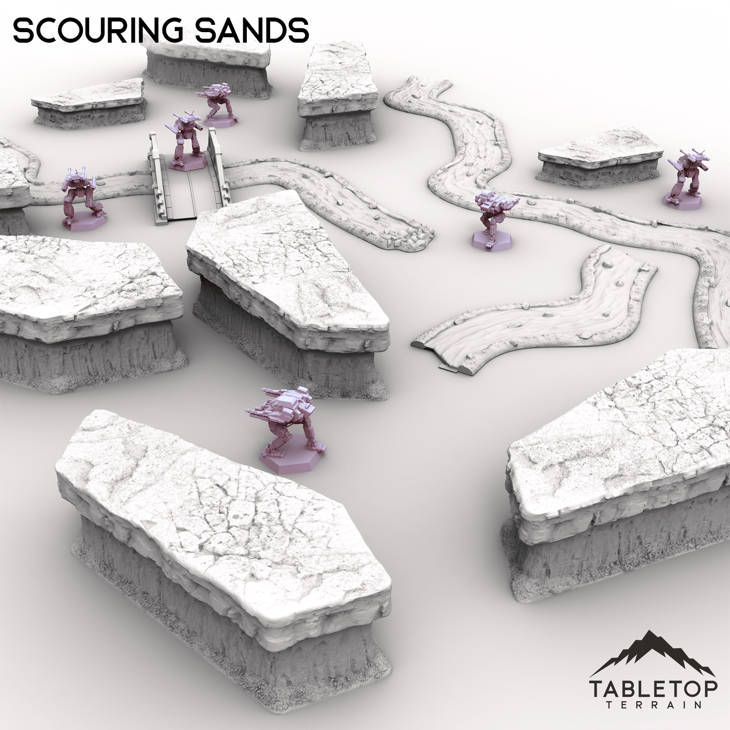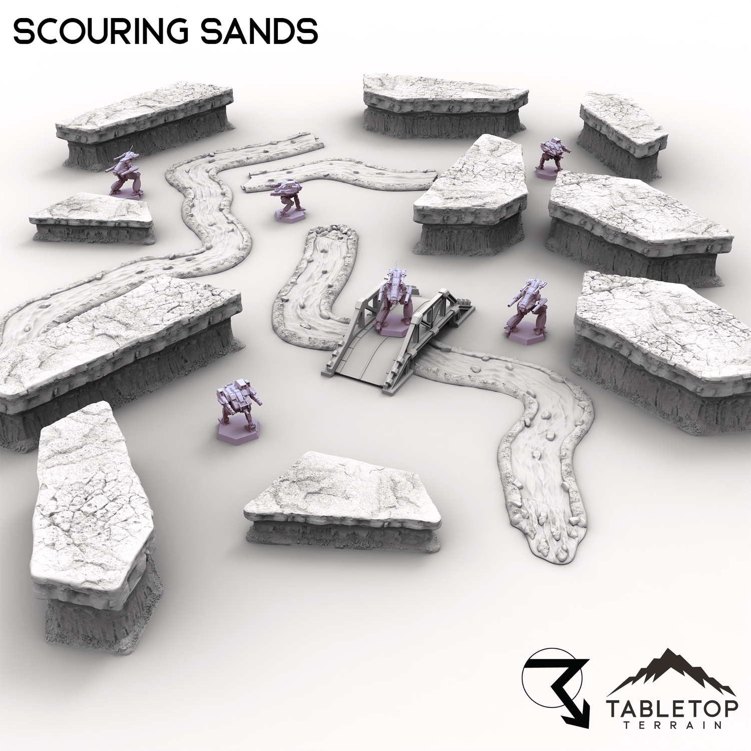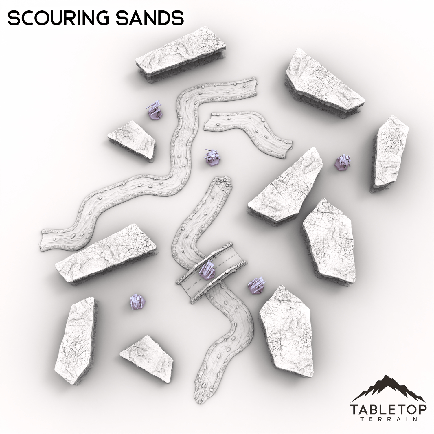This set is a full replacement of the Scouring Sands pieces in the official box, aside from the canyons that are difficult to recreate in 3d.