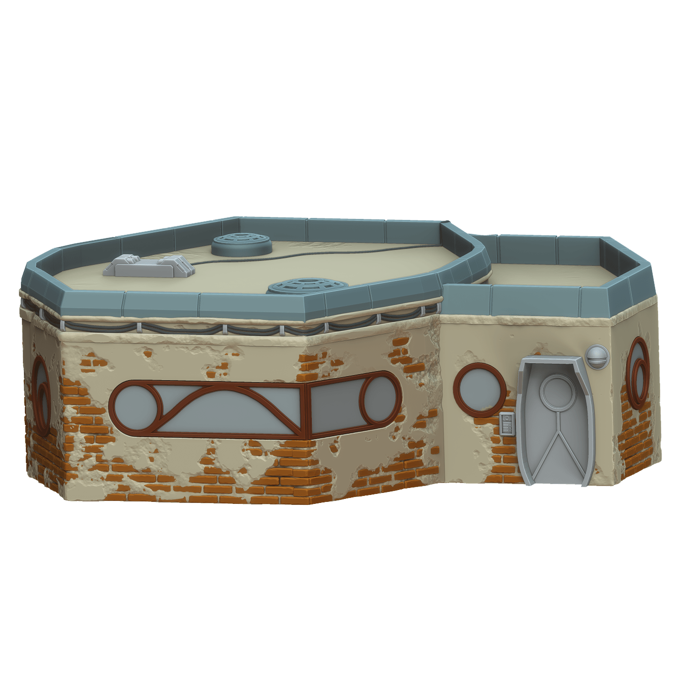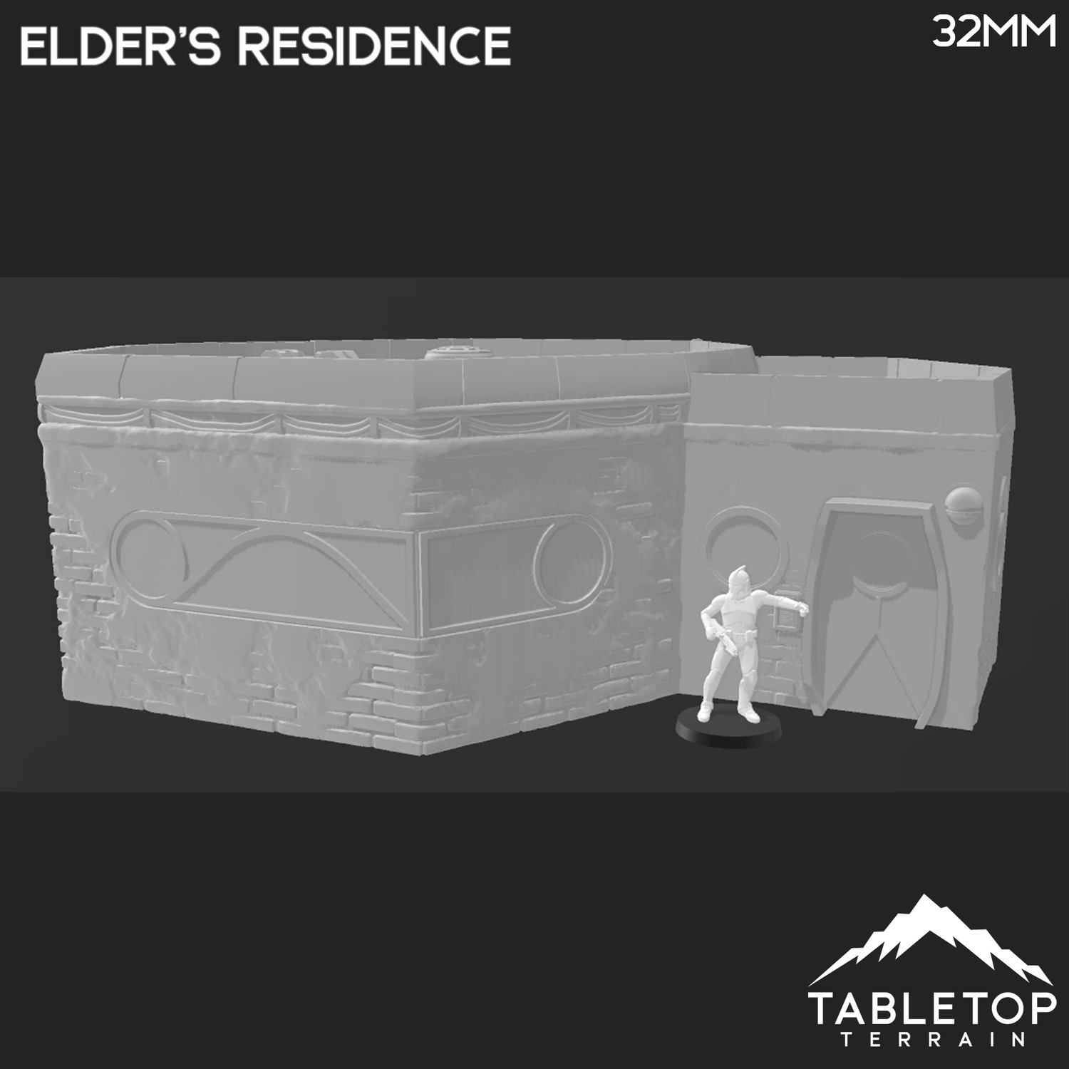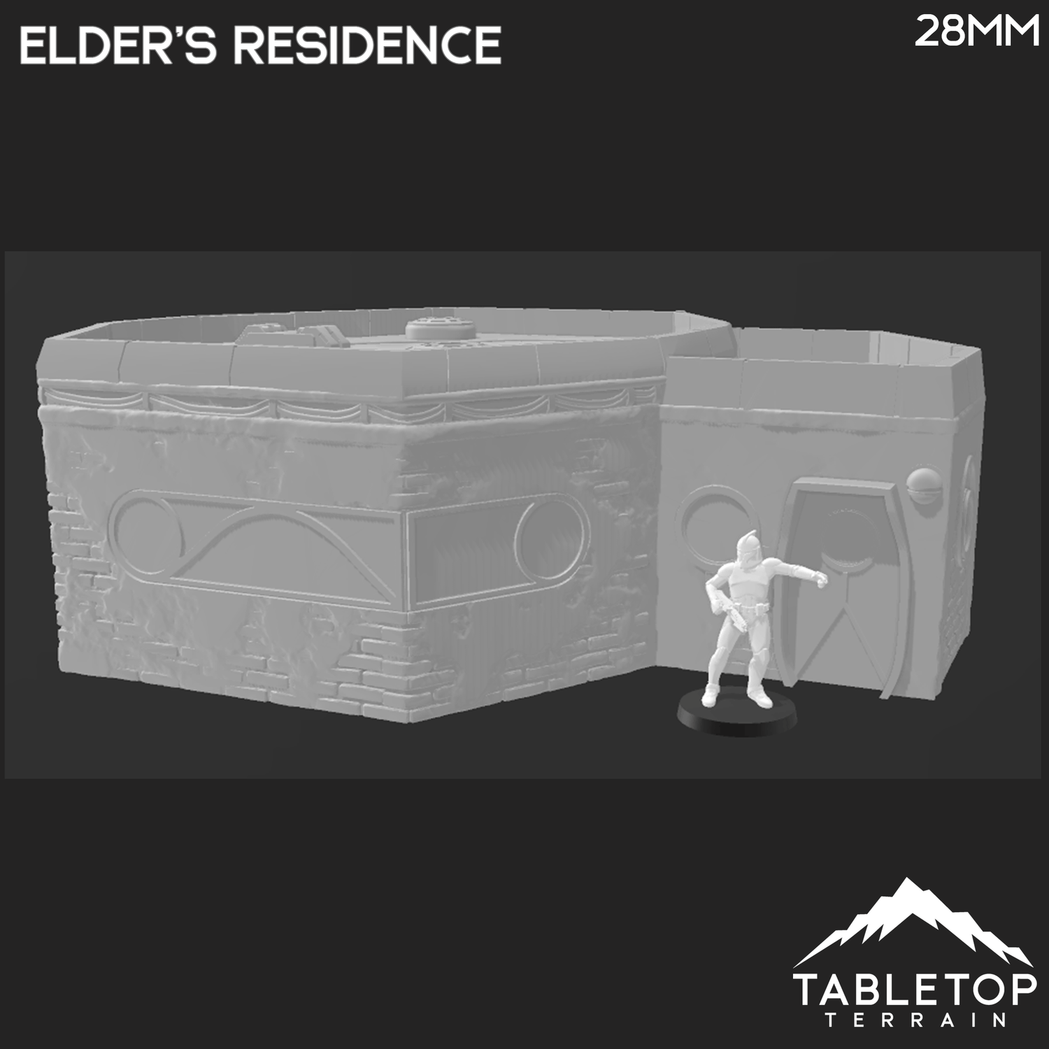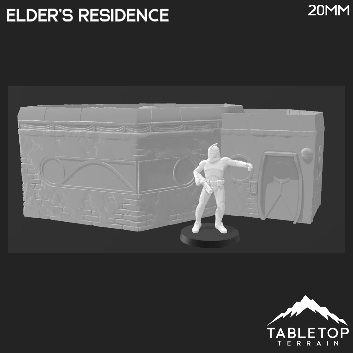 The Elder's Residence is a large house with a two tiered roof. Inspired from a popular TV show from a galaxy far far away, Ord Ferrum is a full city you can now bring your miniatures to battle in. The building is printed in 32mm, 28mm, 20mm, or 15mm scale with other scales available by request. The 28mm scale is designed for Star Wars Legion. The 32mm scale can also be used but it may run a little large - see the scaled photos for comparison.